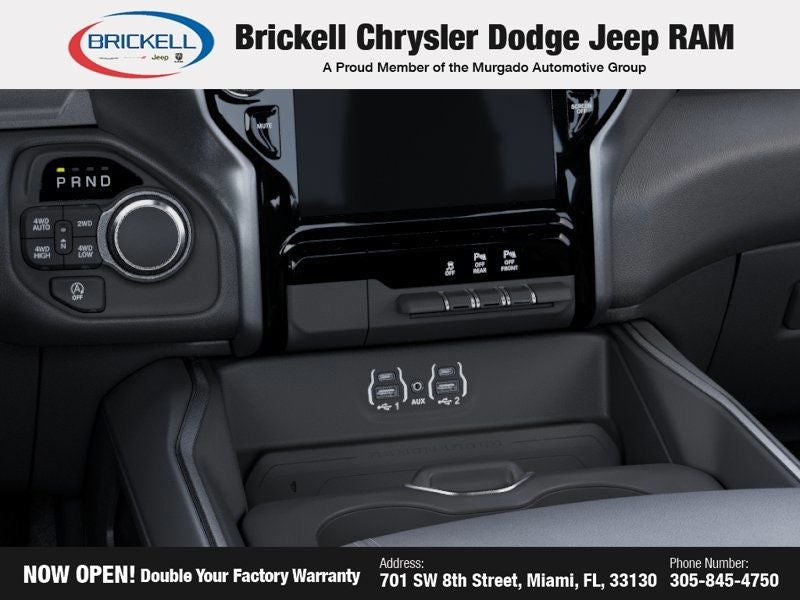 Price includes: $1000 - 2026 Southeast BC Retail Bonus Cash. Exp. 03/02/2026 $3500 - 2026 National Retail Consumer Cash . Exp. 03/02/2026 $500 - 2026 National 2026 Military Bonus Cash . Exp. 01/04/2027 Discover Your Next Vehicle at Brickell Chrysler Dodge Jeep Ram Welcome to Brickell CDJR, where we go beyond selling cars. We double the factory powertrain warranty, giving you added peace of mind. Our dealership offers one of the largest new car inventories in the region, ensuring you find the right vehicle Prices displayed do not included our Perma-plate. Our state-of-the-art service department is the largest in the country and is open seven days a week from 7 AM to 9 PM. Visit us at 701 SW 8th St, Miami, FL 33130, or call 305-777-2800 to learn more and schedule a test drive. The displayed price includes an incentive for financing with Brickell CDJR Finance Company. Outside financing and bank drafts are not accepted. All pre-owned vehicle exports are subject to an export fee. Prices apply only to customers who live, work, or worship in Broward, Miami-Dade, Palm Beach, Monroe, Collier, Hendry, Lee, Glades, Martin, St. Lucie, Okeechobee, Manatee, Hillsborough, Osceola, or Orange County. Customers outside these counties will pay an additional $ Taxes, title, registration, and dealer fees apply. Factory MSRP: $63,770 Granite Crystal Metallic Clearcoat 2026 Ram 1500 Big Horn/Lone Star 4WD 8-Speed Automatic HEMI 5.7L V8 Multi Displacement VVT eTorque