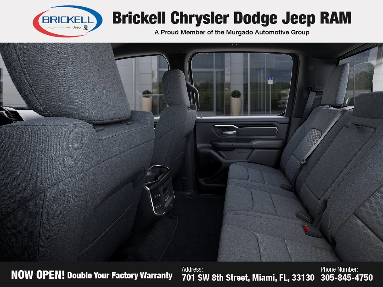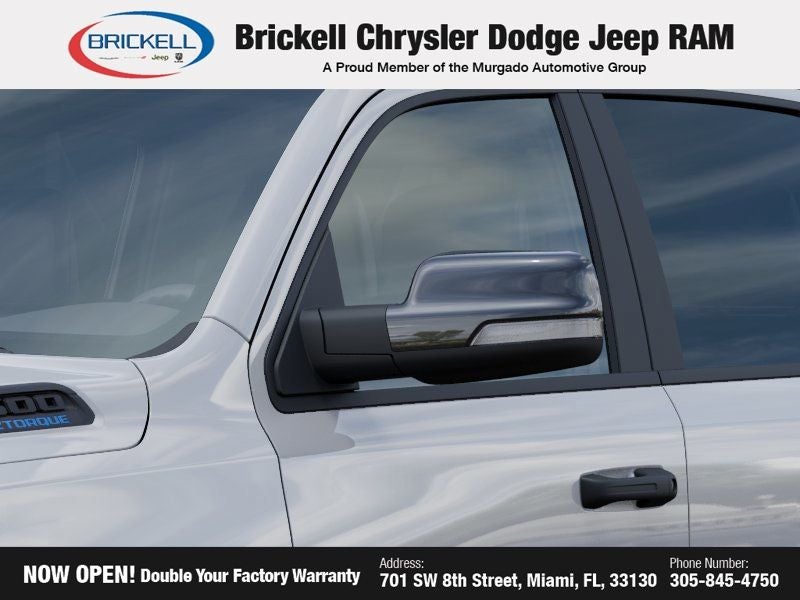 Price includes: $1000 - 2026 Southeast BC Retail Bonus Cash. Exp. 04/30/2026 $3500 - 2026 National Retail Bonus Cash . Exp. 04/30/2026 $500 - 2026 National 2026 Military Bonus Cash . Exp. 01/04/2027 Discover Your Next Vehicle at Brickell Chrysler Dodge Jeep Ram Welcome to Brickell CDJR, where we go beyond selling cars. We double the factory powertrain warranty, giving you added peace of mind. Our dealership offers one of the largest new car inventories in the region, ensuring you find the right vehicle Prices displayed do not included our Perma-plate. Our state-of-the-art service department is the largest in the country and is open seven days a week from 7 AM to 9 PM. Visit us at 701 SW 8th St, Miami, FL 33130, or call 305-777-2800 to learn more and schedule a test drive. The displayed price includes an incentive for financing with Brickell CDJR Finance Company. Outside financing and bank drafts are not accepted. All pre-owned vehicle exports are subject to an export fee. Prices apply only to customers who live, work, or worship in Broward, Miami-Dade, Palm Beach, Monroe, Collier, Hendry, Lee, Glades, Martin, St. Lucie, Okeechobee, Manatee, Hillsborough, Osceola, or Orange County. Customers outside these counties will pay an additional $ Taxes, title, registration, and dealer fees apply. New Price! Factory MSRP: $67,035 Bright White Clearcoat 2026 Ram 1500 Big Horn/Lone Star 4WD 8-Speed Automatic HEMI 5.7L V8 Multi Displacement VVT eTorque