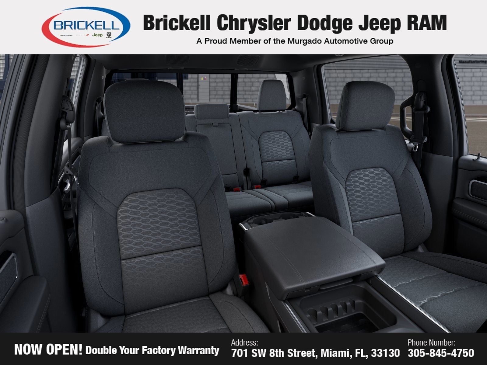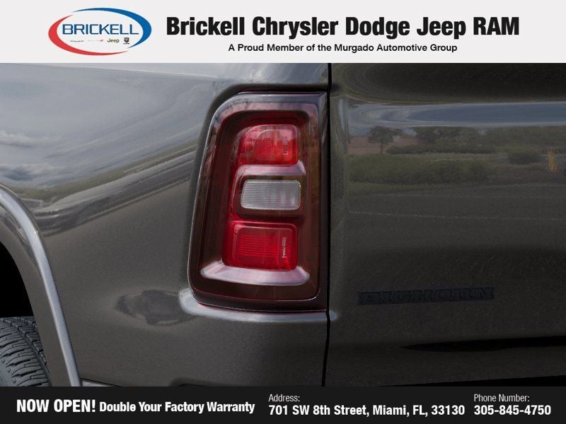 Price includes: $1000 - 2026 Southeast BC Retail Bonus Cash. Exp. 03/31/2026 $3500 - 2026 National Retail Bonus Cash . Exp. 03/31/2026 $500 - 2026 National 2026 Military Bonus Cash . Exp. 01/04/2027 Discover Your Next Vehicle at Brickell Chrysler Dodge Jeep Ram Welcome to Brickell CDJR, where we go beyond selling cars. We double the factory powertrain warranty, giving you added peace of mind. Our dealership offers one of the largest new car inventories in the region, ensuring you find the right vehicle Prices displayed do not included our Perma-plate. Our state-of-the-art service department is the largest in the country and is open seven days a week from 7 AM to 9 PM. Visit us at 701 SW 8th St, Miami, FL 33130, or call 305-777-2800 to learn more and schedule a test drive. The displayed price includes an incentive for financing with Brickell CDJR Finance Company. Outside financing and bank drafts are not accepted. All pre-owned vehicle exports are subject to an export fee. Prices apply only to customers who live, work, or worship in Broward, Miami-Dade, Palm Beach, Monroe, Collier, Hendry, Lee, Glades, Martin, St. Lucie, Okeechobee, Manatee, Hillsborough, Osceola, or Orange County. Customers outside these counties will pay an additional $ Taxes, title, registration, and dealer fees apply. Factory MSRP: $64,240 Granite Crystal Metallic Clearcoat 2026 Ram 1500 Big Horn/Lone Star 4WD 8-Speed Automatic HEMI 5.7L V8 Multi Displacement VVT eTorque