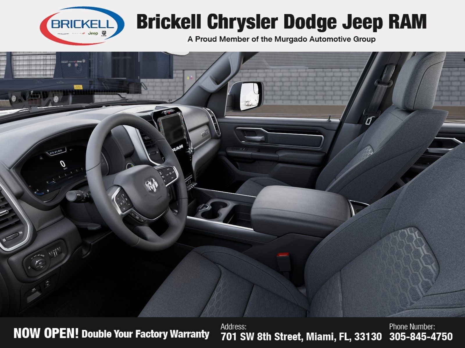 Price includes: $1000 - 2026 Southeast BC Retail Bonus Cash. Exp. 03/31/2026 $3500 - 2026 National Retail Bonus Cash . Exp. 03/31/2026 $500 - 2026 National 2026 Military Bonus Cash . Exp. 01/04/2027 Discover Your Next Vehicle at Brickell Chrysler Dodge Jeep Ram Welcome to Brickell CDJR, where we go beyond selling cars. We double the factory powertrain warranty, giving you added peace of mind. Our dealership offers one of the largest new car inventories in the region, ensuring you find the right vehicle Prices displayed do not included our Perma-plate. Our state-of-the-art service department is the largest in the country and is open seven days a week from 7 AM to 9 PM. Visit us at 701 SW 8th St, Miami, FL 33130, or call 305-777-2800 to learn more and schedule a test drive. The displayed price includes an incentive for financing with Brickell CDJR Finance Company. Outside financing and bank drafts are not accepted. All pre-owned vehicle exports are subject to an export fee. Prices apply only to customers who live, work, or worship in Broward, Miami-Dade, Palm Beach, Monroe, Collier, Hendry, Lee, Glades, Martin, St. Lucie, Okeechobee, Manatee, Hillsborough, Osceola, or Orange County. Customers outside these counties will pay an additional $ Taxes, title, registration, and dealer fees apply. Factory MSRP: $63,945 Bright White Clearcoat 2026 Ram 1500 Big Horn/Lone Star 4WD 8-Speed Automatic HEMI 5.7L V8 Multi Displacement VVT eTorque