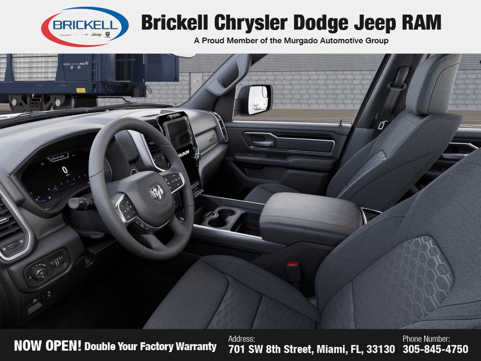 Price includes: $1000 - 2026 Southeast BC Retail Bonus Cash. Exp. 04/30/2026 $3500 - 2026 National Retail Bonus Cash . Exp. 04/30/2026 Discover Your Next Vehicle at Brickell Chrysler Dodge Jeep Ram Welcome to Brickell CDJR, where we go beyond selling cars. We double the factory powertrain warranty, giving you added peace of mind. Our dealership offers one of the largest new car inventories in the region, ensuring you find the right vehicle Prices displayed do not included our Perma-plate. Our state-of-the-art service department is the largest in the country and is open seven days a week from 7 AM to 9 PM. Visit us at 701 SW 8th St, Miami, FL 33130, or call 305-777-2800 to learn more and schedule a test drive. The displayed price includes an incentive for financing with Brickell CDJR Finance Company. Outside financing and bank drafts are not accepted. All pre-owned vehicle exports are subject to an export fee. Prices apply only to customers who live, work, or worship in Broward, Miami-Dade, Palm Beach, Monroe, Collier, Hendry, Lee, Glades, Martin, St. Lucie, Okeechobee, Manatee, Hillsborough, Osceola, or Orange County. Customers outside these counties will pay an additional $ Taxes, title, registration, and dealer fees apply. Factory MSRP: $59,420 Diamond Black Crystal Pearlcoat 2026 Ram 1500 Big Horn/Lone Star RWD 8-Speed Automatic 3.0L I6
