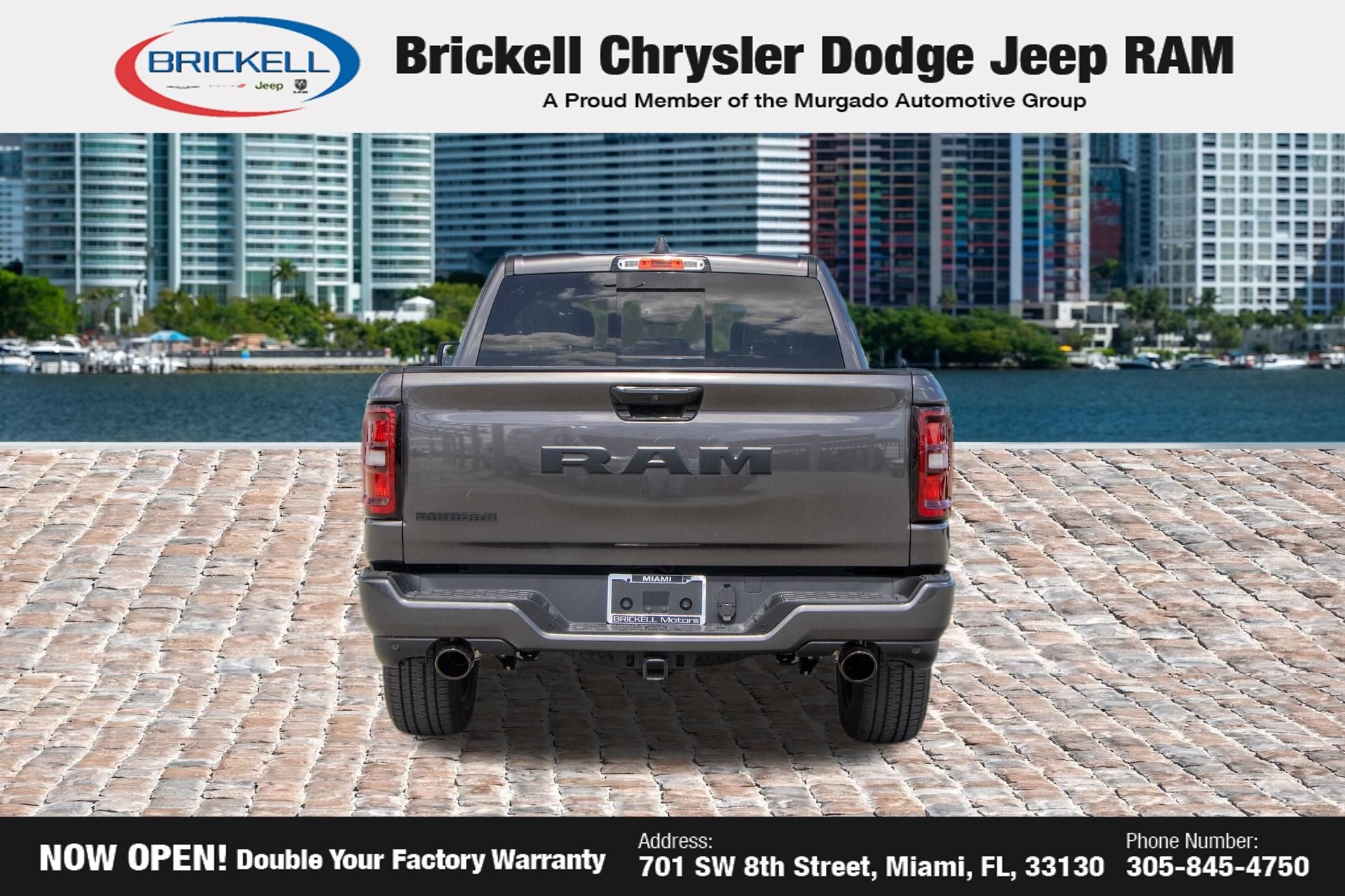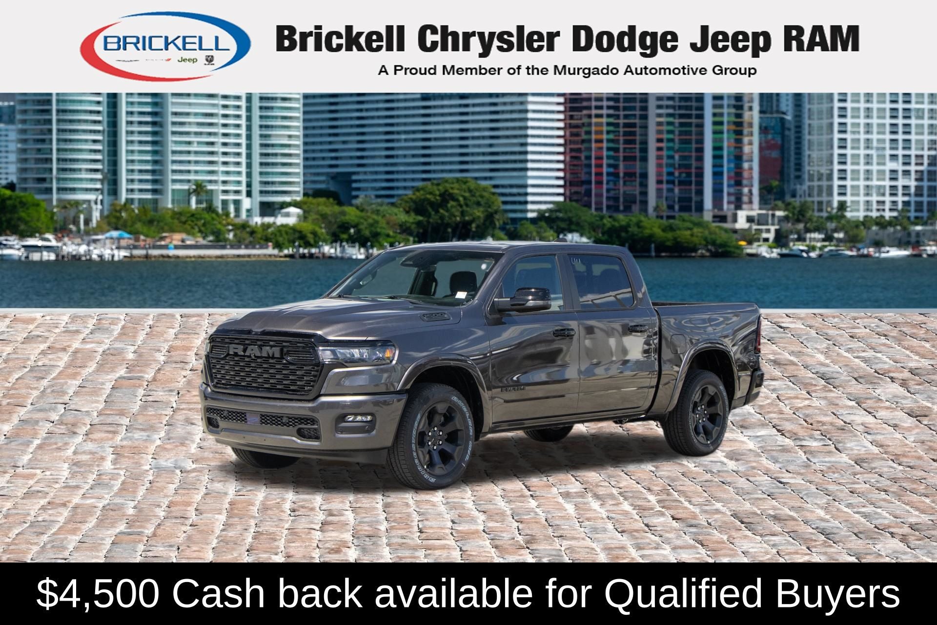 Price includes: $1000 - 2026 Southeast BC Retail Bonus Cash. Exp. 04/30/2026 $3500 - 2026 National Retail Bonus Cash . Exp. 04/30/2026 Discover Your Next Vehicle at Brickell Chrysler Dodge Jeep Ram Welcome to Brickell CDJR, where we go beyond selling cars. We double the factory powertrain warranty, giving you added peace of mind. Our dealership offers one of the largest new car inventories in the region, ensuring you find the right vehicle Prices displayed do not included our Perma-plate. Our state-of-the-art service department is the largest in the country and is open seven days a week from 7 AM to 9 PM. Visit us at 701 SW 8th St, Miami, FL 33130, or call 305-777-2800 to learn more and schedule a test drive. The displayed price includes an incentive for financing with Brickell CDJR Finance Company. Outside financing and bank drafts are not accepted. All pre-owned vehicle exports are subject to an export fee. Prices apply only to customers who live, work, or worship in Broward, Miami-Dade, Palm Beach, Monroe, Collier, Hendry, Lee, Glades, Martin, St. Lucie, Okeechobee, Manatee, Hillsborough, Osceola, or Orange County. Customers outside these counties will pay an additional $ Taxes, title, registration, and dealer fees apply. Factory MSRP: $58,870 Granite Crystal Metallic Clearcoat 2026 Ram 1500 Big Horn/Lone Star RWD 8-Speed Automatic 3.0L I6