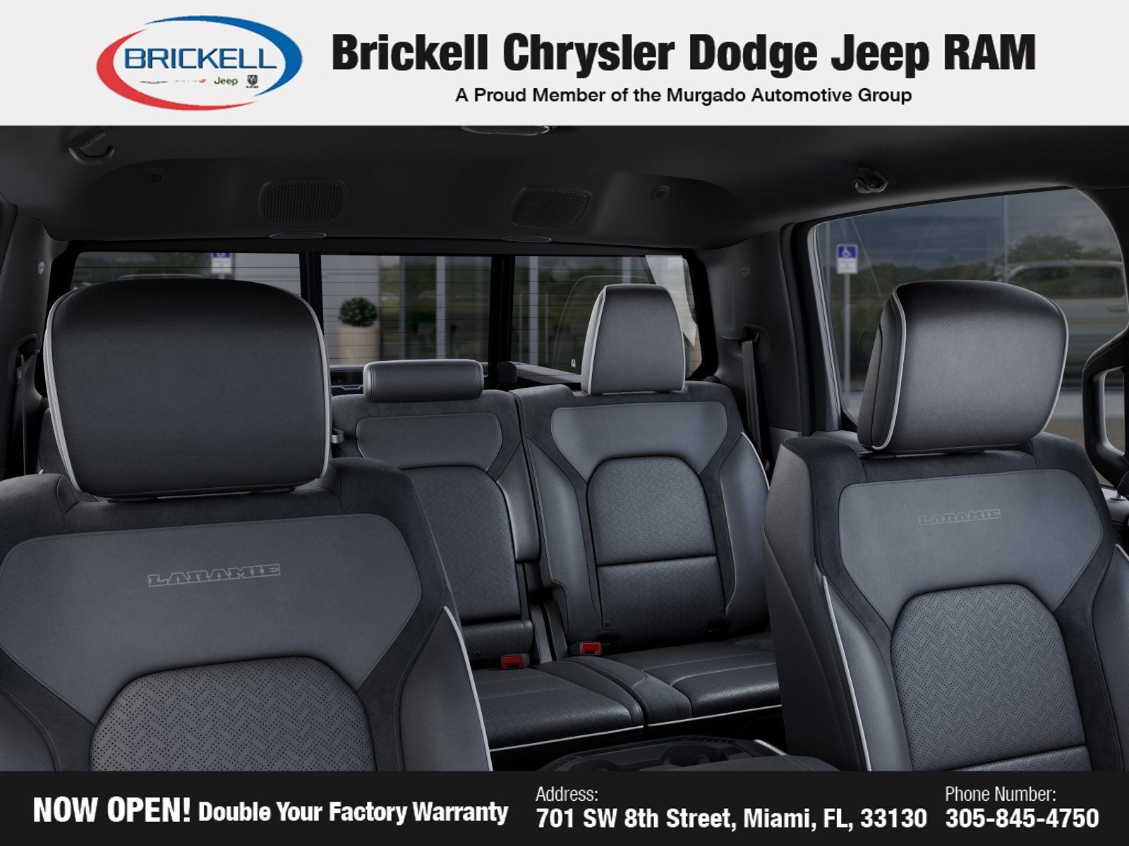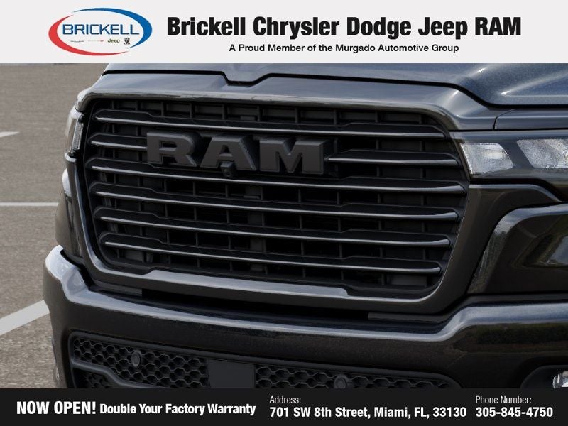 Price includes: $1500 - 2026 Southeast BC Retail Bonus Cash. Exp. 04/30/2026 $3500 - 2026 National Retail Bonus Cash . Exp. 04/30/2026 Discover Your Next Vehicle at Brickell Chrysler Dodge Jeep Ram Welcome to Brickell CDJR, where we go beyond selling cars. We double the factory powertrain warranty, giving you added peace of mind. Our dealership offers one of the largest new car inventories in the region, ensuring you find the right vehicle Prices displayed do not included our Perma-plate. Our state-of-the-art service department is the largest in the country and is open seven days a week from 7 AM to 9 PM. Visit us at 701 SW 8th St, Miami, FL 33130, or call 305-777-2800 to learn more and schedule a test drive. The displayed price includes an incentive for financing with Brickell CDJR Finance Company. Outside financing and bank drafts are not accepted. All pre-owned vehicle exports are subject to an export fee. Prices apply only to customers who live, work, or worship in Broward, Miami-Dade, Palm Beach, Monroe, Collier, Hendry, Lee, Glades, Martin, St. Lucie, Okeechobee, Manatee, Hillsborough, Osceola, or Orange County. Customers outside these counties will pay an additional $ Taxes, title, registration, and dealer fees apply. Factory MSRP: $73,445 Diamond Black Crystal Pearlcoat 2026 Ram 1500 Laramie 4WD 8-Speed Automatic HEMI 5.7L V8 Multi Displacement VVT eTorque