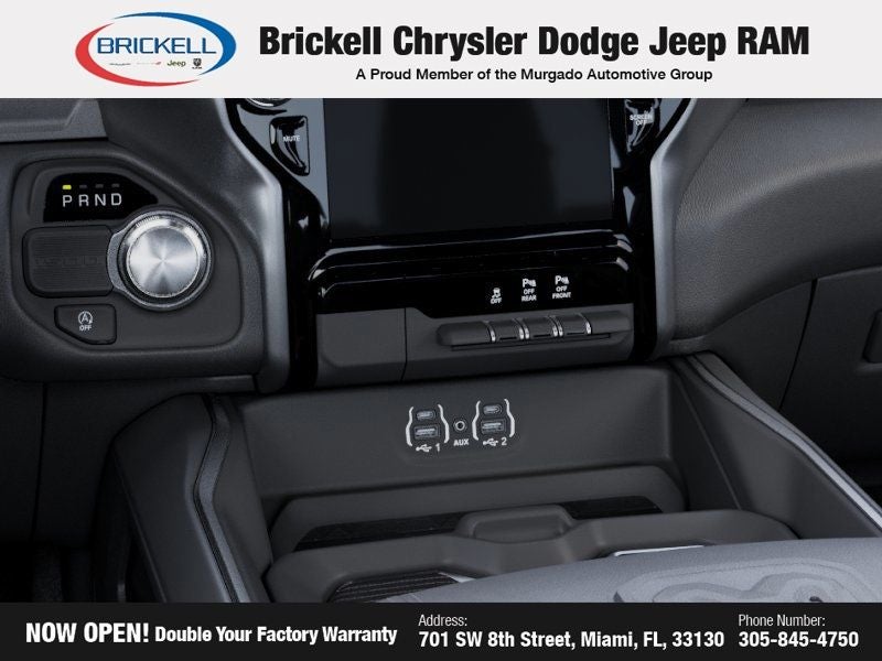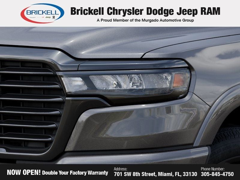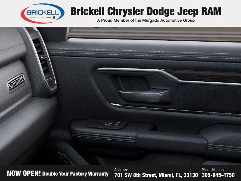Price includes: $3500 - 2026 National Retail Bonus Cash . Exp. 04/30/2026 $750 - 2026 Southeast BC Retail Bonus Cash. Exp. 04/30/2026 Discover Your Next Vehicle at Brickell Chrysler Dodge Jeep Ram Welcome to Brickell CDJR, where we go beyond selling cars. We double the factory powertrain warranty, giving you added peace of mind. Our dealership offers one of the largest new car inventories in the region, ensuring you find the right vehicle Prices displayed do not included our Perma-plate. Our state-of-the-art service department is the largest in the country and is open seven days a week from 7 AM to 9 PM. Visit us at 701 SW 8th St, Miami, FL 33130, or call 305-777-2800 to learn more and schedule a test drive. The displayed price includes an incentive for financing with Brickell CDJR Finance Company. Outside financing and bank drafts are not accepted. All pre-owned vehicle exports are subject to an export fee. Prices apply only to customers who live, work, or worship in Broward, Miami-Dade, Palm Beach, Monroe, Collier, Hendry, Lee, Glades, Martin, St. Lucie, Okeechobee, Manatee, Hillsborough, Osceola, or Orange County. Customers outside these counties will pay an additional $ Taxes, title, registration, and dealer fees apply. Factory MSRP: $69,990 Granite Crystal Metallic Clearcoat 2026 Ram 1500 Laramie RWD 8-Speed Automatic 3.0L I6