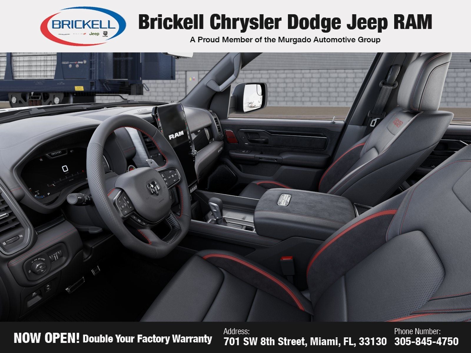 Price includes: $500 - 2026 National 2026 Military Bonus Cash . Exp. 03/05/2026 Discover Your Next Vehicle at Brickell Chrysler Dodge Jeep Ram Welcome to Brickell CDJR, where we go beyond selling cars. We double the factory powertrain warranty, giving you added peace of mind. Our dealership offers one of the largest new car inventories in the region, ensuring you find the right vehicle Prices displayed do not included our Perma-plate. Our state-of-the-art service department is the largest in the country and is open seven days a week from 7 AM to 9 PM. Visit us at 701 SW 8th St, Miami, FL 33130, or call 305-777-2800 to learn more and schedule a test drive. The displayed price includes an incentive for financing with Brickell CDJR Finance Company. Outside financing and bank drafts are not accepted. All pre-owned vehicle exports are subject to an export fee. Prices apply only to customers who live, work, or worship in Broward, Miami-Dade, Palm Beach, Monroe, Collier, Hendry, Lee, Glades, Martin, St. Lucie, Okeechobee, Manatee, Hillsborough, Osceola, or Orange County. Customers outside these counties will pay an additional $ Taxes, title, registration, and dealer fees apply. Factory MSRP: $95,190 Diamond Black Crystal Pearlcoat 2026 Ram 1500 RHO 4WD 8-Speed Automatic 3.0L I6