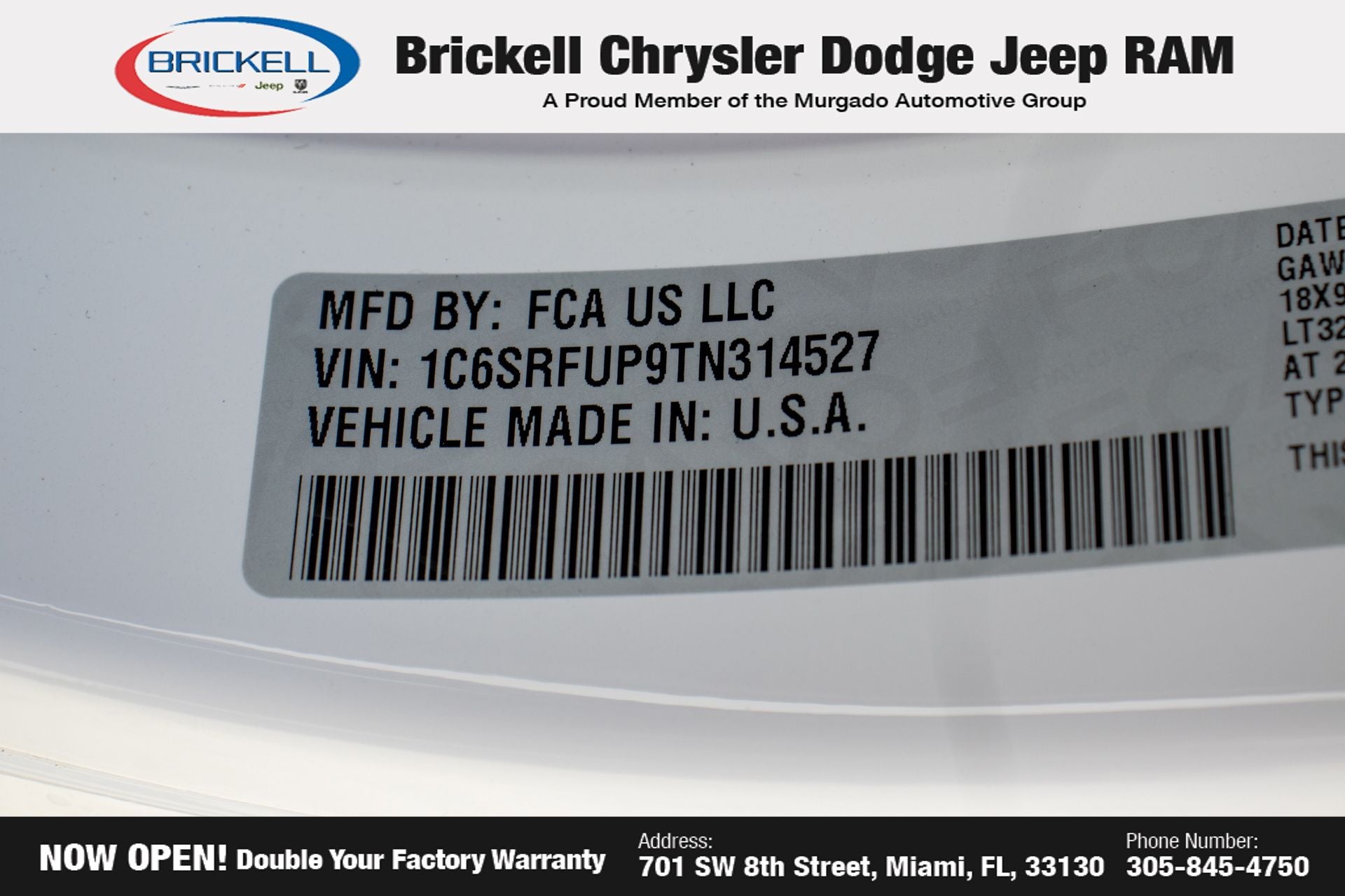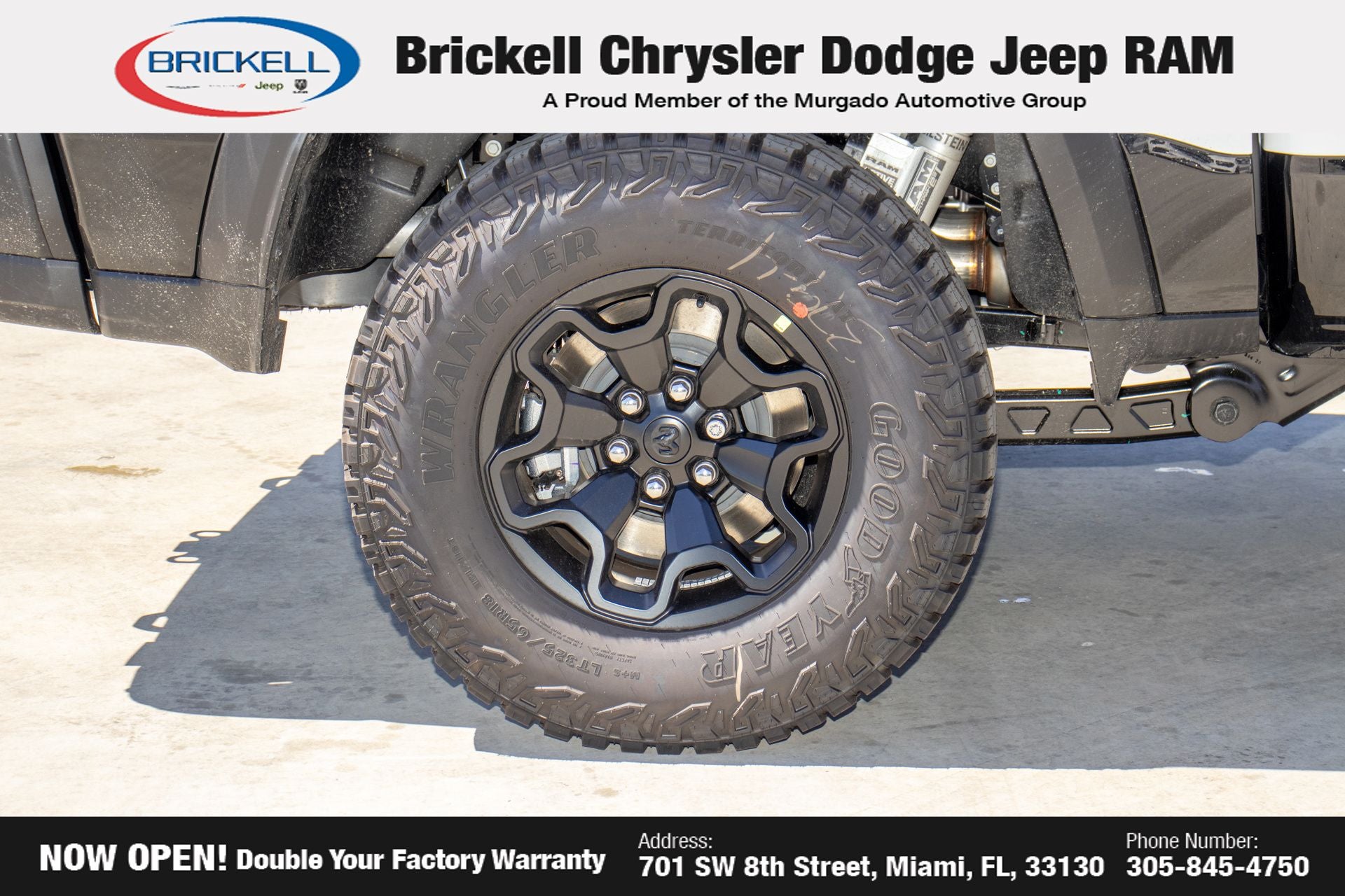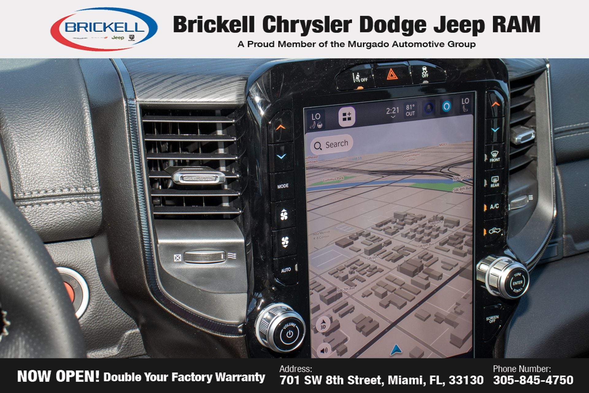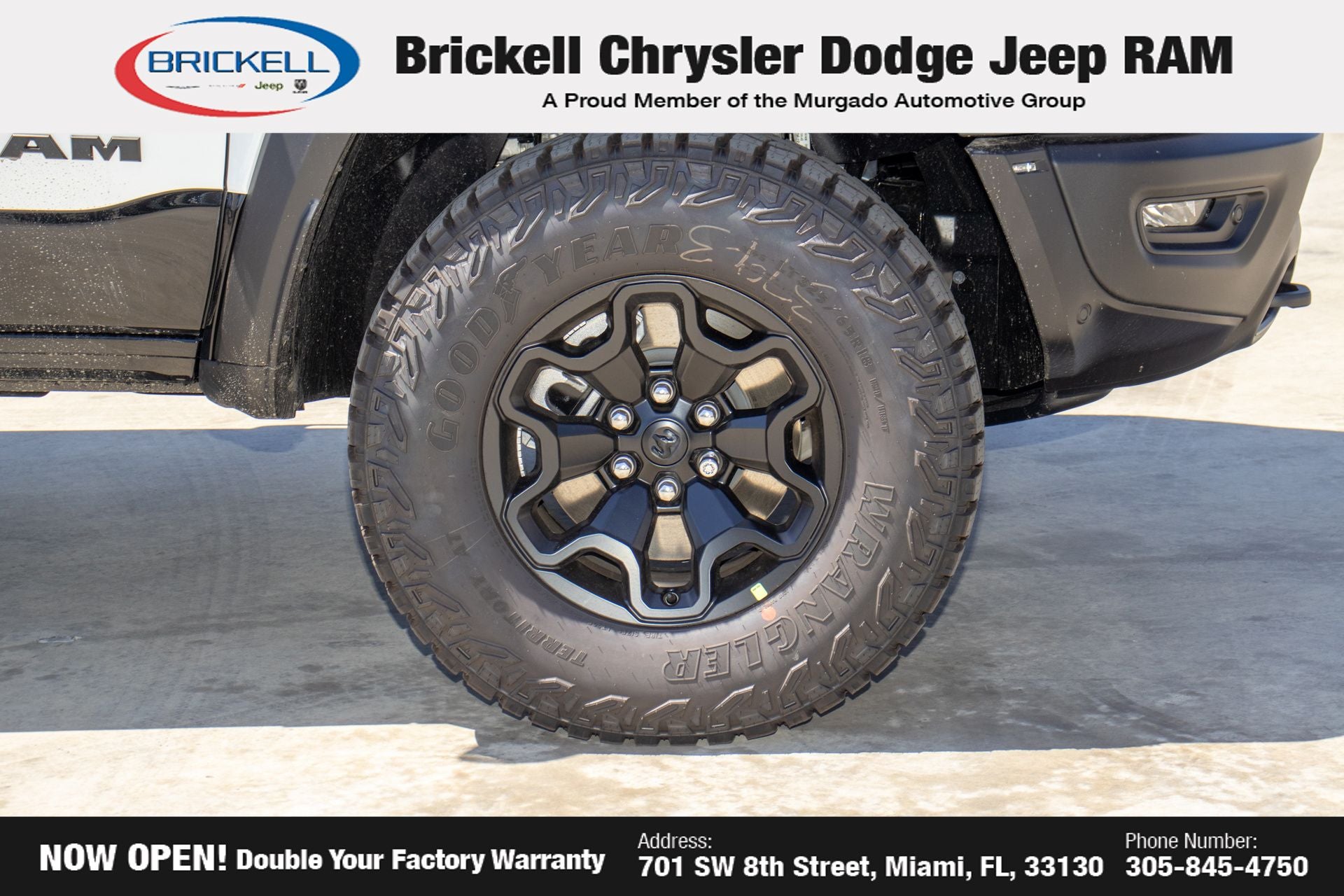 Discover Your Next Vehicle at Brickell Chrysler Dodge Jeep Ram Welcome to Brickell CDJR, where we go beyond selling cars. We double the factory powertrain warranty, giving you added peace of mind. Our dealership offers one of the largest new car inventories in the region, ensuring you find the right vehicle Prices displayed do not included our Perma-plate. Our state-of-the-art service department is the largest in the country and is open seven days a week from 7 AM to 9 PM. Visit us at 701 SW 8th St, Miami, FL 33130, or call 305-777-2800 to learn more and schedule a test drive. The displayed price includes an incentive for financing with Brickell CDJR Finance Company. Outside financing and bank drafts are not accepted. All pre-owned vehicle exports are subject to an export fee. Prices apply only to customers who live, work, or worship in Broward, Miami-Dade, Palm Beach, Monroe, Collier, Hendry, Lee, Glades, Martin, St. Lucie, Okeechobee, Manatee, Hillsborough, Osceola, or Orange County. Customers outside these counties will pay an additional $ Taxes, title, registration, and dealer fees apply. Factory MSRP: $76,390 Bright White Clearcoat 2026 Ram 1500 RHO 4WD 8-Speed Automatic 3.0L I6