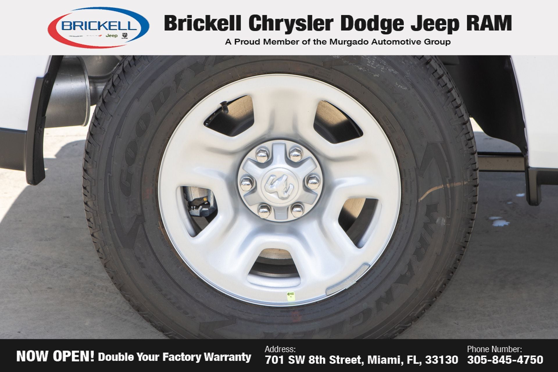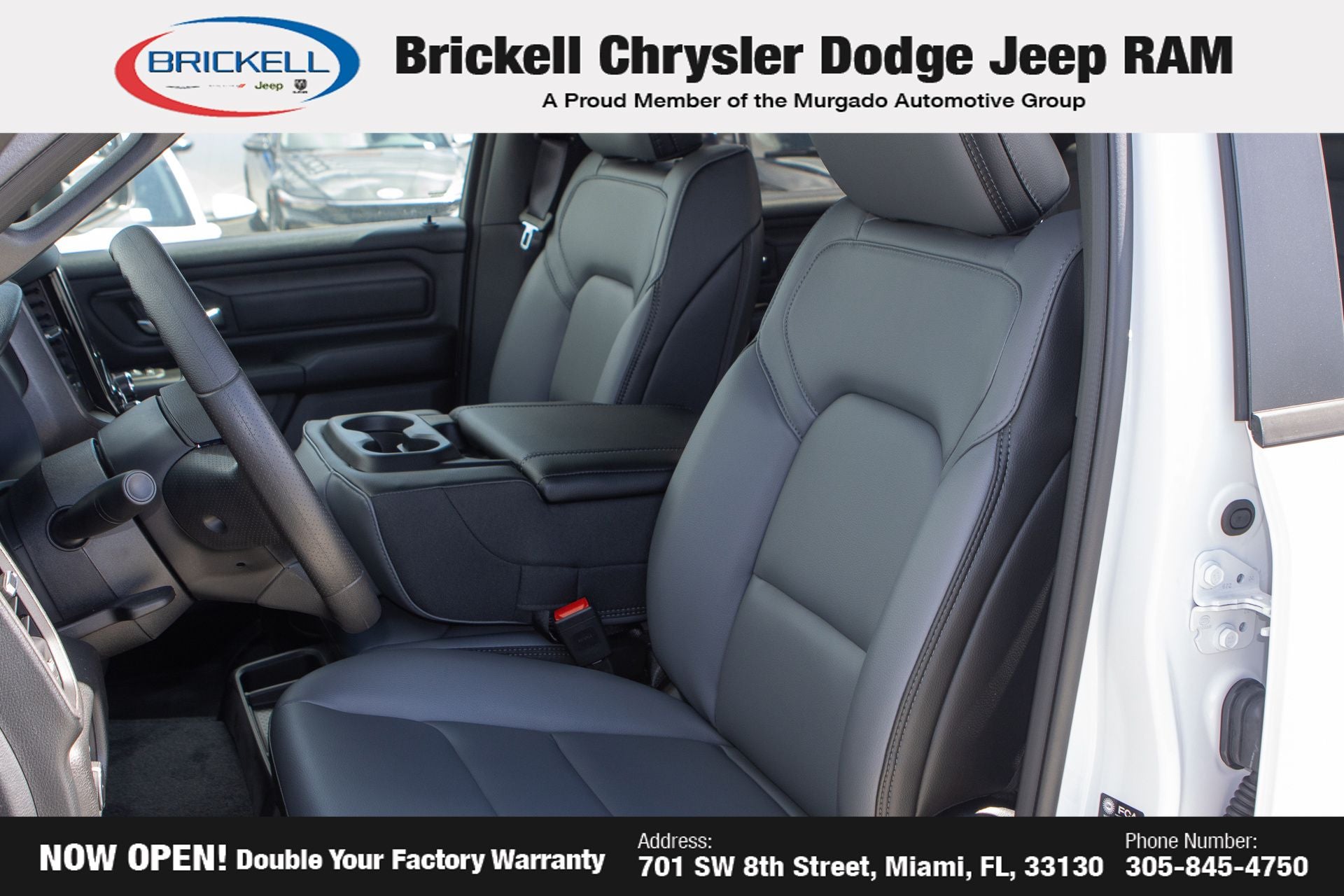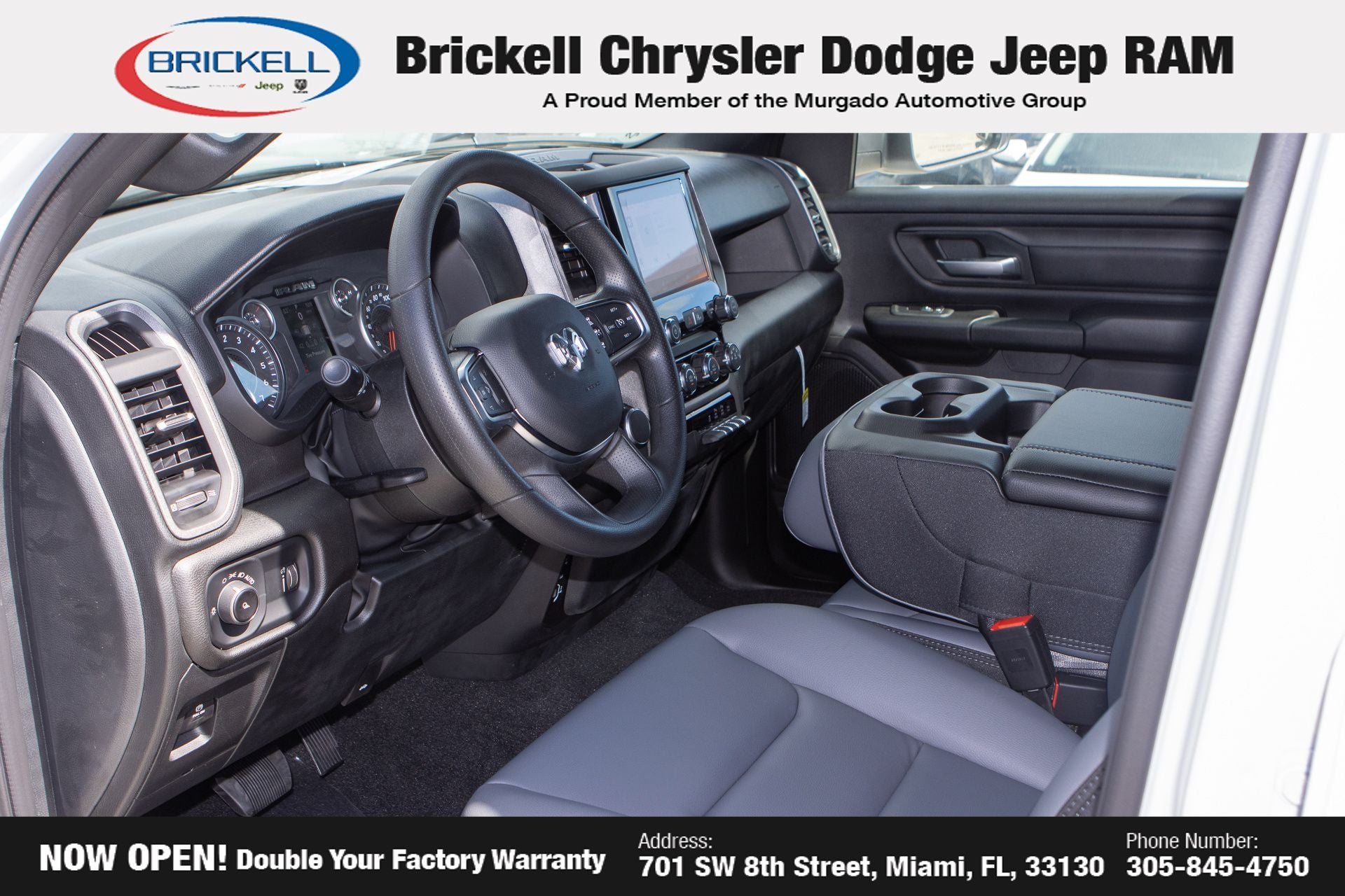 Price includes: $3500 - 2026 National Retail Bonus Cash . Exp. 03/31/2026 $500 - 2026 National 2026 Military Bonus Cash . Exp. 01/04/2027 Discover Your Next Vehicle at Brickell Chrysler Dodge Jeep Ram Welcome to Brickell CDJR, where we go beyond selling cars. We double the factory powertrain warranty, giving you added peace of mind. Our dealership offers one of the largest new car inventories in the region, ensuring you find the right vehicle Prices displayed do not included our Perma-plate. Our state-of-the-art service department is the largest in the country and is open seven days a week from 7 AM to 9 PM. Visit us at 701 SW 8th St, Miami, FL 33130, or call 305-777-2800 to learn more and schedule a test drive. The displayed price includes an incentive for financing with Brickell CDJR Finance Company. Outside financing and bank drafts are not accepted. All pre-owned vehicle exports are subject to an export fee. Prices apply only to customers who live, work, or worship in Broward, Miami-Dade, Palm Beach, Monroe, Collier, Hendry, Lee, Glades, Martin, St. Lucie, Okeechobee, Manatee, Hillsborough, Osceola, or Orange County. Customers outside these counties will pay an additional $ Taxes, title, registration, and dealer fees apply. Factory MSRP: $47,860 Bright White Clearcoat 2026 Ram 1500 Tradesman RWD 8-Speed Automatic 3.0L I6