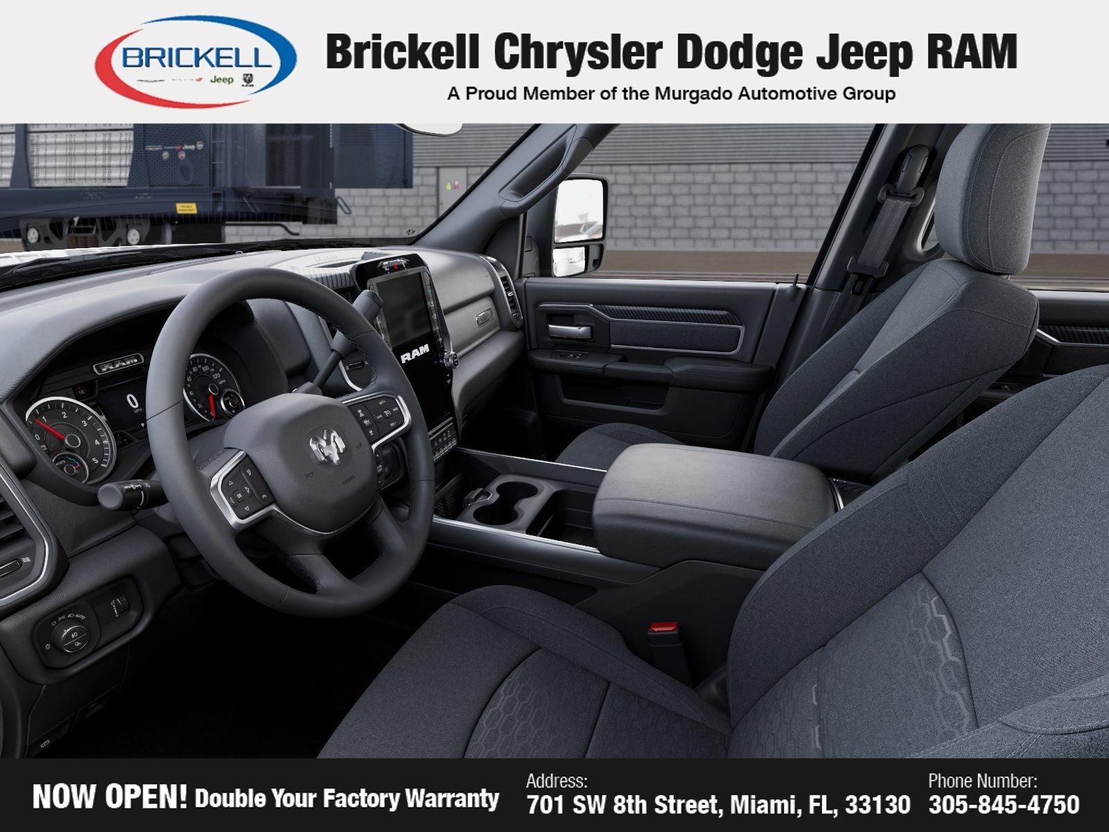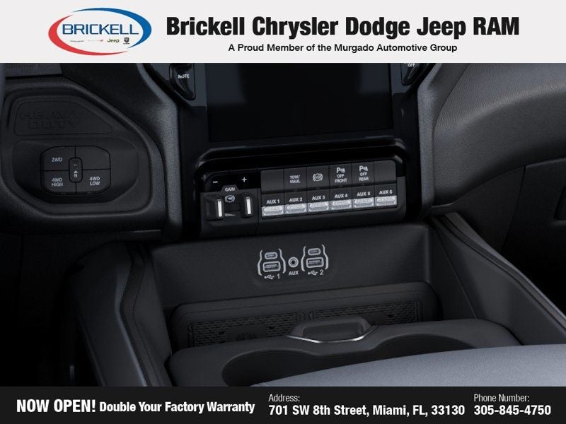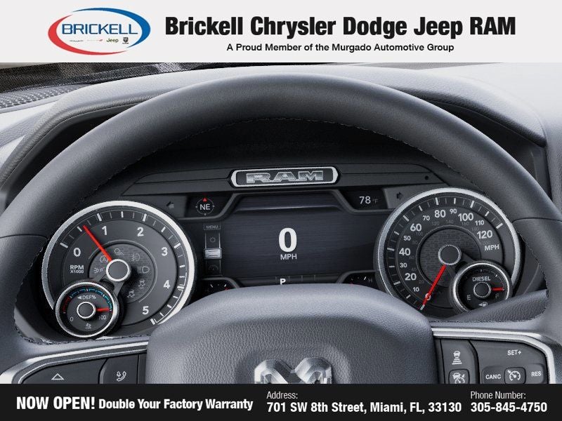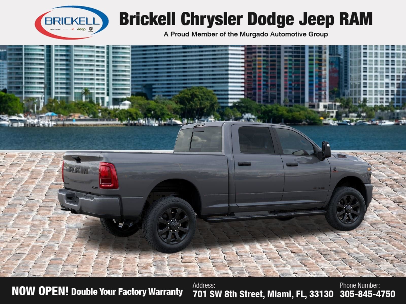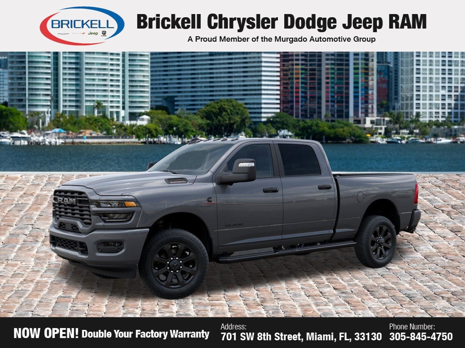 Price includes: $1000 - 2026 National Bonus Cash . Exp. 04/30/2026 $500 - 2026 National 2026 Military Bonus Cash . Exp. 01/04/2027 Discover Your Next Vehicle at Brickell Chrysler Dodge Jeep Ram Welcome to Brickell CDJR, where we go beyond selling cars. We double the factory powertrain warranty, giving you added peace of mind. Our dealership offers one of the largest new car inventories in the region, ensuring you find the right vehicle Prices displayed do not included our Perma-plate. Our state-of-the-art service department is the largest in the country and is open seven days a week from 7 AM to 9 PM. Visit us at 701 SW 8th St, Miami, FL 33130, or call 305-777-2800 to learn more and schedule a test drive. The displayed price includes an incentive for financing with Brickell CDJR Finance Company. Outside financing and bank drafts are not accepted. All pre-owned vehicle exports are subject to an export fee. Prices apply only to customers who live, work, or worship in Broward, Miami-Dade, Palm Beach, Monroe, Collier, Hendry, Lee, Glades, Martin, St. Lucie, Okeechobee, Manatee, Hillsborough, Osceola, or Orange County. Customers outside these counties will pay an additional $ Taxes, title, registration, and dealer fees apply. Factory MSRP: $82,335 Ceramic Gray Clearcoat 2026 Ram 2500 Big Horn 4WD 8-Speed Automatic 6.7L I6