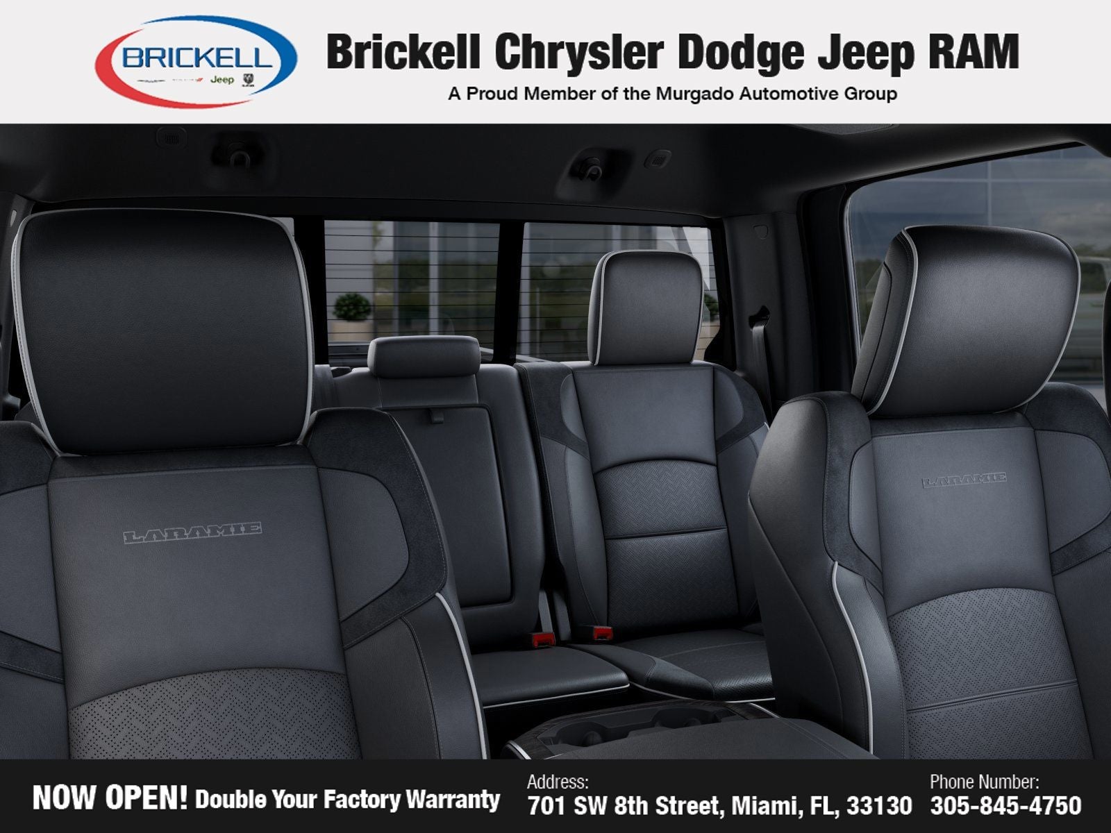 Price includes: $1000 - 2026 National Bonus Cash . Exp. 04/30/2026 Discover Your Next Vehicle at Brickell Chrysler Dodge Jeep Ram Welcome to Brickell CDJR, where we go beyond selling cars. We double the factory powertrain warranty, giving you added peace of mind. Our dealership offers one of the largest new car inventories in the region, ensuring you find the right vehicle Prices displayed do not included our Perma-plate. Our state-of-the-art service department is the largest in the country and is open seven days a week from 7 AM to 9 PM. Visit us at 701 SW 8th St, Miami, FL 33130, or call 305-777-2800 to learn more and schedule a test drive. The displayed price includes an incentive for financing with Brickell CDJR Finance Company. Outside financing and bank drafts are not accepted. All pre-owned vehicle exports are subject to an export fee. Prices apply only to customers who live, work, or worship in Broward, Miami-Dade, Palm Beach, Monroe, Collier, Hendry, Lee, Glades, Martin, St. Lucie, Okeechobee, Manatee, Hillsborough, Osceola, or Orange County. Customers outside these counties will pay an additional $ Taxes, title, registration, and dealer fees apply. Factory MSRP: $89,315 Bright White Clearcoat 2026 Ram 3500 Laramie 4WD 8-Speed Automatic 6.7L I6