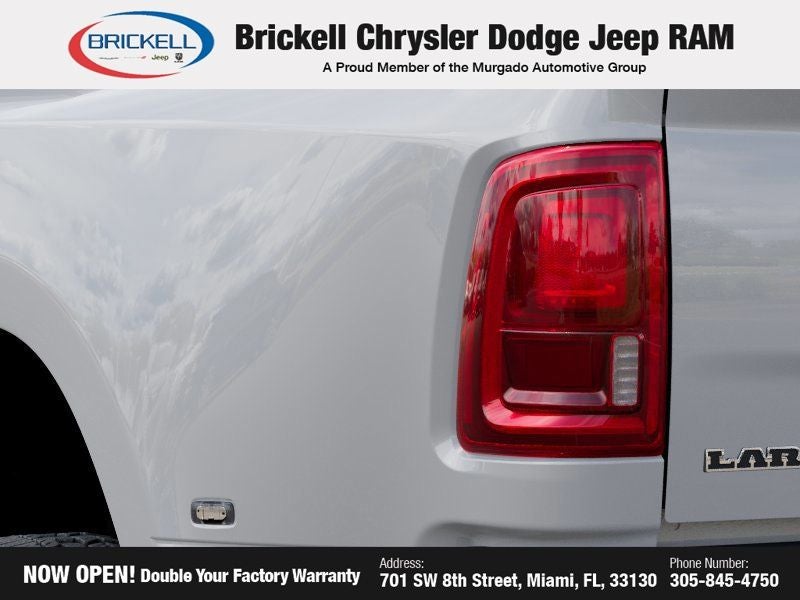 Price includes: $1000 - 2026 National Bonus Cash . Exp. 03/02/2026 Discover Your Next Vehicle at Brickell Chrysler Dodge Jeep Ram Welcome to Brickell CDJR, where we go beyond selling cars. We double the factory powertrain warranty, giving you added peace of mind. Our dealership offers one of the largest new car inventories in the region, ensuring you find the right vehicle Prices displayed do not included our Perma-plate. Our state-of-the-art service department is the largest in the country and is open seven days a week from 7 AM to 9 PM. Visit us at 701 SW 8th St, Miami, FL 33130, or call 305-777-2800 to learn more and schedule a test drive. The displayed price includes an incentive for financing with Brickell CDJR Finance Company. Outside financing and bank drafts are not accepted. All pre-owned vehicle exports are subject to an export fee. Prices apply only to customers who live, work, or worship in Broward, Miami-Dade, Palm Beach, Monroe, Collier, Hendry, Lee, Glades, Martin, St. Lucie, Okeechobee, Manatee, Hillsborough, Osceola, or Orange County. Customers outside these counties will pay an additional $ Taxes, title, registration, and dealer fees apply. Factory MSRP: $89,315 Bright White Clearcoat 2026 Ram 3500 Laramie 4WD 8-Speed Automatic 6.7L I6