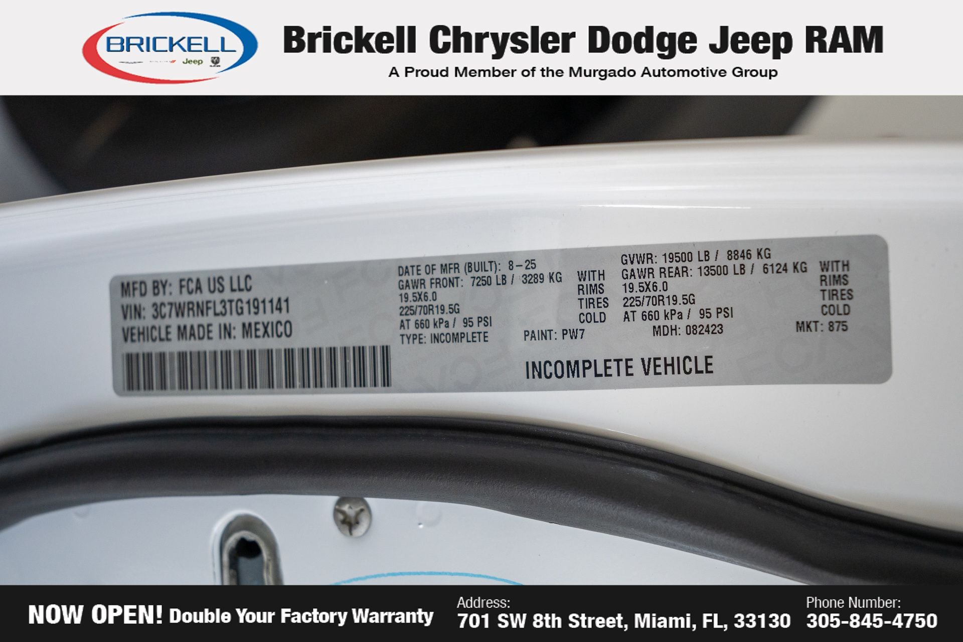 Price includes: $2500 - 2026 National Bonus Cash . Exp. 04/30/2026 Discover Your Next Vehicle at Brickell Chrysler Dodge Jeep Ram Welcome to Brickell CDJR, where we go beyond selling cars. We double the factory powertrain warranty, giving you added peace of mind. Our dealership offers one of the largest new car inventories in the region, ensuring you find the right vehicle Prices displayed do not included our Perma-plate. Our state-of-the-art service department is the largest in the country and is open seven days a week from 7 AM to 9 PM. Visit us at 701 SW 8th St, Miami, FL 33130, or call 305-777-2800 to learn more and schedule a test drive. The displayed price includes an incentive for financing with Brickell CDJR Finance Company. Outside financing and bank drafts are not accepted. All pre-owned vehicle exports are subject to an export fee. Prices apply only to customers who live, work, or worship in Broward, Miami-Dade, Palm Beach, Monroe, Collier, Hendry, Lee, Glades, Martin, St. Lucie, Okeechobee, Manatee, Hillsborough, Osceola, or Orange County. Customers outside these counties will pay an additional $ Taxes, title, registration, and dealer fees apply. New Price! Factory MSRP: $78,695 Bright White Clearcoat 2026 Ram 5500HD Tradesman 4WD 8-Speed Automatic Cummins 6.7L I6 Turbodiesel