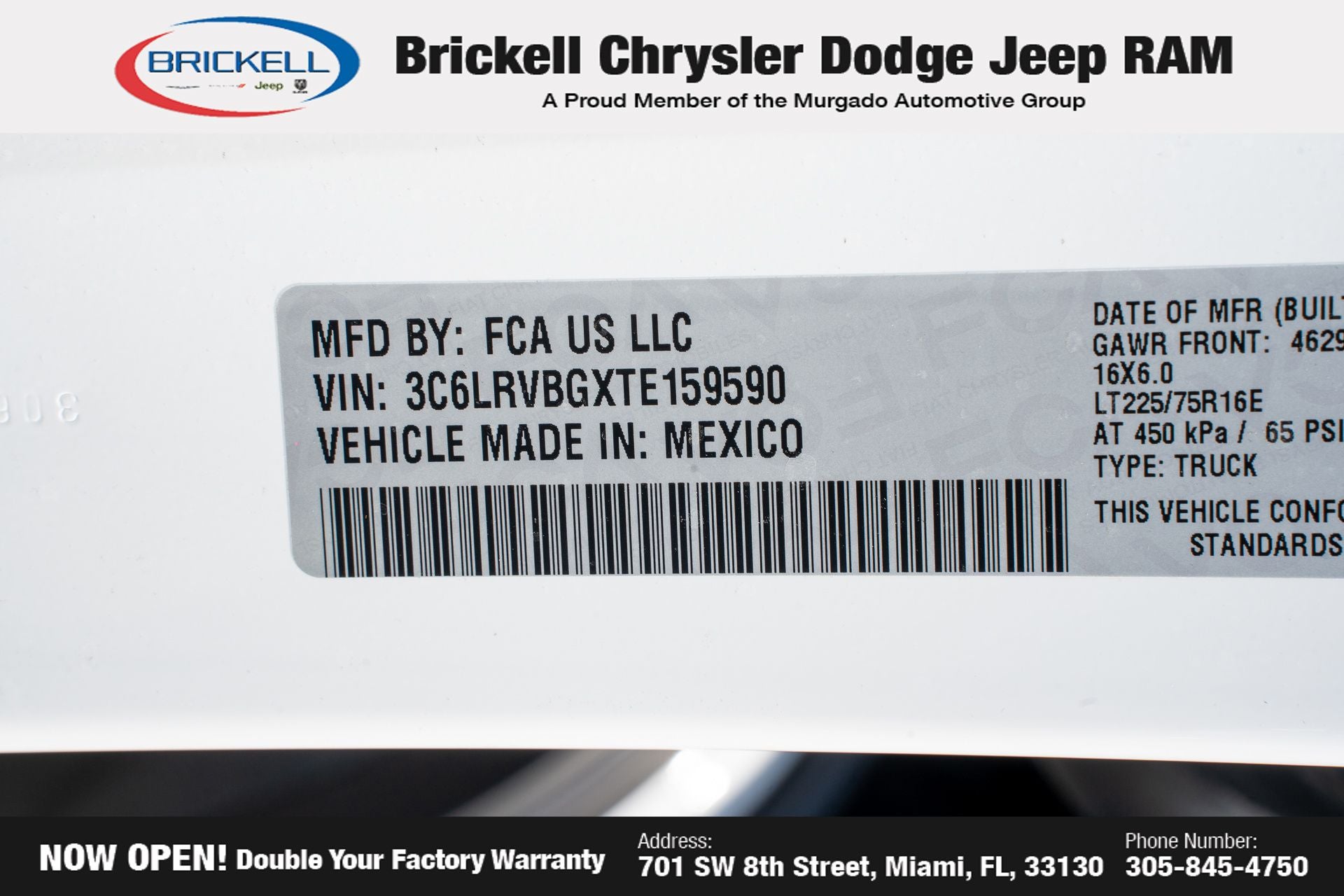 Price includes: $4000 - 2026 National Bonus Cash . Exp. 03/02/2026 Discover Your Next Vehicle at Brickell Chrysler Dodge Jeep Ram Welcome to Brickell CDJR, where we go beyond selling cars. We double the factory powertrain warranty, giving you added peace of mind. Our dealership offers one of the largest new car inventories in the region, ensuring you find the right vehicle Prices displayed do not included our Perma-plate. Our state-of-the-art service department is the largest in the country and is open seven days a week from 7 AM to 9 PM. Visit us at 701 SW 8th St, Miami, FL 33130, or call 305-777-2800 to learn more and schedule a test drive. The displayed price includes an incentive for financing with Brickell CDJR Finance Company. Outside financing and bank drafts are not accepted. All pre-owned vehicle exports are subject to an export fee. Prices apply only to customers who live, work, or worship in Broward, Miami-Dade, Palm Beach, Monroe, Collier, Hendry, Lee, Glades, Martin, St. Lucie, Okeechobee, Manatee, Hillsborough, Osceola, or Orange County. Customers outside these counties will pay an additional $ Taxes, title, registration, and dealer fees apply. Factory MSRP: $56,250 Bright White Clearcoat 2026 Ram ProMaster 1500 FWD 9-Speed 948TE Automatic 3.6L V6 24V VVT
