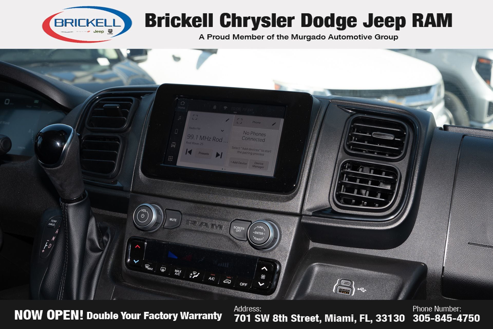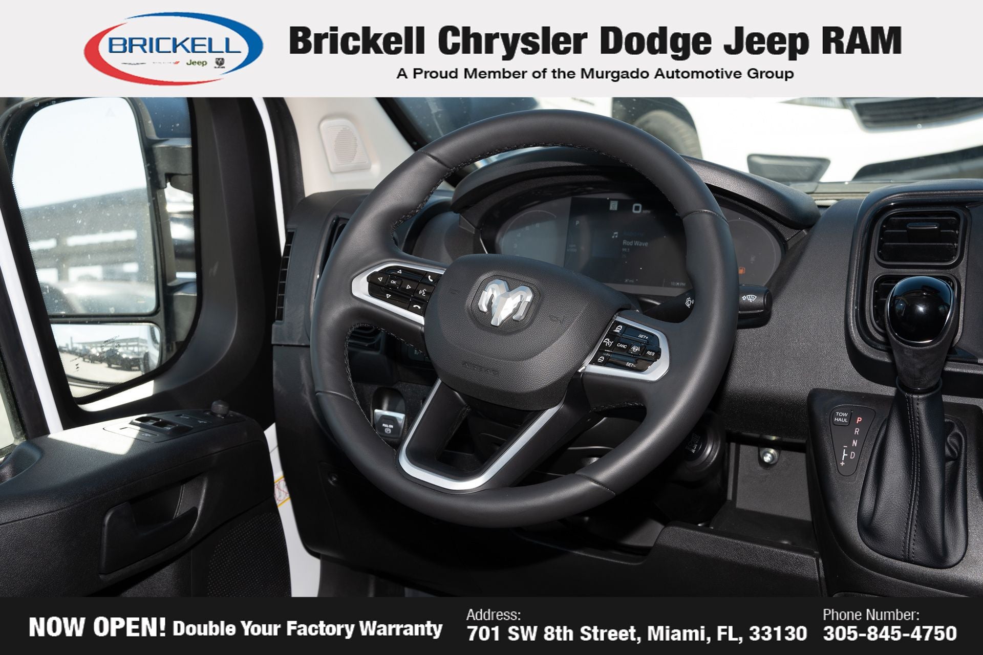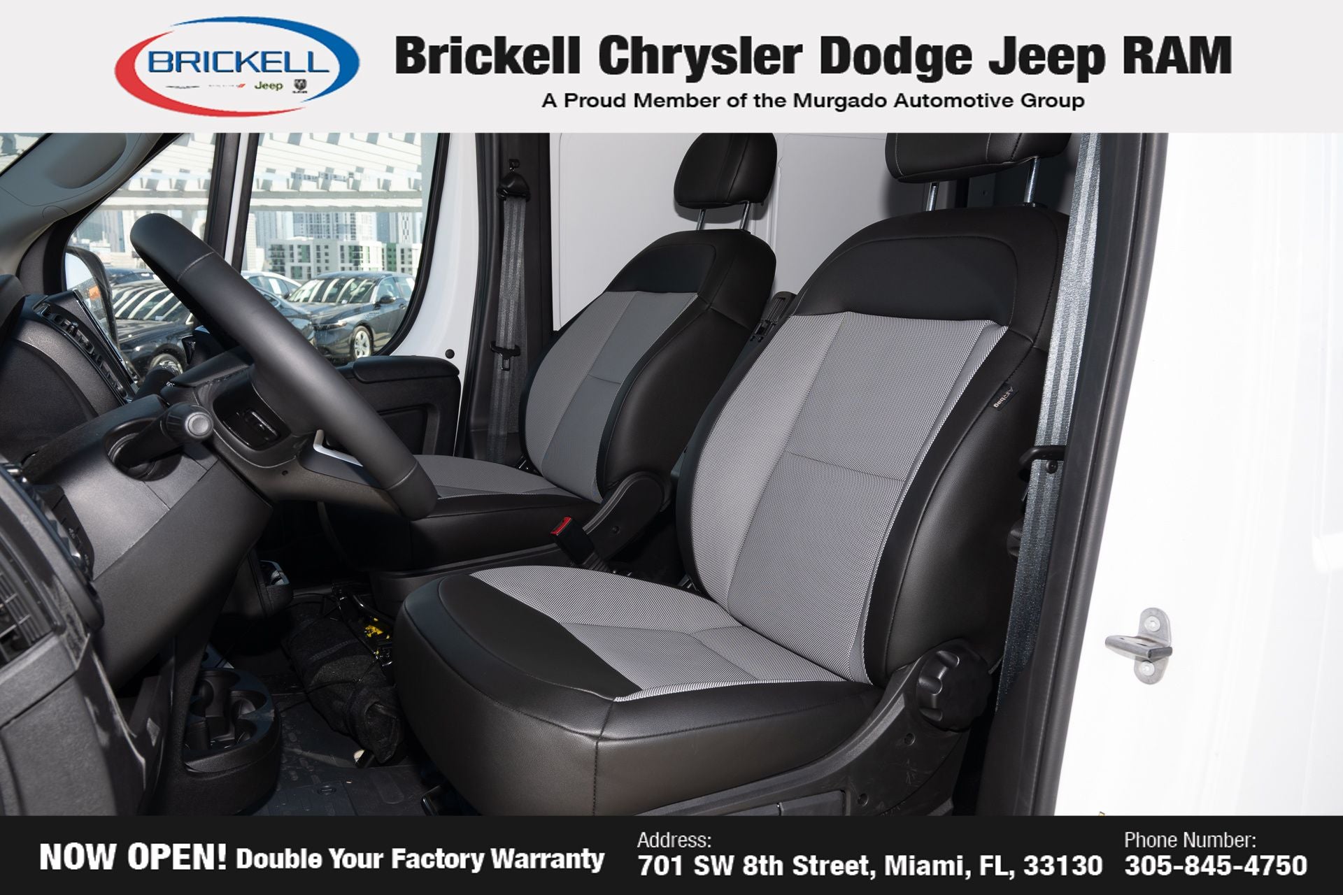 Price includes: $4000 - 2026 National Bonus Cash . Exp. 04/30/2026 Discover Your Next Vehicle at Brickell Chrysler Dodge Jeep Ram Welcome to Brickell CDJR, where we go beyond selling cars. We double the factory powertrain warranty, giving you added peace of mind. Our dealership offers one of the largest new car inventories in the region, ensuring you find the right vehicle Prices displayed do not included our Perma-plate. Our state-of-the-art service department is the largest in the country and is open seven days a week from 7 AM to 9 PM. Visit us at 701 SW 8th St, Miami, FL 33130, or call 305-777-2800 to learn more and schedule a test drive. The displayed price includes an incentive for financing with Brickell CDJR Finance Company. Outside financing and bank drafts are not accepted. All pre-owned vehicle exports are subject to an export fee. Prices apply only to customers who live, work, or worship in Broward, Miami-Dade, Palm Beach, Monroe, Collier, Hendry, Lee, Glades, Martin, St. Lucie, Okeechobee, Manatee, Hillsborough, Osceola, or Orange County. Customers outside these counties will pay an additional $ Taxes, title, registration, and dealer fees apply. Factory MSRP: $57,375 Bright White Clearcoat 2026 Ram ProMaster 2500 High Roof FWD 9-Speed Automatic 3.6L V6 24V VVT