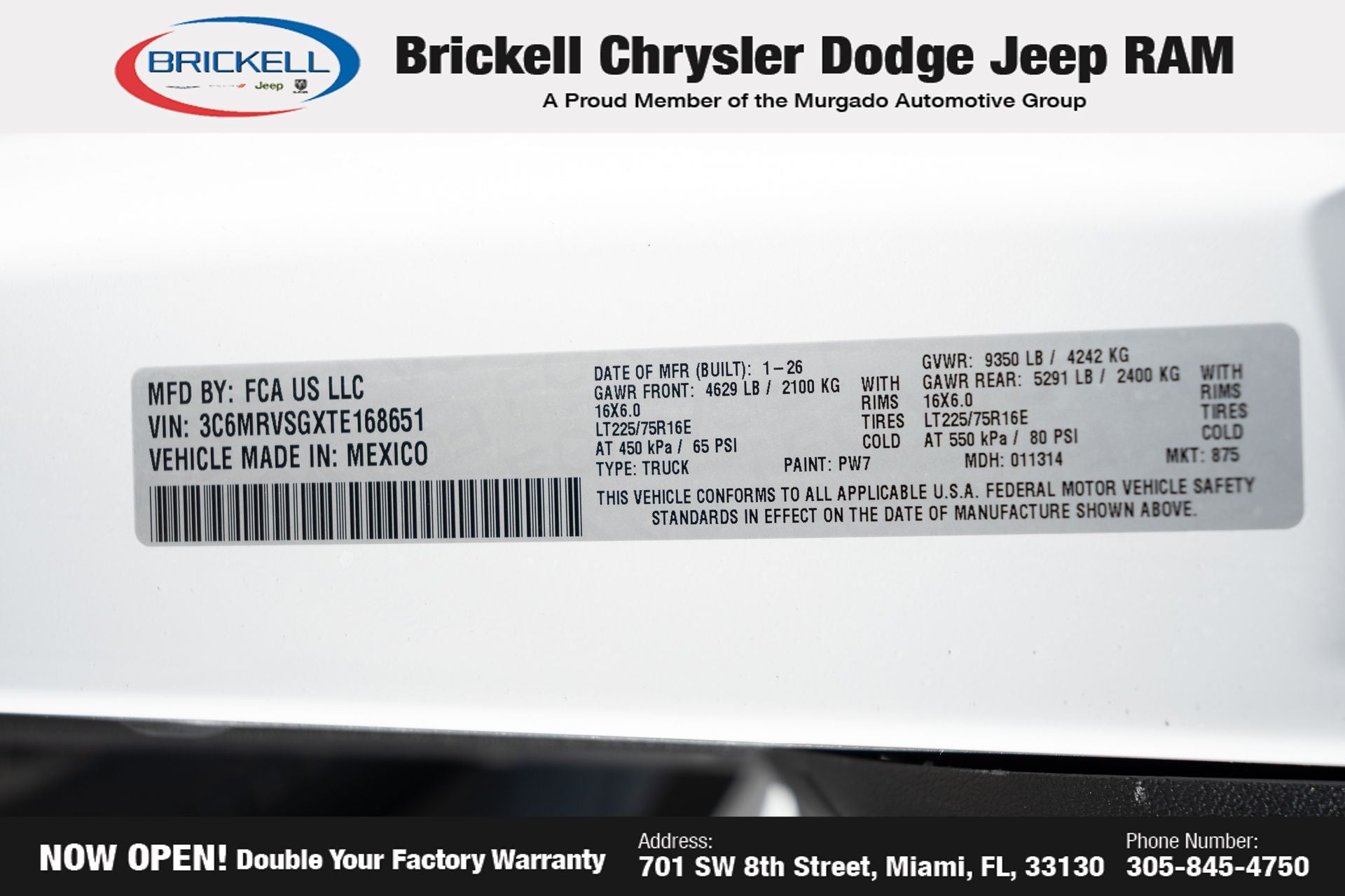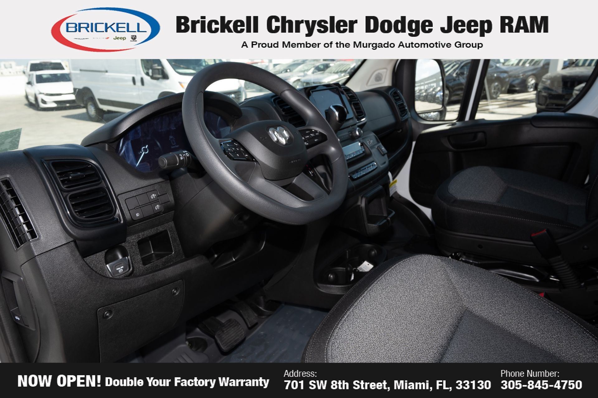 Price includes: $4000 - 2026 National Bonus Cash . Exp. 04/30/2026 Discover Your Next Vehicle at Brickell Chrysler Dodge Jeep Ram Welcome to Brickell CDJR, where we go beyond selling cars. We double the factory powertrain warranty, giving you added peace of mind. Our dealership offers one of the largest new car inventories in the region, ensuring you find the right vehicle Prices displayed do not included our Perma-plate. Our state-of-the-art service department is the largest in the country and is open seven days a week from 7 AM to 9 PM. Visit us at 701 SW 8th St, Miami, FL 33130, or call 305-777-2800 to learn more and schedule a test drive. The displayed price includes an incentive for financing with Brickell CDJR Finance Company. Outside financing and bank drafts are not accepted. All pre-owned vehicle exports are subject to an export fee. Prices apply only to customers who live, work, or worship in Broward, Miami-Dade, Palm Beach, Monroe, Collier, Hendry, Lee, Glades, Martin, St. Lucie, Okeechobee, Manatee, Hillsborough, Osceola, or Orange County. Customers outside these counties will pay an additional $ Taxes, title, registration, and dealer fees apply. Factory MSRP: $61,990 Bright White Clearcoat 2026 Ram ProMaster 3500 Super High Roof FWD 9-Speed Automatic 3.6L V6 24V VVT