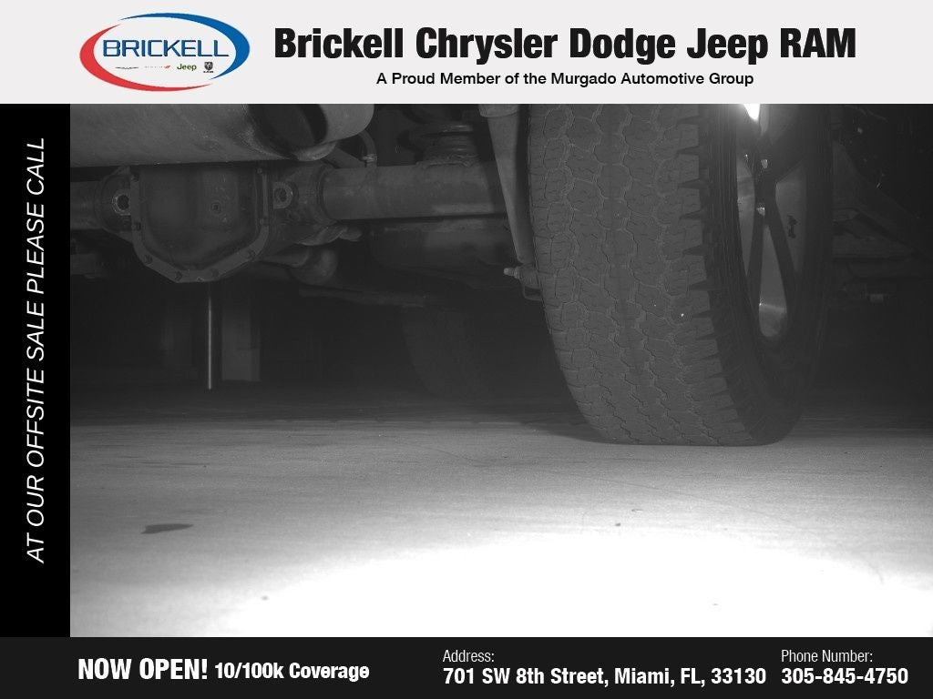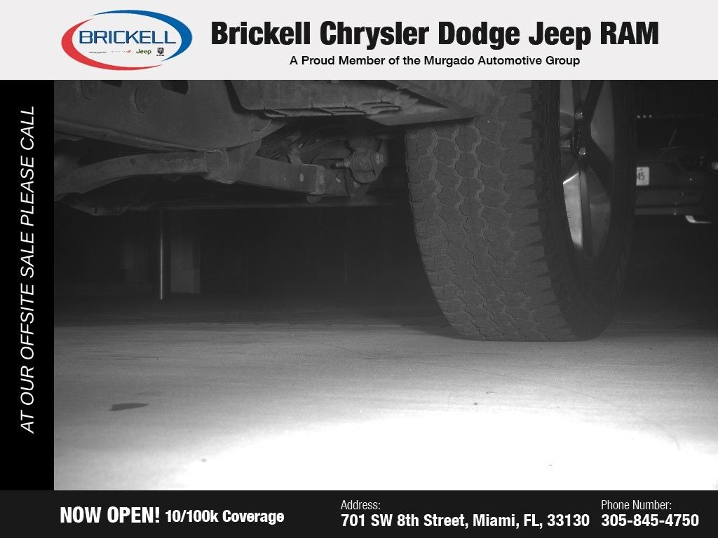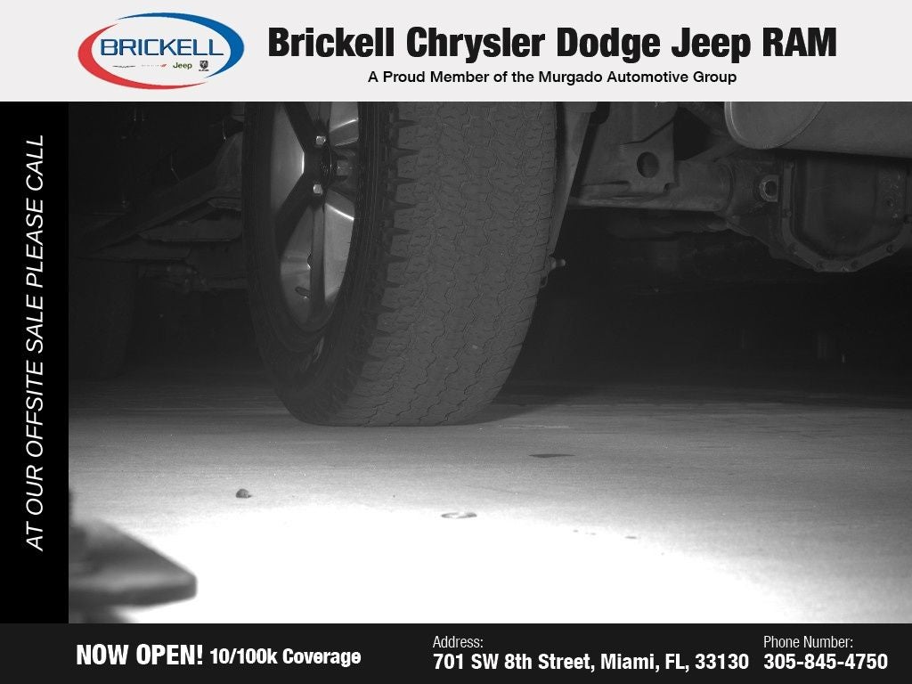 At Brickell CDJR, we make buying a pre-owned vehicle easy and stress-free. Every pre-owned vehicle is thoroughly inspected to ensure quality and reliability. For added confidence, we include a 10-year/100,000-mile powertrain warranty on all non-European brands at no additional cost. Our dealership offers one of the largest selections of pre-owned inventory in the region, so you can find the right car, truck, or SUV for your needs. Our state-of-the-art service department, the largest in the country, is open seven days a week from 7 AM to 9 PM, ensuring your vehicle stays in top condition. Visit us at 701 SW 8th St, Miami, FL 33130, or call 305-777-2800 to learn more and schedule a test drive. The displayed price includes an incentive for financing with Brickell CDJR Finance Company. Price does not included our Perma-Plate .Outside financing and bank drafts are not accepted. All pre-owned vehicle exports are subject to an export fee. Taxes, title, registration, and dealer fees apply.
