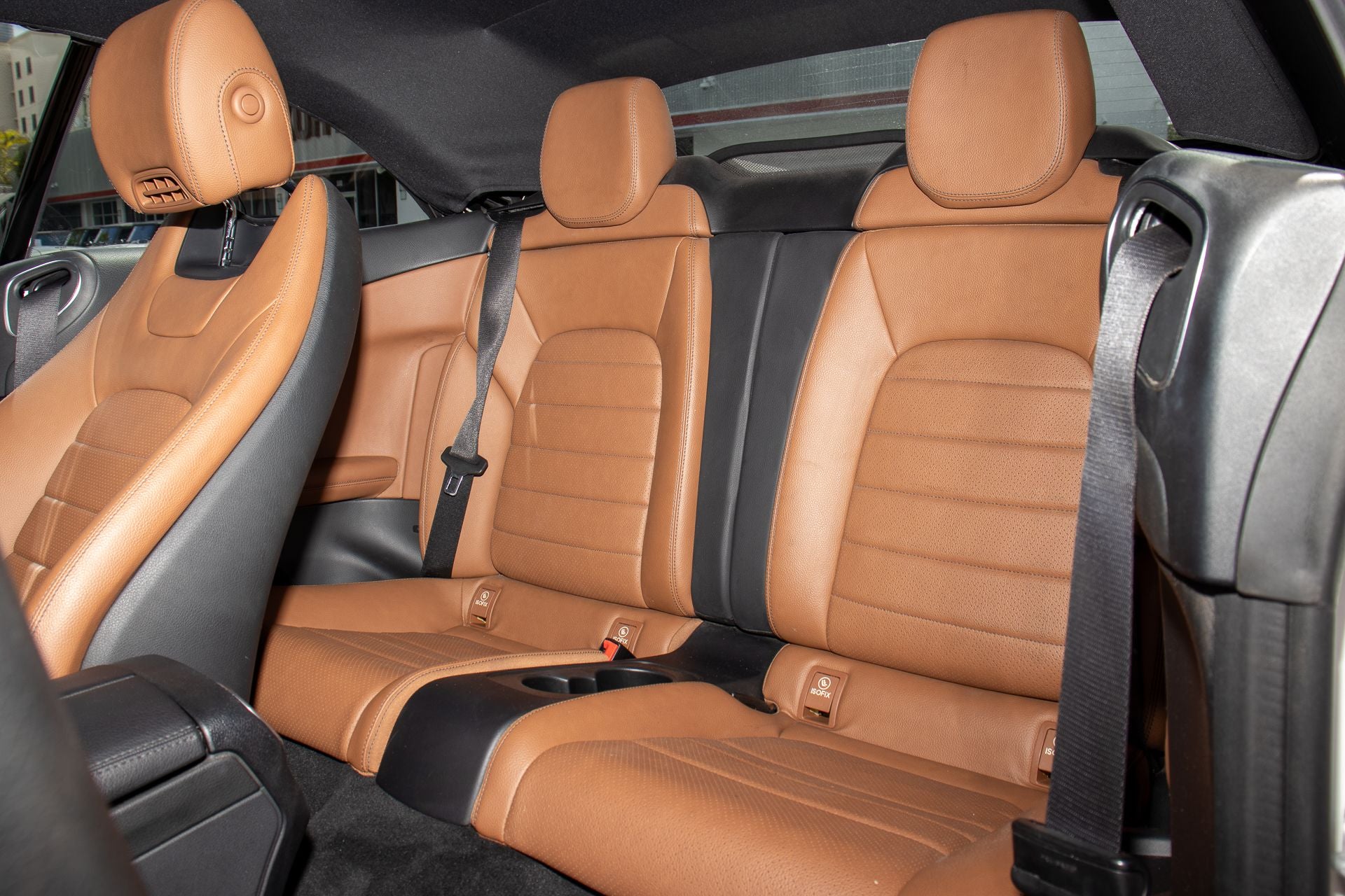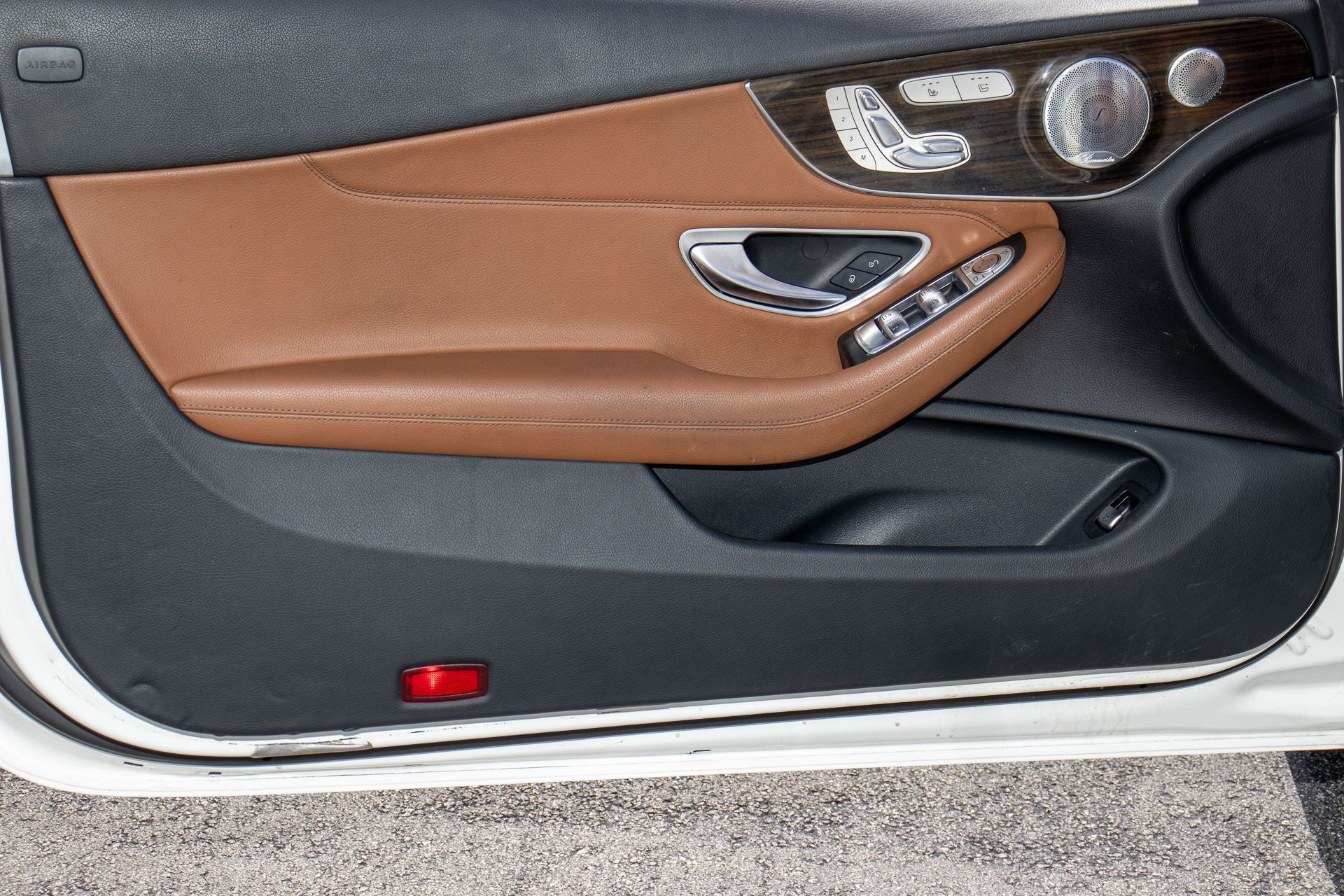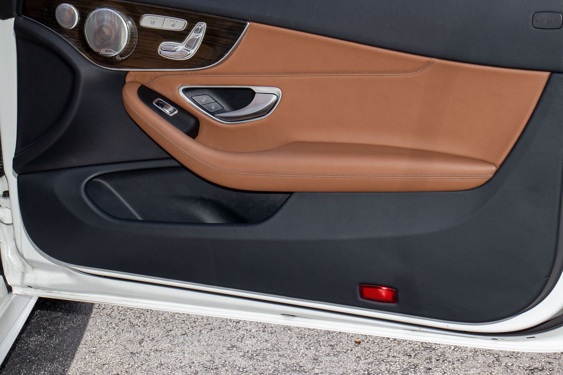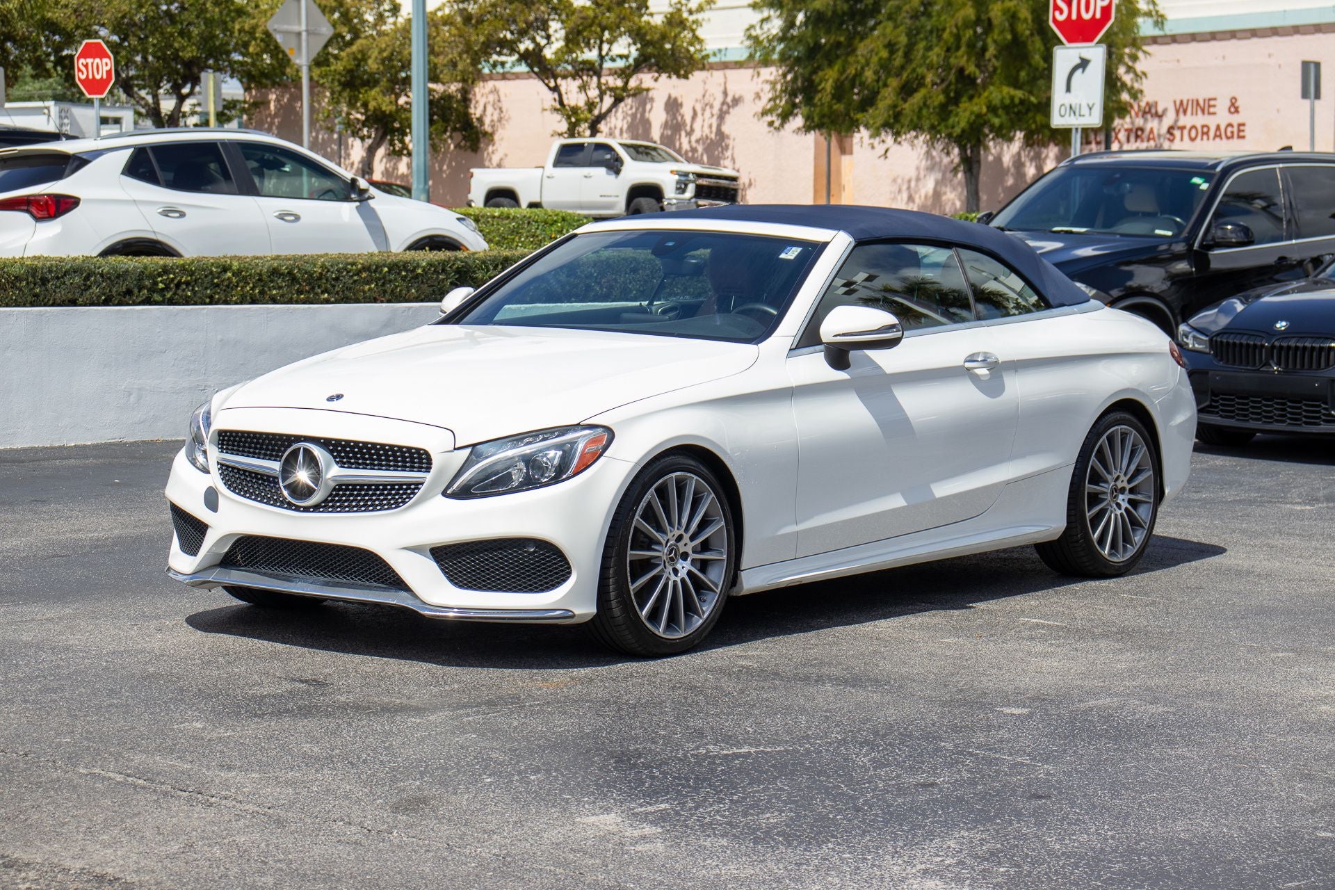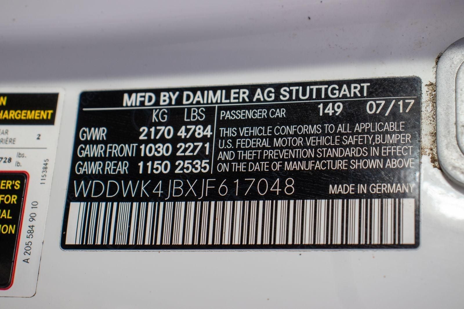 C 300, 2D Convertible, 2.0L I4 Turbocharged, 9-Speed Automatic, RWD, Polar White, Saddle Brown/Black w/MB-Tex Upholstery, 4-Way Lumbar Support, 4-Wheel Disc Brakes, 5 Speakers, ABS brakes, Air Conditioning, Alloy wheels, AM/FM radio, Anti-whiplash front head restraints, Auto tilt-away steering wheel, Auto-dimming door mirrors, Auto-dimming Rear-View mirror, Automatic temperature control, Brake assist, Bumpers: body-color, CD player, Child-Seat-Sensing Airbag, Compass, Convertible roof lining, Convertible roof wind blocker, Delay-off headlights, Driver door bin, Driver vanity mirror, Dual front impact airbags, Dual front side impact airbags, Electronic Stability Control, Emergency communication system: mbrace2, Exterior Parking Camera Rear, Four wheel independent suspension, Front anti-roll bar, Front Bucket Seats, Front Center Armrest, Front dual zone A/C, Front reading lights, Fully automatic headlights, Garage door transmitter: Homelink, Genuine wood console insert, Genuine wood door panel insert, Glass rear window, Head restraints memory, Heated door mirrors, Heated Front Seats, Heated front seats, Illuminated entry, Integrated roll-over protection, Knee airbag, Low tire pressure warning, MB-Tex Upholstery, Memory seat, Occupant sensing airbag, Outside temperature display, Overhead airbag, Overhead console, Panic alarm, Passenger door bin, Passenger vanity mirror, Power adjustable front head restraints, Power convertible roof, Power door mirrors, Power driver seat, Power Driver Seat & Steering Column w/Memory, Power passenger seat, Power steering, Power windows, Premium audio system: COMAND®, Radio data system, Radio: Audio 20 - Radio w/Bluetooth®, Rain sensing wipers, Rear anti-roll bar, Rear fog lights, Rear side impact airbag, Rear window defroster, Remote keyless entry, Security system, Single CD Player, Speed control, Speed-sensing steering, Split folding rear seat, Steering wheel memory, Steering wheel mounted audio controls, Tachometer, Telescoping steering wheel, Tilt steering wheel, Traction control, Trip computer, Turn signal indicator mirrors, Variably intermittent wipers, Weather band radio, Wheels: 18 Twin 5-Spoke, C 300, 2D Convertible, 2.0L I4 Turbocharged, 9-Speed Automatic, RWD, Polar White, Saddle Brown/Black w/MB-Tex Upholstery.