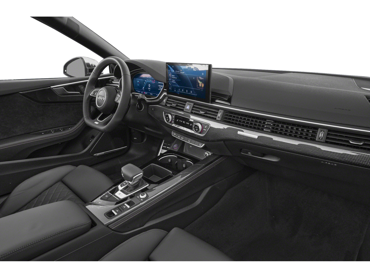This Audi S5 also boasts a wealth of advanced safety and technology features, including Audi connect CARE emergency communication system, front and rear acoustic parking sensors, and a rearview camera for effortless maneuverability. Elevate your driving experience with the Carbon Atlas inlays, Rings Audi Beam, and a host of other premium touches that showcase Audi's commitment to exceptional craftsmanship.