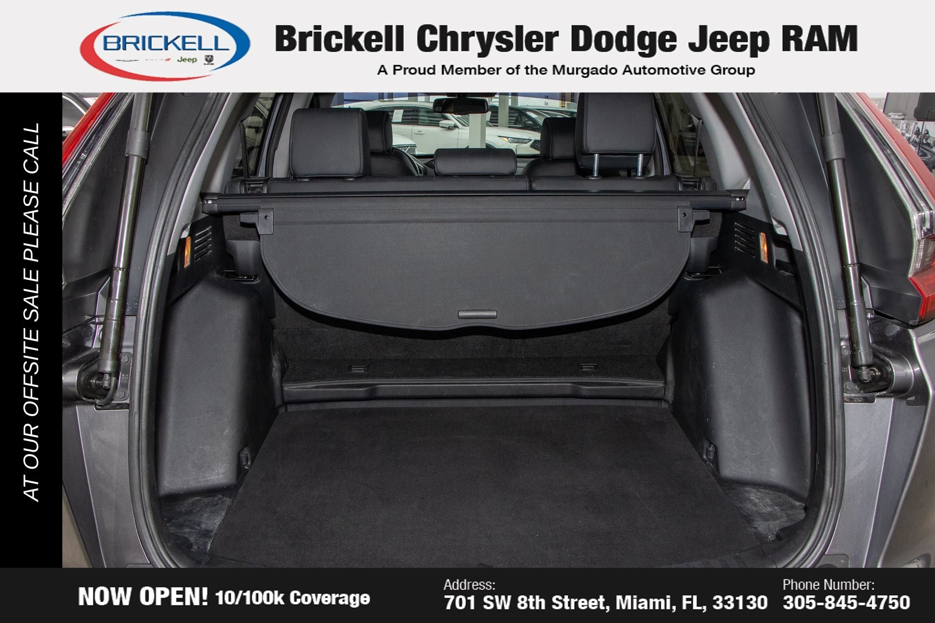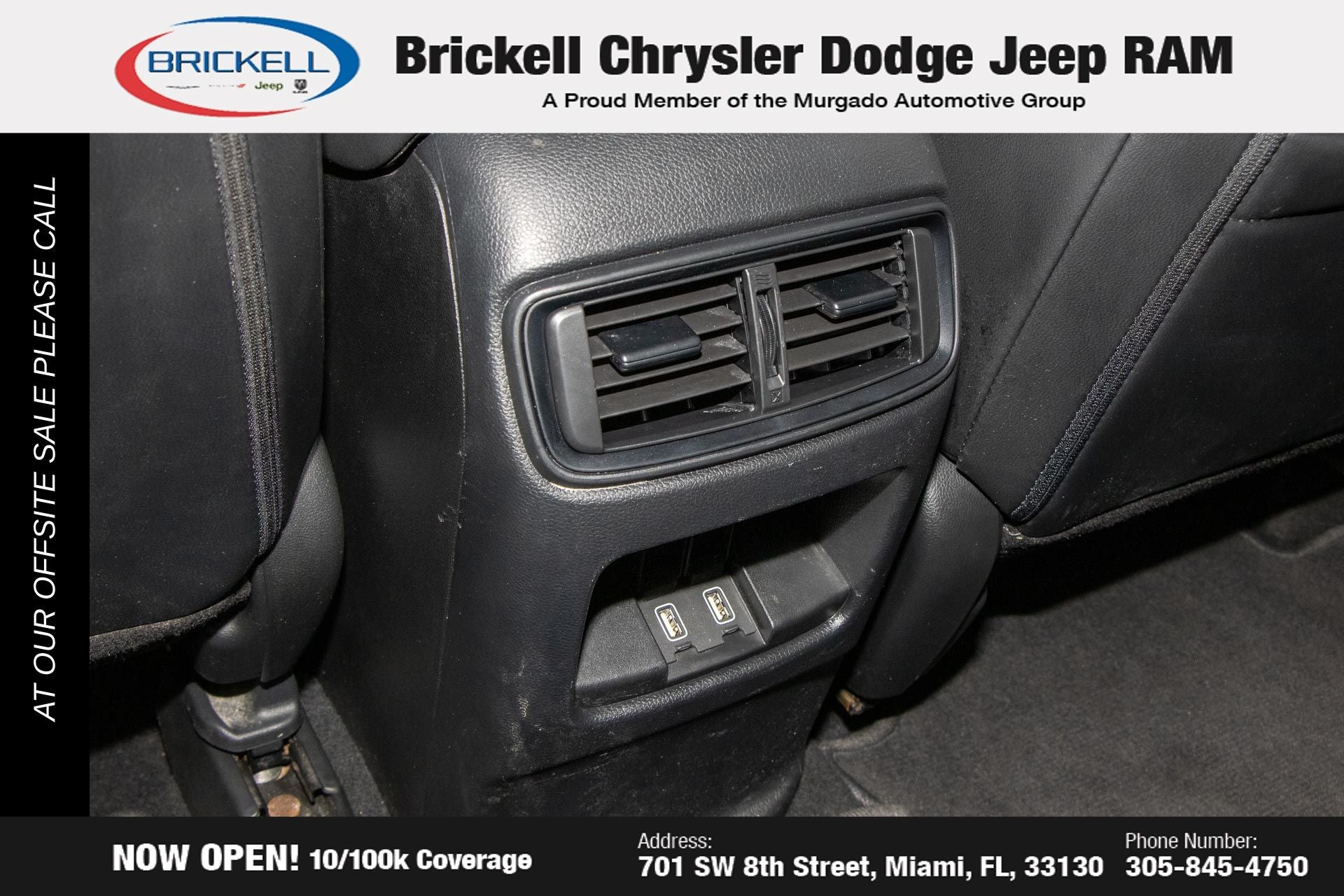 At Brickell CDJR, we make buying a pre-owned vehicle easy and stress-free. Every pre-owned vehicle is thoroughly inspected to ensure quality and reliability. For added confidence, we include a 10-year/100,000-mile powertrain warranty on all non-European brands at no additional cost. Our dealership offers one of the largest selections of pre-owned inventory in the region, so you can find the right car, truck, or SUV for your needs. Our state-of-the-art service department, the largest in the country, is open seven days a week from 7 AM to 9 PM, ensuring your vehicle stays in top condition. Visit us at 701 SW 8th St, Miami, FL 33130, or call 305-777-2800 to learn more and schedule a test drive. The displayed price includes an incentive for financing with Brickell CDJR Finance Company. Price does not included our Perma-Plate .Outside financing and bank drafts are not accepted. All pre-owned vehicle exports are subject to an export fee. Taxes, title, registration, and dealer fees apply.