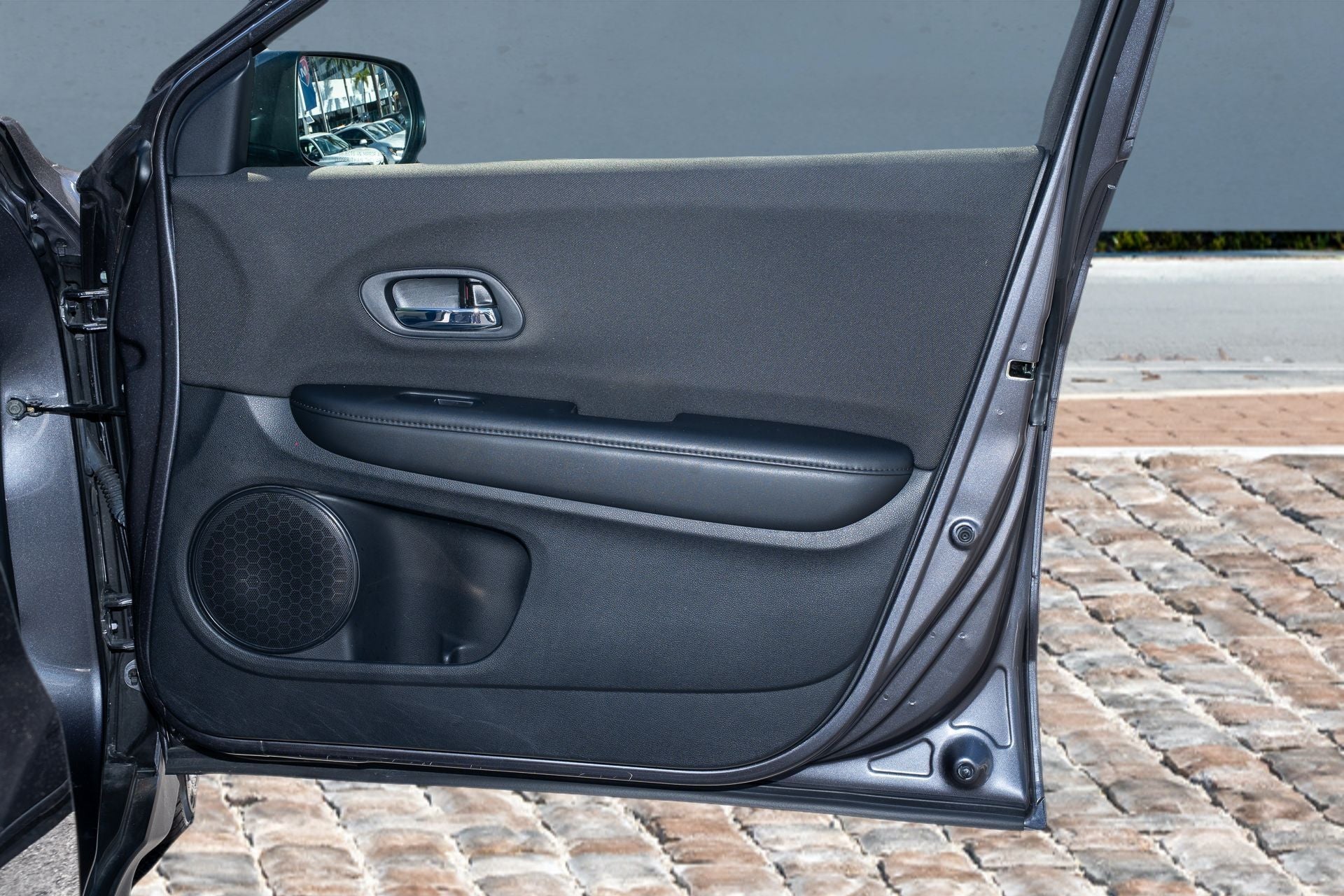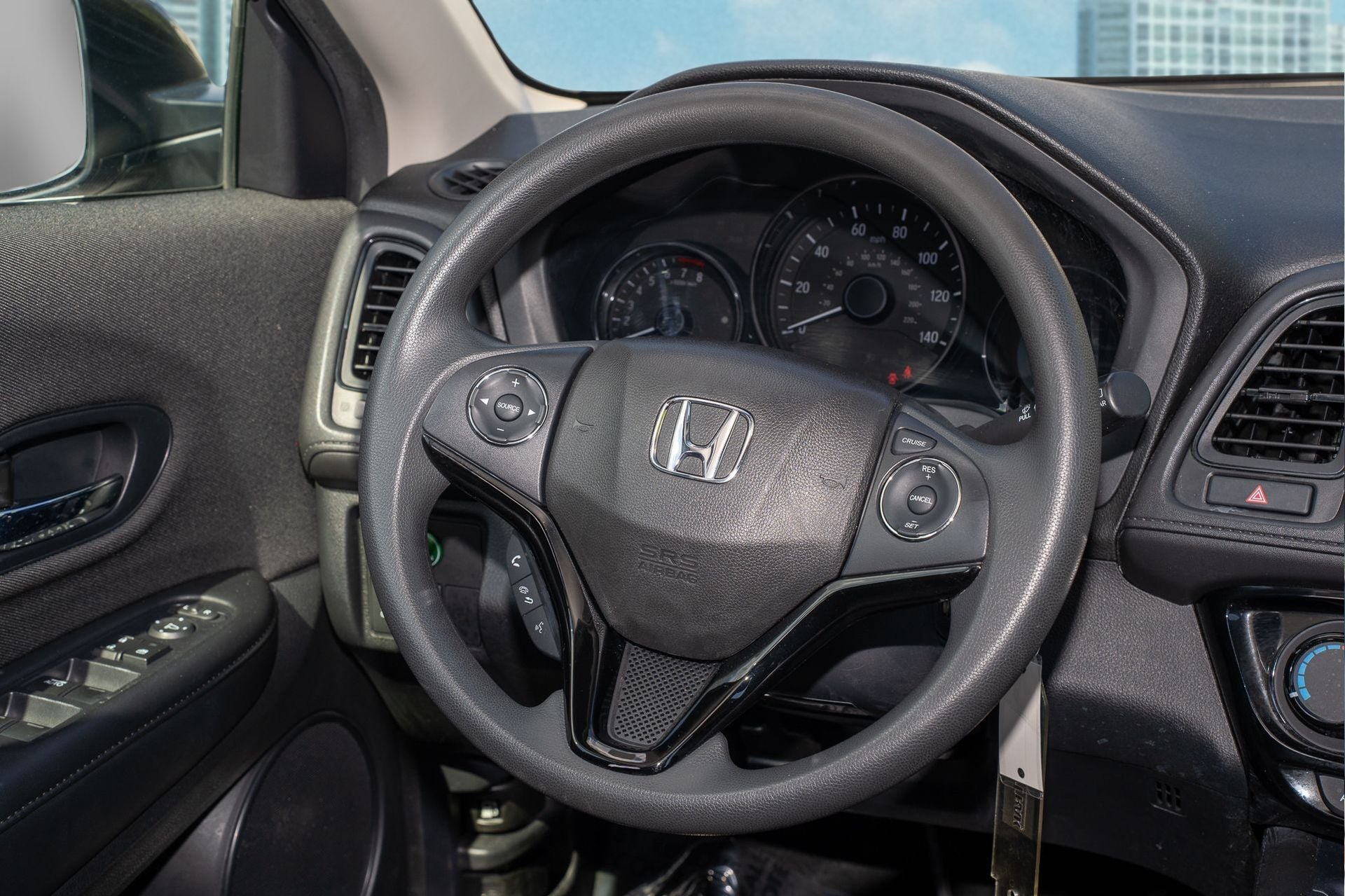 HR-V LX, 4D Sport Utility, 1.8L I4 SOHC 16V i-VTEC, CVT, FWD, Modern Steel Metallic, Black w/Cloth Seat Trim, 4 Speakers, 4-Wheel Disc Brakes, 5.436 Axle Ratio, ABS brakes, Air Conditioning, Alloy wheels, AM/FM radio, Brake assist, Bumpers: body-color, Cloth Seat Trim, Driver door bin, Driver vanity mirror, Dual front impact airbags, Dual front side impact airbags, Electronic Stability Control, Exterior Parking Camera Rear, Front anti-roll bar, Front Bucket Seats, Front Center Armrest, Front reading lights, Front wheel independent suspension, Fully automatic headlights, Illuminated entry, Low tire pressure warning, Occupant sensing airbag, Outside temperature display, Overhead airbag, Panic alarm, Passenger door bin, Passenger vanity mirror, Power door mirrors, Power steering, Power windows, Radio data system, Radio: AM/FM Stereo Audio System (160-Watt), Rear window defroster, Rear window wiper, Remote keyless entry, Security system, Speed control, Speed-sensing steering, Split folding rear seat, Spoiler, Steering wheel mounted audio controls, Tachometer, Telescoping steering wheel, Tilt steering wheel, Traction control, Trip computer, Wheels: 17 Silver-Painted Alloy, HR-V LX, 4D Sport Utility, 1.8L I4 SOHC 16V i-VTEC, CVT, FWD, Modern Steel Metallic, Black w/Cloth Seat Trim.