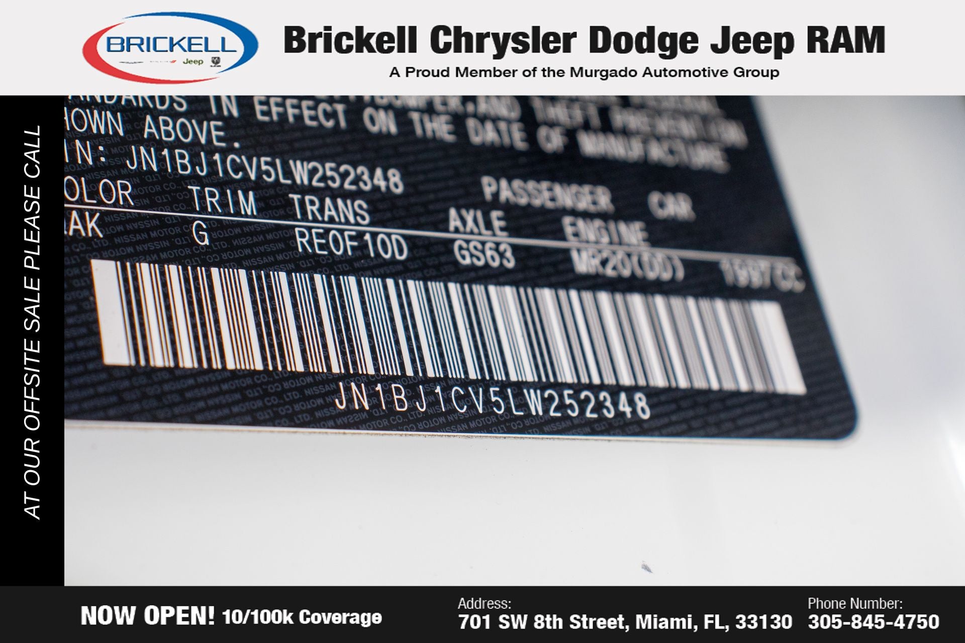 Find Your Perfect Pre-Owned Vehicle at Brickell Chrysler Dodge Jeep Ram At Brickell CDJR, we make buying a pre-owned vehicle easy and stress-free. Every pre-owned vehicle is thoroughly inspected to ensure quality and reliability. For added confidence, we include a **10-year/100,000-mile powertrain warranty on all non-European brands** at no additional cost. Our dealership offers one of the largest selections of pre-owned inventory in the region, so you can find the right car, truck, or SUV for your needs. Our state-of-the-art service department, the largest in the country, is open seven days a week from 7 AM to 9 PM, ensuring your vehicle stays in top condition. Visit us at 701 SW 8th St, Miami, FL 33130, or call 305-777-2800 to learn more and schedule a test drive. The displayed price includes an incentive for financing with Brickell CDJR Finance Company. Price does not included our Perma-Plate .Outside financing and bank drafts are not accepted. All pre-owned vehicle exports are subject to an export fee. Taxes, title, registration, and dealer fees apply. 25/32 City/Highway MPG