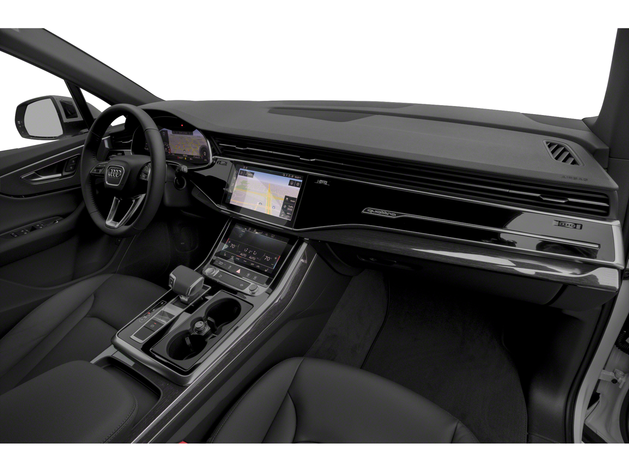 - Premium Plus Package: Delivers a Bang & Olufsen 3D Premium Sound System, Audi Phone Box with wireless charging, a 3-spoke multifunction steering wheel with paddles, and a Topview Camera System.