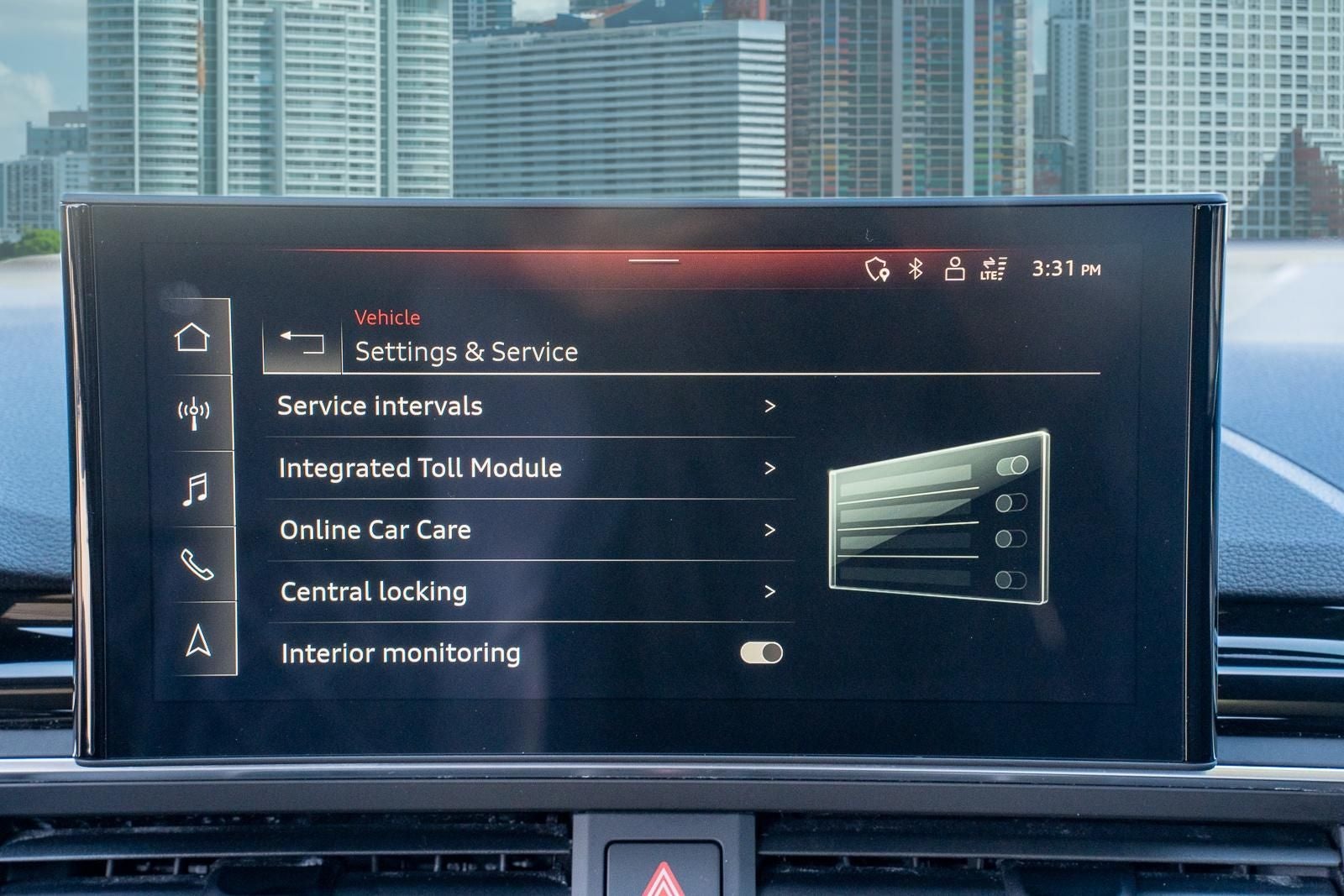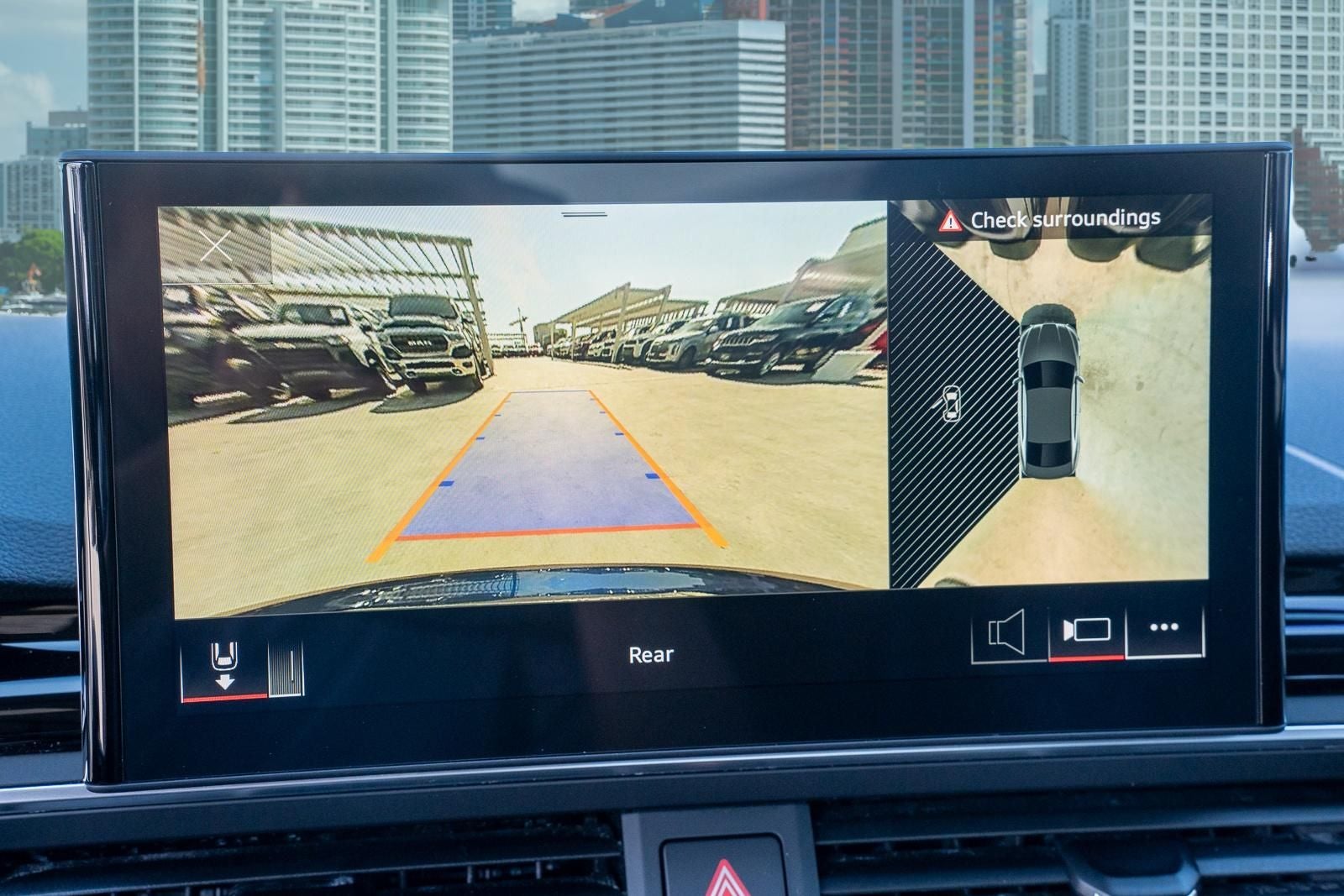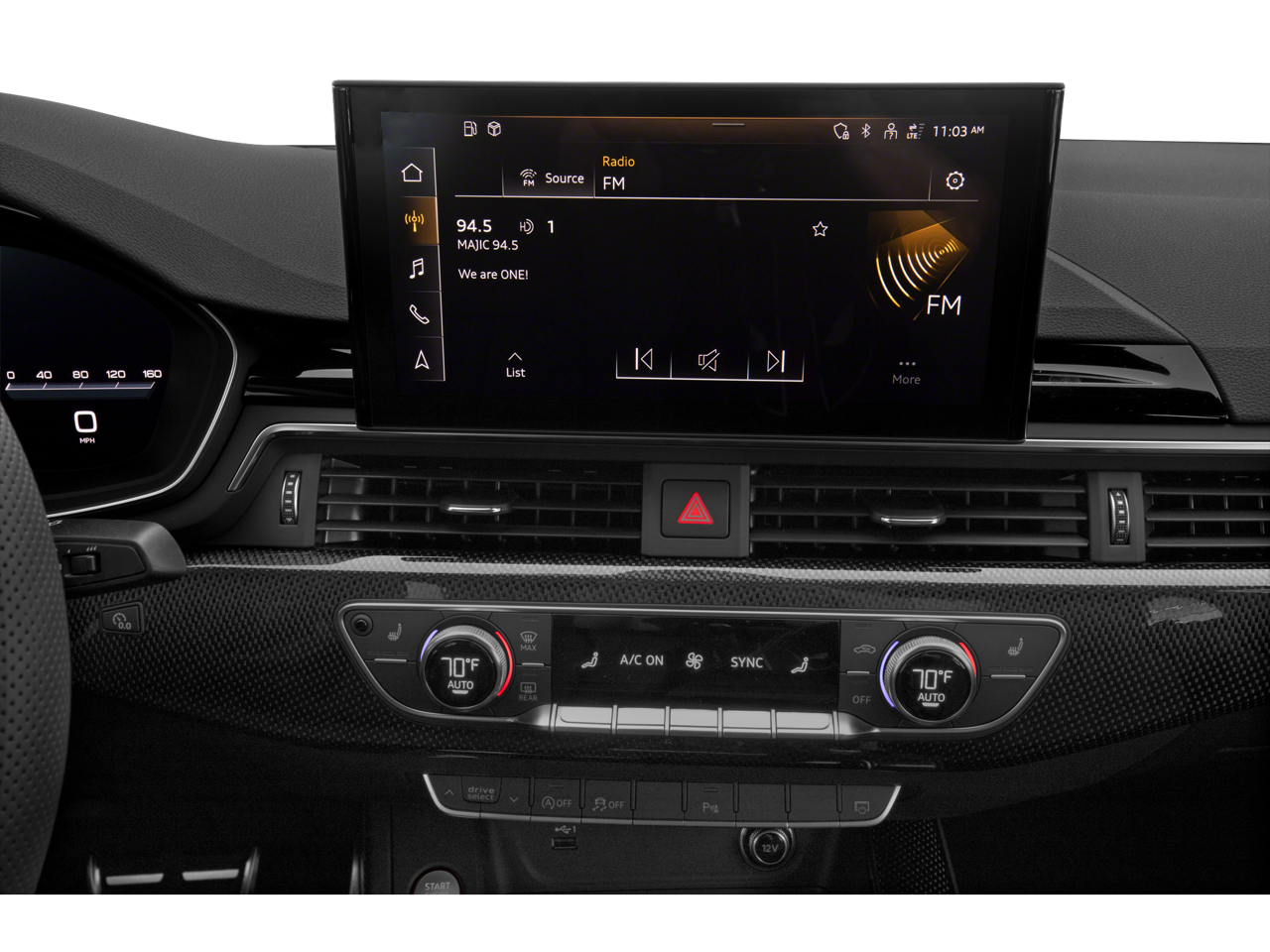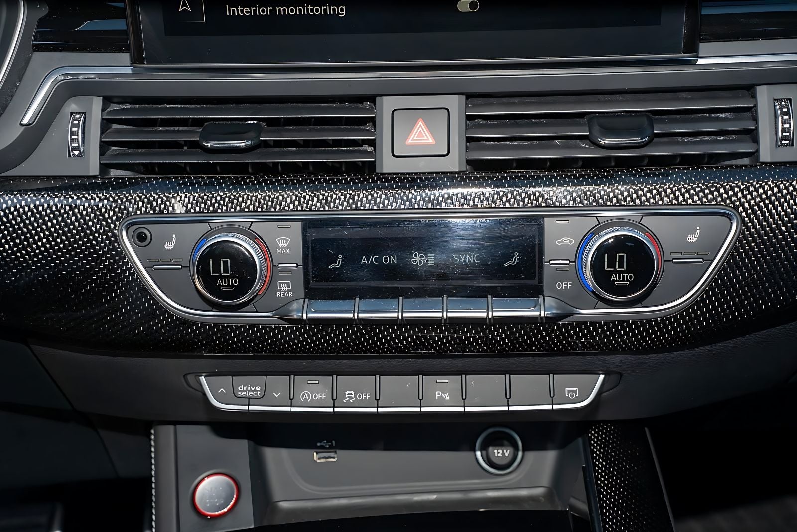10 Speakers, 4-Wheel Disc Brakes, ABS brakes, Adaptive Cruise Control w/Traffic Jam Assist, Air Conditioning, Alarm System w/Motion Sensors, Alloy wheels, AM/FM radio, Audi Active Lane Assist, Audi Advanced Key, Audi S Beam - Front Doors Only, Audi Side Assist w/Pre Sense Rear, Audi smartphone interface with Apple CarPlay, Auto High-beam Headlights, Auto-Dimming Exterior Mirrors, Auto-dimming Rear-View mirror, Automatic temperature control, Black Exterior Trim, Black Optic Package, Black Roof, Brake assist, Bumpers: body-color, Carbon Atlas Inlays, Compass, Convenience Package, Delay-off headlights, Driver door bin, Driver Seat Memory, Driver vanity mirror, Dual front impact airbags, Dual front side impact airbags, Electronic Stability Control, Emergency communication system: Audi connect CARE, Exterior Parking Camera Rear, Four wheel independent suspension, Front & Rear Red Brake Calipers, Front anti-roll bar, Front Bucket Seats, Front Center Armrest, Front dual zone A/C, Front fog lights, Front reading lights, Garage door transmitter: HomeLink, Hands-On Detection Steering Wheel, Heated door mirrors, Heated Front S Sport Seats, Heated front seats, Heated Steering Wheel, High-Gloss Black Exterior Mirror Housings, Illuminated entry, Knee airbag, Leather Shift Knob, Leather steering wheel, Leather/Alcantara Seating Surfaces, Low tire pressure warning, Occupant sensing airbag, Outside temperature display, Overhead airbag, Overhead console, Panic alarm, Parking System Plus (Front/Rear Acoustic Sensors), Passenger door bin, Passenger vanity mirror, Power door mirrors, Power driver seat, Power Folding Exterior Mirrors, Power moonroof, Power passenger seat, Power steering, Power windows, Premium Plus, Radio data system, Radio: Audi Sound System, Rain sensing wipers, Rear air conditioning, Rear anti-roll bar, Rear reading lights, Rear seat center armrest, Rear window defroster, Remote keyless entry, S Sport Package, S5 Logo Audi Guard All-Weather Floor Mats, SiriusXM All Access Service, Speed control, Speed-sensing steering, Speed-Sensitive Wipers, Split folding rear seat, Spoiler, Sport Adaptive Damping Suspension, Sport Rear Differential, Steering wheel mounted audio controls, Tachometer, Telescoping steering wheel, Tilt steering wheel, Top View Camera System, Traction control, Trip computer, Turn signal indicator mirrors, Variably intermittent wipers, Wheels: 18 5-Double-Spoke Design, Wheels: 20 5-Twin-Spoke Polygon Design.