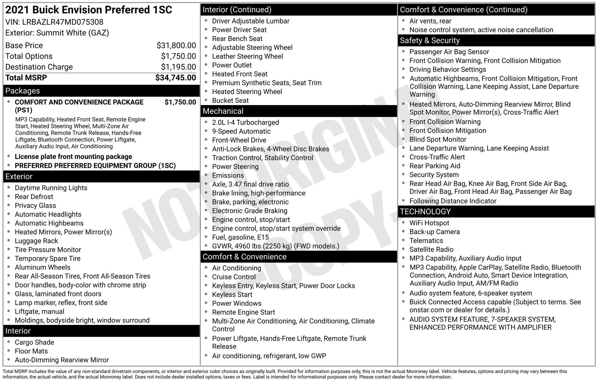 Tailored to meet your needs, the 2021 Envision Preferred comes equipped with a thoughtfully curated selection of premium features:
