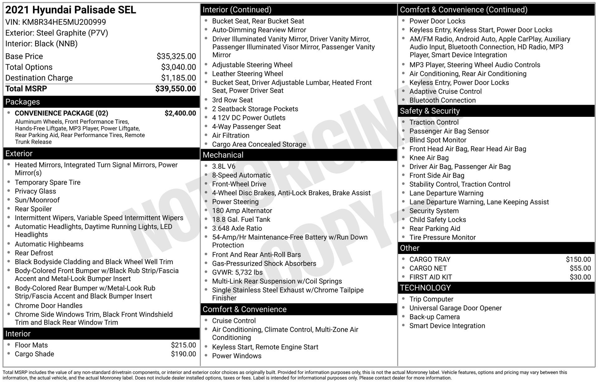 With low mileage and an unbeatable price, this 2021 Hyundai Palisade SEL is an exceptional value. Don't miss your chance to experience the perfect blend of style, comfort, and capability.