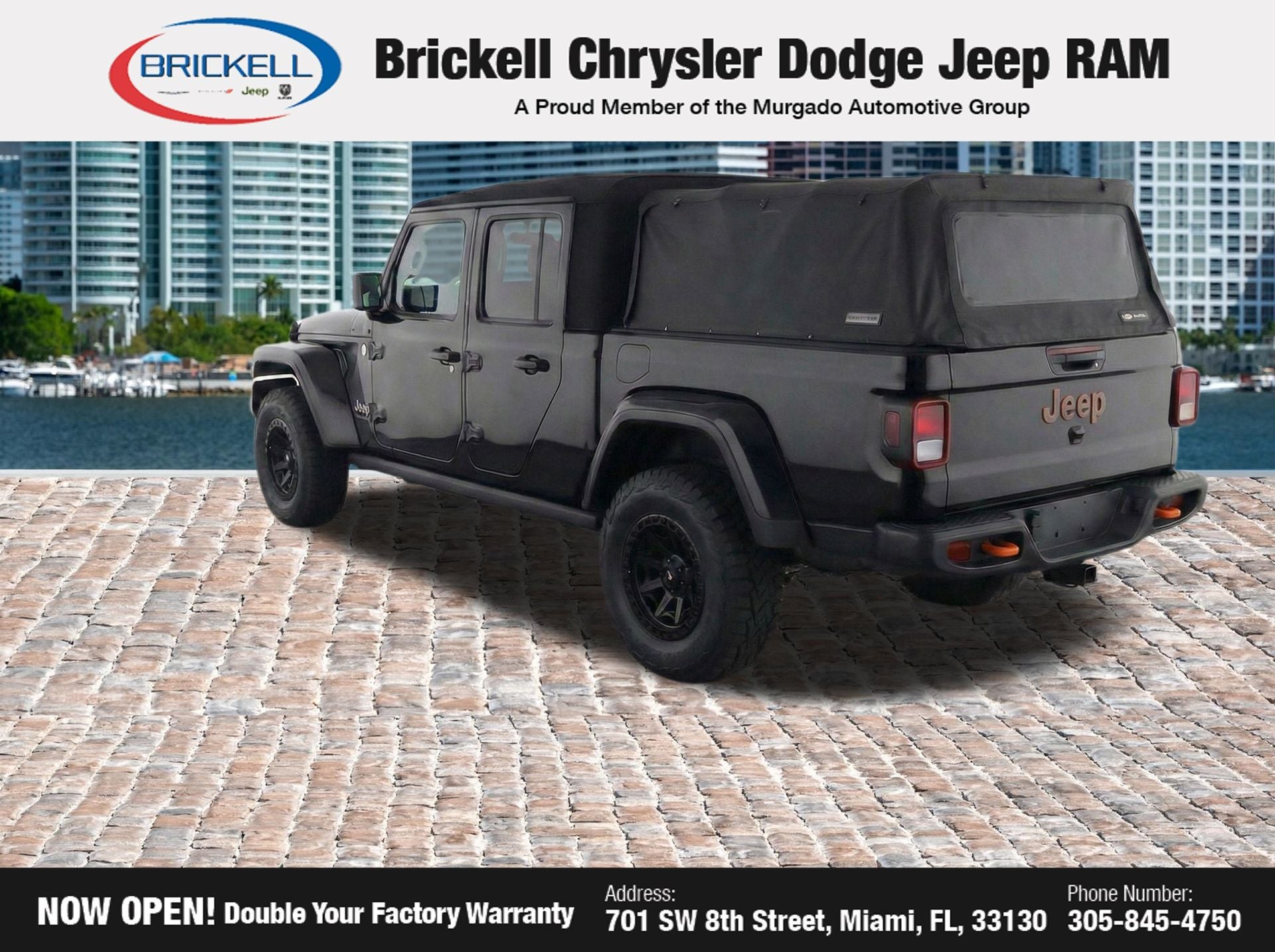 At Brickell CDJR, we make buying a pre-owned vehicle easy and stress-free. Every pre-owned vehicle is thoroughly inspected to ensure quality and reliability. For added confidence, we include a **10-year/100,000-mile powertrain warranty on all non-European brands** at no additional cost. Our dealership offers one of the largest selections of pre-owned inventory in the region, so you can find the right car, truck, or SUV for your needs. Our state-of-the-art service department, the largest in the country, is open seven days a week from 7 AM to 9 PM, ensuring your vehicle stays in top condition. Visit us at 701 SW 8th St, Miami, FL 33130, or call 305-777-2800 to learn more and schedule a test drive. The displayed price includes an incentive for financing with Brickell CDJR Finance Company. Price does not included our Perma-Plate .Outside financing and bank drafts are not accepted. All pre-owned vehicle exports are subject to an export fee. Taxes, title, registration, and dealer fees apply.