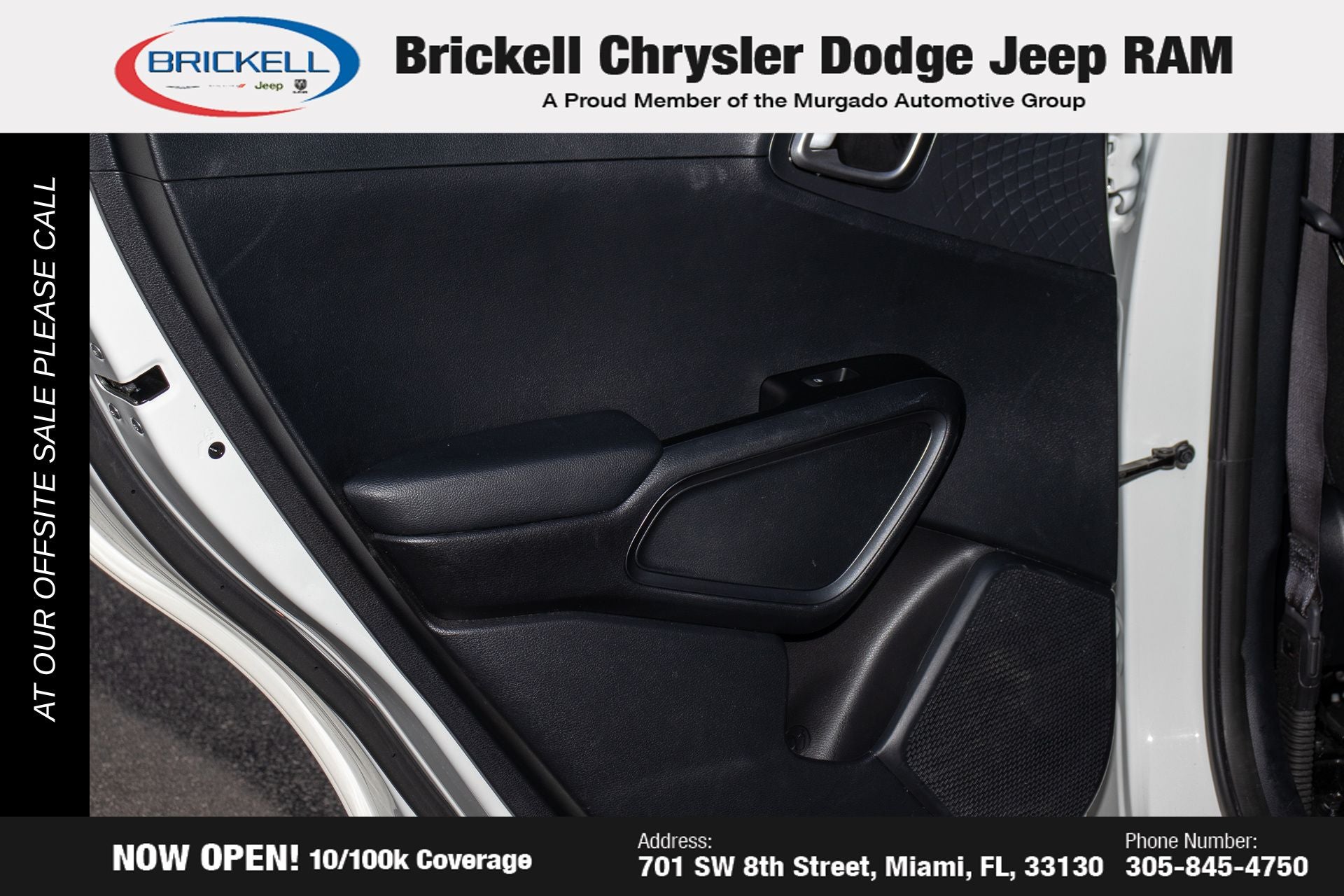 At Brickell CDJR, we make buying a pre-owned vehicle easy and stress-free. Every pre-owned vehicle is thoroughly inspected to ensure quality and reliability. For added confidence, we include a **10-year/100,000-mile powertrain warranty on all non-European brands** at no additional cost. Our dealership offers one of the largest selections of pre-owned inventory in the region, so you can find the right car, truck, or SUV for your needs. Our state-of-the-art service department, the largest in the country, is open seven days a week from 7 AM to 9 PM, ensuring your vehicle stays in top condition. Visit us at 701 SW 8th St, Miami, FL 33130, or call 305-777-2800 to learn more and schedule a test drive. The displayed price includes an incentive for financing with Brickell CDJR Finance Company. Price does not included our Perma-Plate .Outside financing and bank drafts are not accepted. All pre-owned vehicle exports are subject to an export fee. Taxes, title, registration, and dealer fees apply.