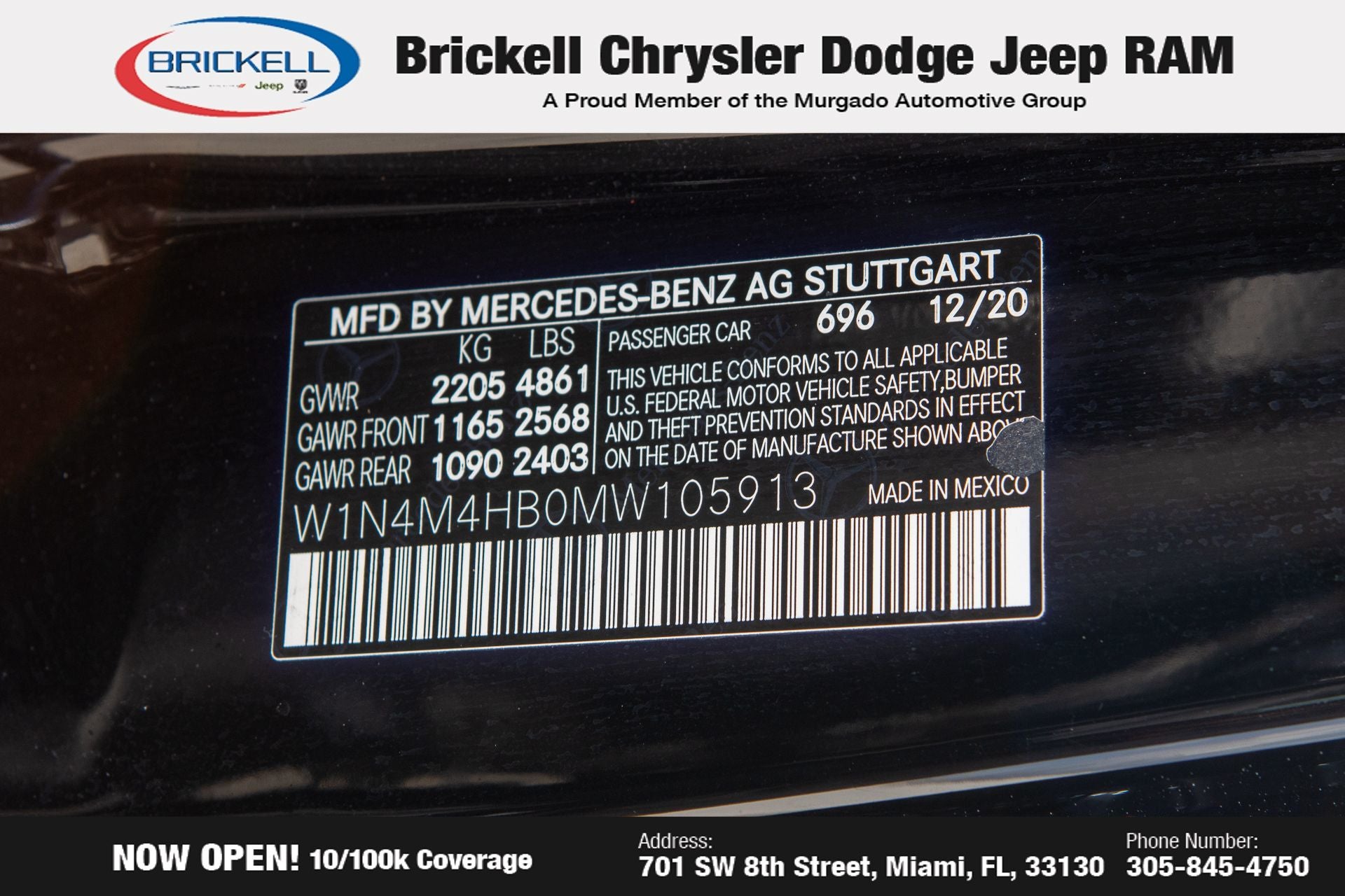 At Brickell CDJR, we make buying a pre-owned vehicle easy and stress-free. Every pre-owned vehicle is thoroughly inspected to ensure quality and reliability. For added confidence, we include a **10-year/100,000-mile powertrain warranty on all non-European brands** at no additional cost. Our dealership offers one of the largest selections of pre-owned inventory in the region, so you can find the right car, truck, or SUV for your needs. Our state-of-the-art service department, the largest in the country, is open seven days a week from 7 AM to 9 PM, ensuring your vehicle stays in top condition. Visit us at 701 SW 8th St, Miami, FL 33130, or call 305-777-2800 to learn more and schedule a test drive. The displayed price includes an incentive for financing with Brickell CDJR Finance Company. Price does not included our Perma-Plate .Outside financing and bank drafts are not accepted. All pre-owned vehicle exports are subject to an export fee. Taxes, title, registration, and dealer fees apply.
