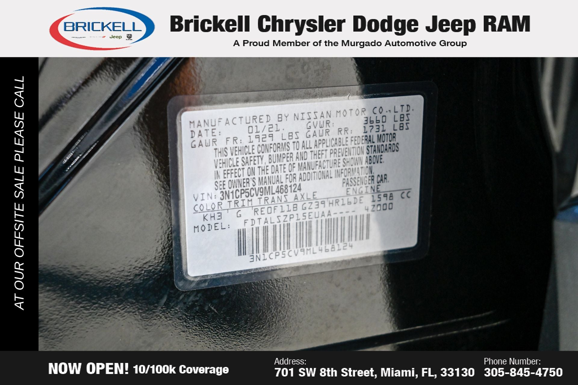 At Brickell CDJR, we are committed to providing our customers with a stress-free and enjoyable car-buying experience. Every pre-owned vehicle in our inventory, including this 2021 Nissan Kicks SV, undergoes a thorough inspection to ensure quality and reliability. For added peace of mind, we include a 10-year/100,000-mile powertrain warranty on all non-European brands at no additional cost.