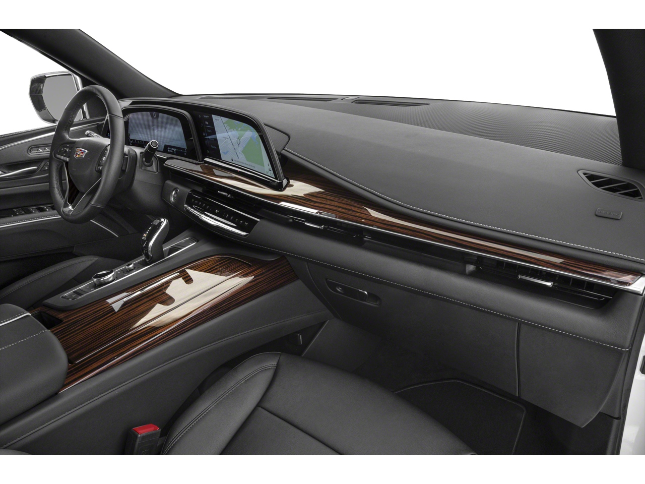 Apple Carplay/Android Auto, Bluetooth® Connectivity, Rear Seat Entertainment, 16.9 Diagonal OLED Infotainment Screen, 19 Speakers, 2-Presets Memory For Driver Seat Adjuster, 3.23 Axle Ratio, 3rd row seats: split-bench, 4-Wheel Disc Brakes, 8-Way Power Driver Seat Adjuster, 8-Way Power Front Passenger Seat Adjuster, ABS brakes, Adaptive Cruise Control, Air Conditioning, AKG Studio 19-Speaker Audio System, Alloy wheels, AM/FM radio: SiriusXM with 360L, Apple CarPlay/Android Auto, Audio memory, Auto High-beam Headlights, Auto tilt-away steering wheel, Auto-dimming door mirrors, Auto-dimming Rear-View mirror, Automatic Seat Belt Tightening, Automatic Stop/Start, Automatic temperature control, Brake assist, Bumpers: body-color, Compass, Delay-off headlights, Door Lock & Latch Shields, Driver door bin, Driver vanity mirror, Dual front impact airbags, Dual front side impact airbags, Electronic Stability Control, Emergency communication system: OnStar and Cadillac connected services capable, Enhanced Automatic Emergency Braking, Enhanced Automatic Parking Assist, Four wheel independent suspension, Front anti-roll bar, Front Bucket Seats, Front Center Armrest w/Storage, Front dual zone A/C, Front reading lights, Fully automatic headlights, Garage door transmitter, Glass Breakage Sensor, HD Radio, Heads-Up Display, Heated & Ventilated Driver & Front Passenger Seats, Heated door mirrors, Heated Driver & Front Passenger Seats, Heated front seats, Heated rear seats, Heated steering wheel, Illuminated entry, Lane Change Alert w/Side Blind Zone Alert, Leather Seating Surfaces w/Mini-Chevron Perf Inserts, Leather steering wheel, Low tire pressure warning, Mechanical Limited-Slip Differential, Memory seat, Navigation System, Not Equipped w/4-Way Driver & Fr Pass Pwr Lumbar, Not Equipped w/Steering Column Lock, Occupant sensing airbag, Outside temperature display, Overhead airbag, Overhead console, Panic alarm, Passenger door bin, Passenger vanity mirror, Power door mirrors, Power driver seat, Power Liftgate, Power moonroof, Power Panoramic Tilt-Sliding Sunroof, Power passenger seat, Power steering, Power windows, Preferred Equipment Group 1SB, Premium Smooth Ride Suspension, Radio data system, Radio: AM/FM/SiriusXM w/Navigation, Rain sensing wipers, Rear air conditioning, Rear anti-roll bar, Rear Camera Mirror, Rear Camera Mirror Washer, Rear Cross Traffic Alert, Rear reading lights, Rear window defroster, Rear window wiper, Reconfigurable Full-Color Head-Up Display, Remote keyless entry, Reverse Automatic Braking, Roof rack: rails only, Running Board Assist Steps, Security system, SiriusXM w/360L, Speed control, Split folding rear seat, Spoiler, Start/Stop System Disable Button, Steering wheel memory, Steering wheel mounted audio controls, Super Cruise, Tachometer, Teen Driver, Telescoping steering wheel, Theft-Deterrent Alarm System, Tilt steering wheel, Traction control, Trip computer, Turn signal indicator mirrors, Variably intermittent wipers, Vehicle Inclination Sensor, Vehicle Interior Movement Sensor, Ventilated front seats, Voltmeter, Wheels: 22 14-Spoke Alloy w/Polished Finish, Wireless Apple CarPlay/Wireless Android Auto. 14/19 City/Highway MPG