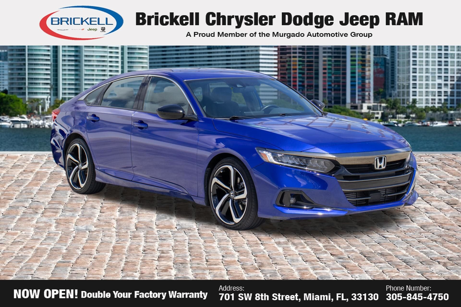 At Brickell CDJR, we make buying a pre-owned vehicle easy and stress-free. Every pre-owned vehicle is thoroughly inspected to ensure quality and reliability. For added confidence, we include a **10-year/100,000-mile powertrain warranty on all non-European brands** at no additional cost. Our dealership offers one of the largest selections of pre-owned inventory in the region, so you can find the right car, truck, or SUV for your needs. Our state-of-the-art service department, the largest in the country, is open seven days a week from 7 AM to 9 PM, ensuring your vehicle stays in top condition. Visit us at 701 SW 8th St, Miami, FL 33130, or call 305-777-2800 to learn more and schedule a test drive. The displayed price includes an incentive for financing with Brickell CDJR Finance Company. Price does not included our Perma-Plate .Outside financing and bank drafts are not accepted. All pre-owned vehicle exports are subject to an export fee. Taxes, title, registration, and dealer fees apply.