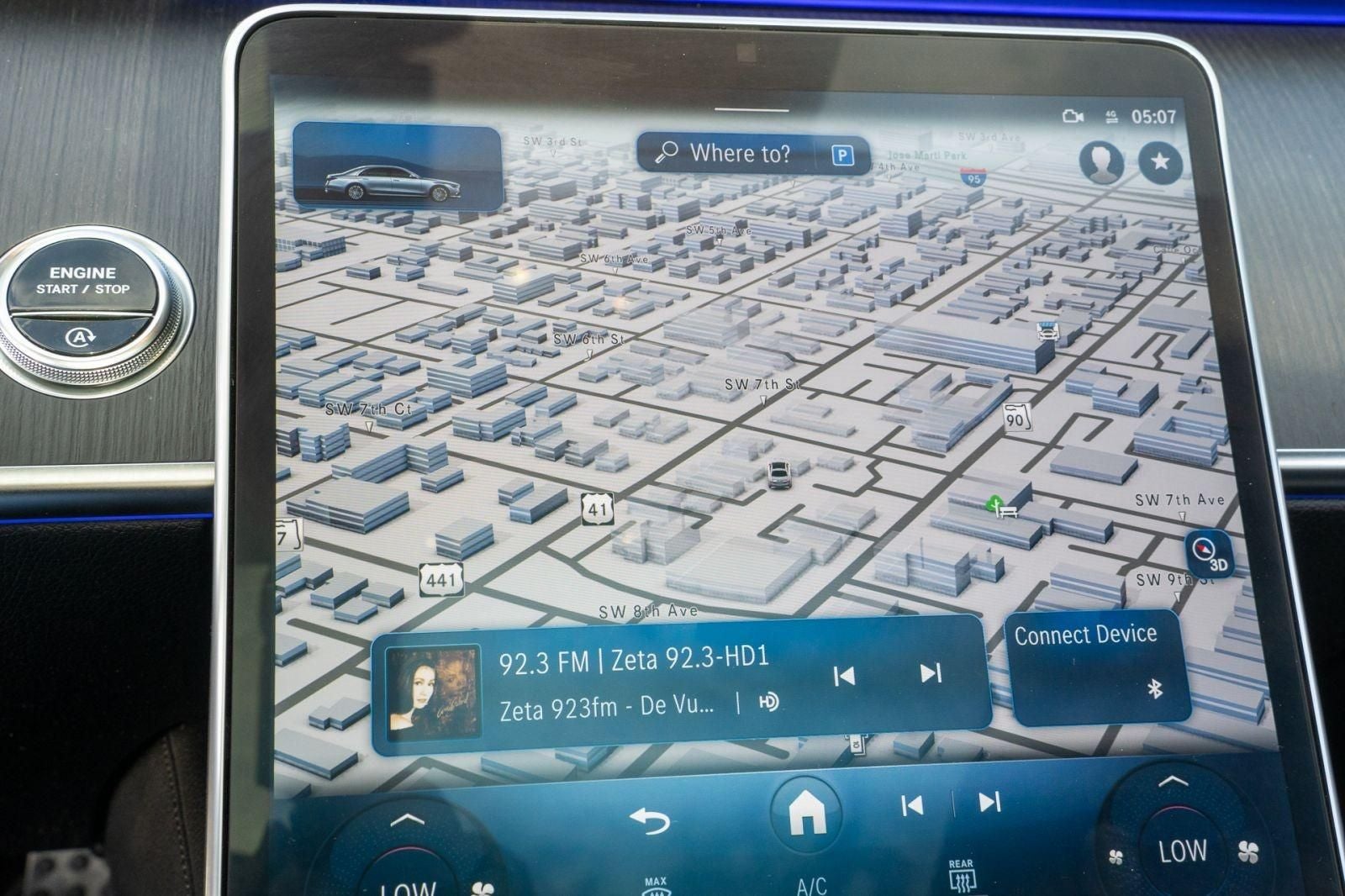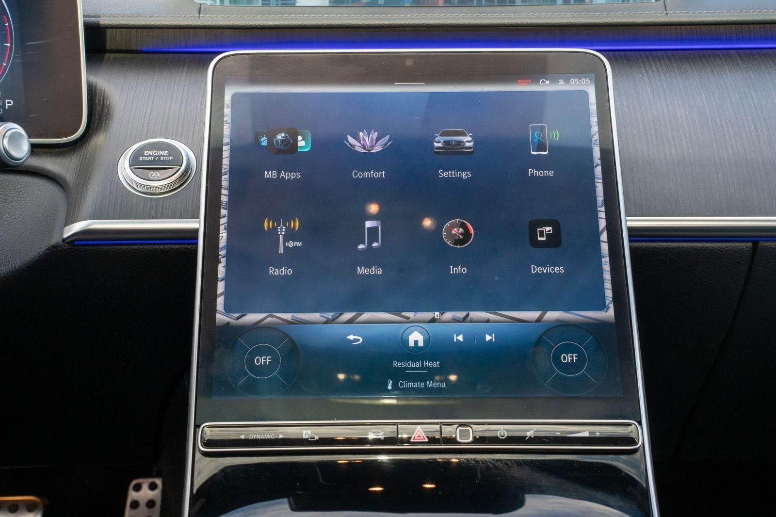 - Radio: MBUX w/Navigation -inc: 12.8" OLED touch screen, Hey Mercedes voice control, augmented video for navigation, wireless front charging, wireless smartphone integration (Apple CarPlay, Android Auto) and online music streaming
