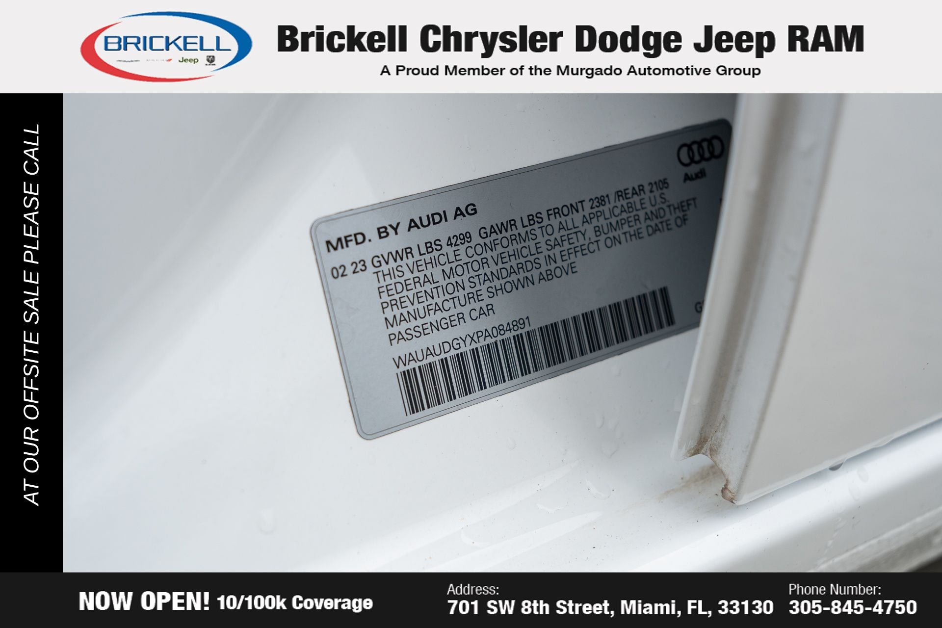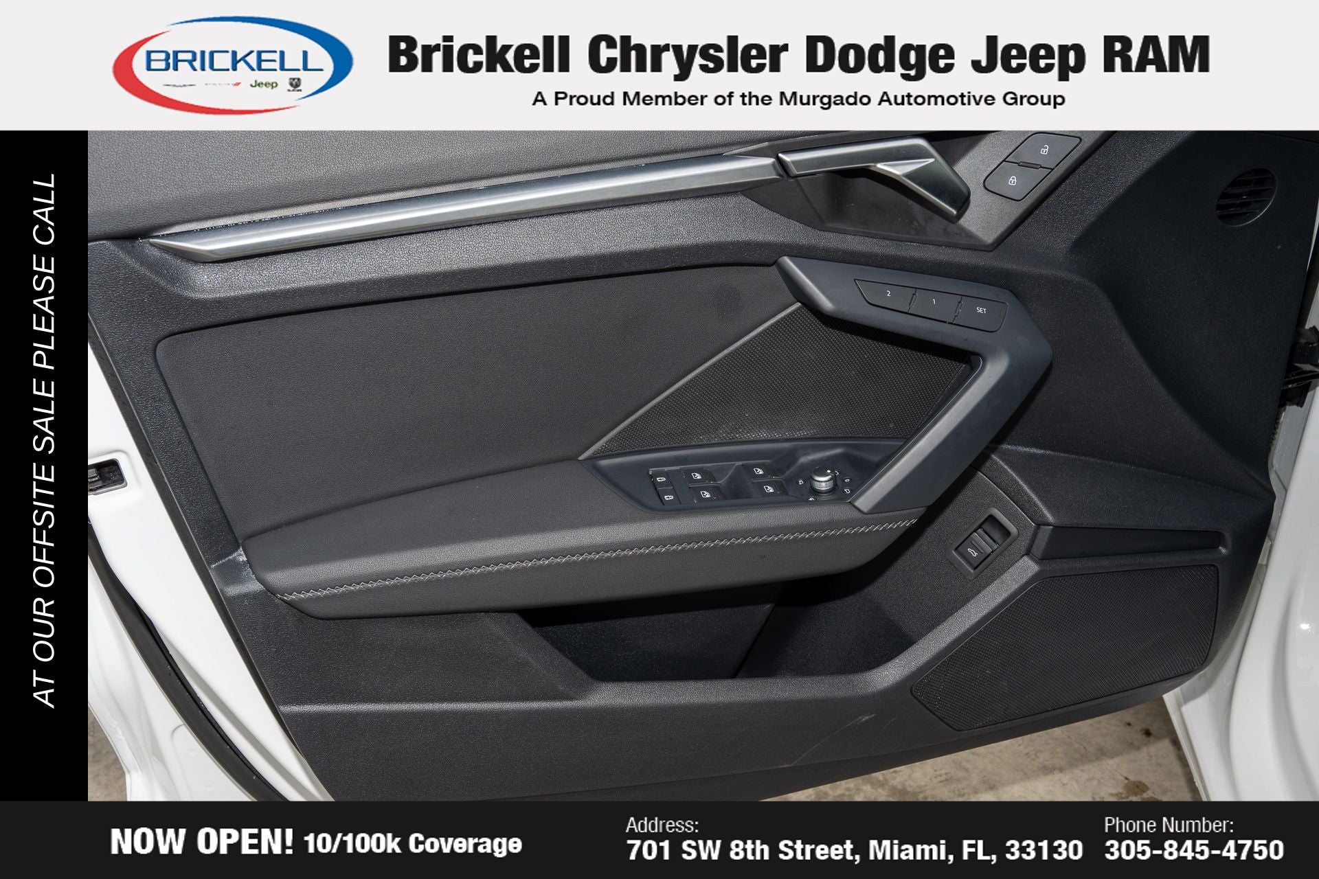 At Brickell CDJR, we make buying a pre-owned vehicle easy and stress-free. Every pre-owned vehicle is thoroughly inspected to ensure quality and reliability. For added confidence, we include a **10-year/100,000-mile powertrain warranty on all non-European brands** at no additional cost. Our dealership offers one of the largest selections of pre-owned inventory in the region, so you can find the right car, truck, or SUV for your needs. Our state-of-the-art service department, the largest in the country, is open seven days a week from 7 AM to 9 PM, ensuring your vehicle stays in top condition. Visit us at 701 SW 8th St, Miami, FL 33130, or call 305-777-2800 to learn more and schedule a test drive. The displayed price includes an incentive for financing with Brickell CDJR Finance Company. Price does not included our Perma-Plate .Outside financing and bank drafts are not accepted. All pre-owned vehicle exports are subject to an export fee. Taxes, title, registration, and dealer fees apply.