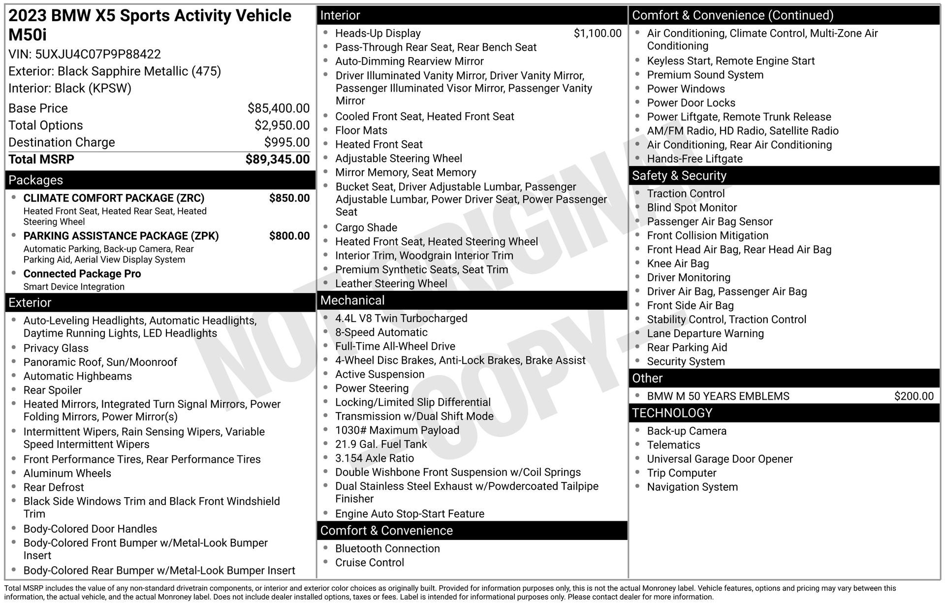Clean CARFAX. 2023 BMW X5 M50i M50i One Owner W/ Clean CARFAX Dealership Brickell Mazda. One Owner W/ Clean CARFAX. Black Sapphire Metallic 4.4L V8 DOHC 32V Twin Turbocharged 8-Speed Automatic Sport 16/22 City/Highway MPG AWD