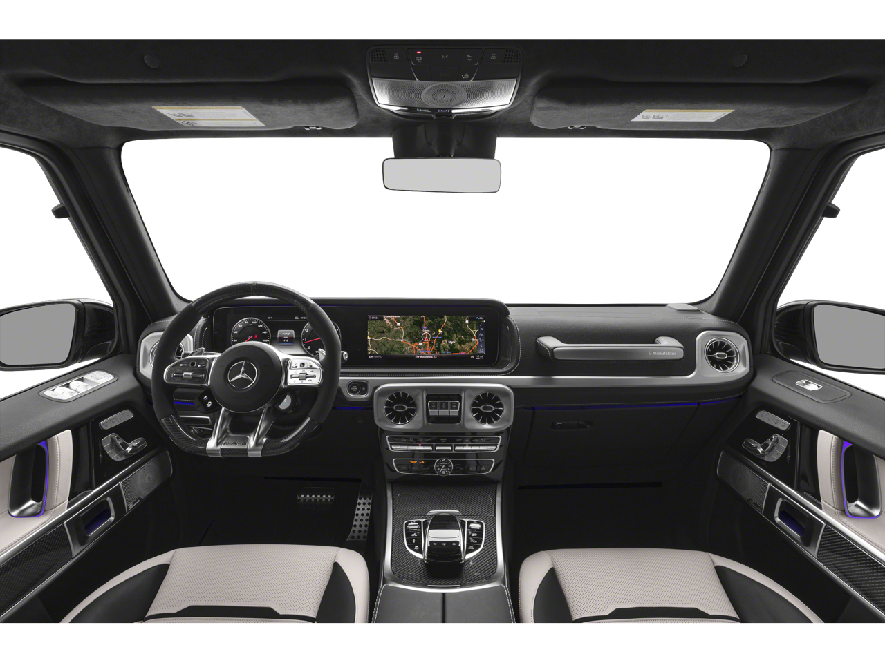 Stepping inside, you'll be enveloped in a world of refined luxury. The G manufaktur Interior Package Plus elevates the cabin with premium Nappa leather, genuine wood accents, and a Burmester® surround sound system that will transport you to a new level of audio bliss. The AMG® Night Package adds a touch of menacing style with its Obsidian Black exterior details, while the adaptive suspension ensures a smooth and composed ride, no matter the terrain.