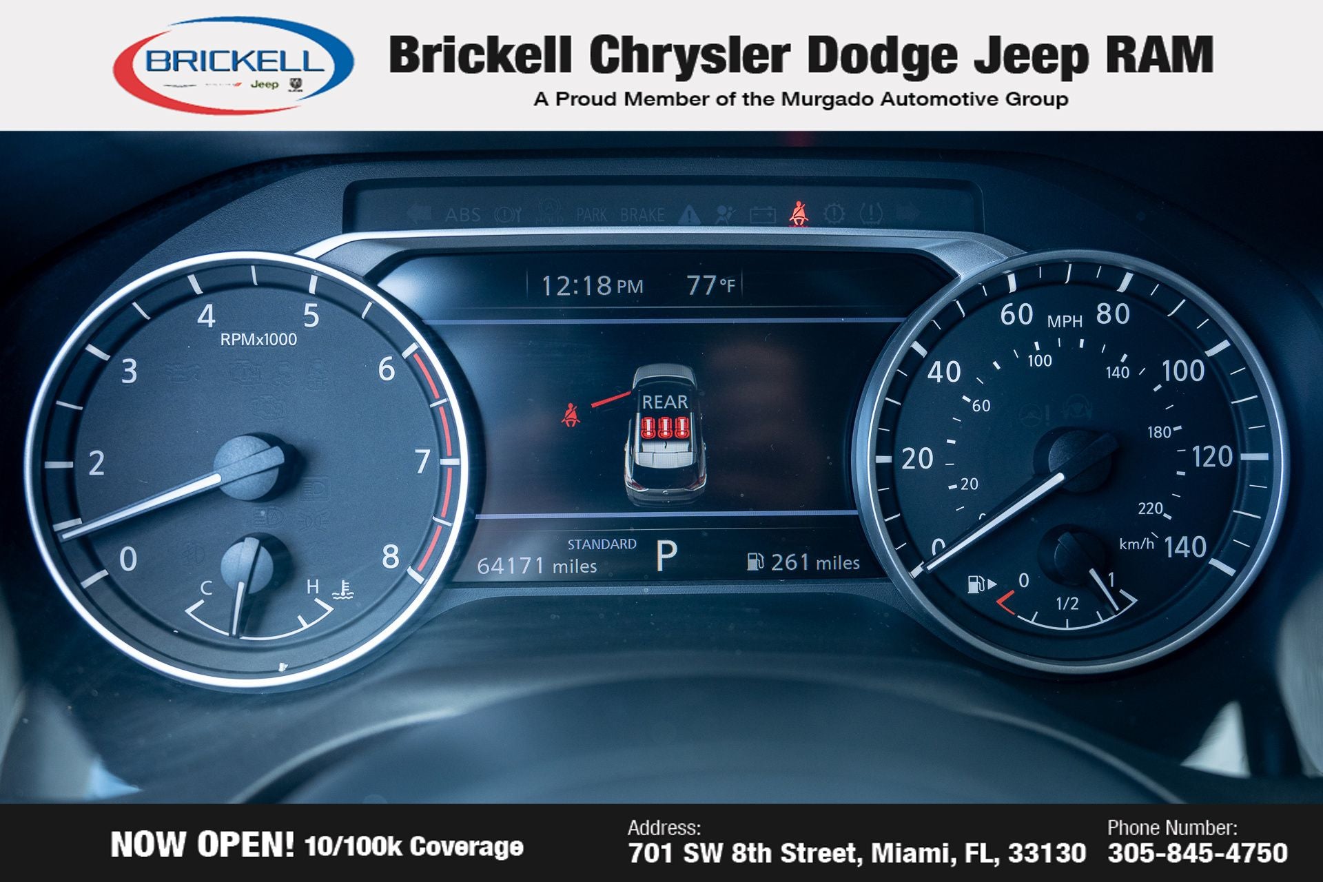 At Brickell CDJR, we make buying a pre-owned vehicle easy and stress-free. Every pre-owned vehicle is thoroughly inspected to ensure quality and reliability. For added confidence, we include a **10-year/100,000-mile powertrain warranty on all non-European brands** at no additional cost. Our dealership offers one of the largest selections of pre-owned inventory in the region, so you can find the right car, truck, or SUV for your needs. Our state-of-the-art service department, the largest in the country, is open seven days a week from 7 AM to 9 PM, ensuring your vehicle stays in top condition. Visit us at 701 SW 8th St, Miami, FL 33130, or call 305-777-2800 to learn more and schedule a test drive. The displayed price includes an incentive for financing with Brickell CDJR Finance Company. Price does not included our Perma-Plate .Outside financing and bank drafts are not accepted. All pre-owned vehicle exports are subject to an export fee. Taxes, title, registration, and dealer fees apply.