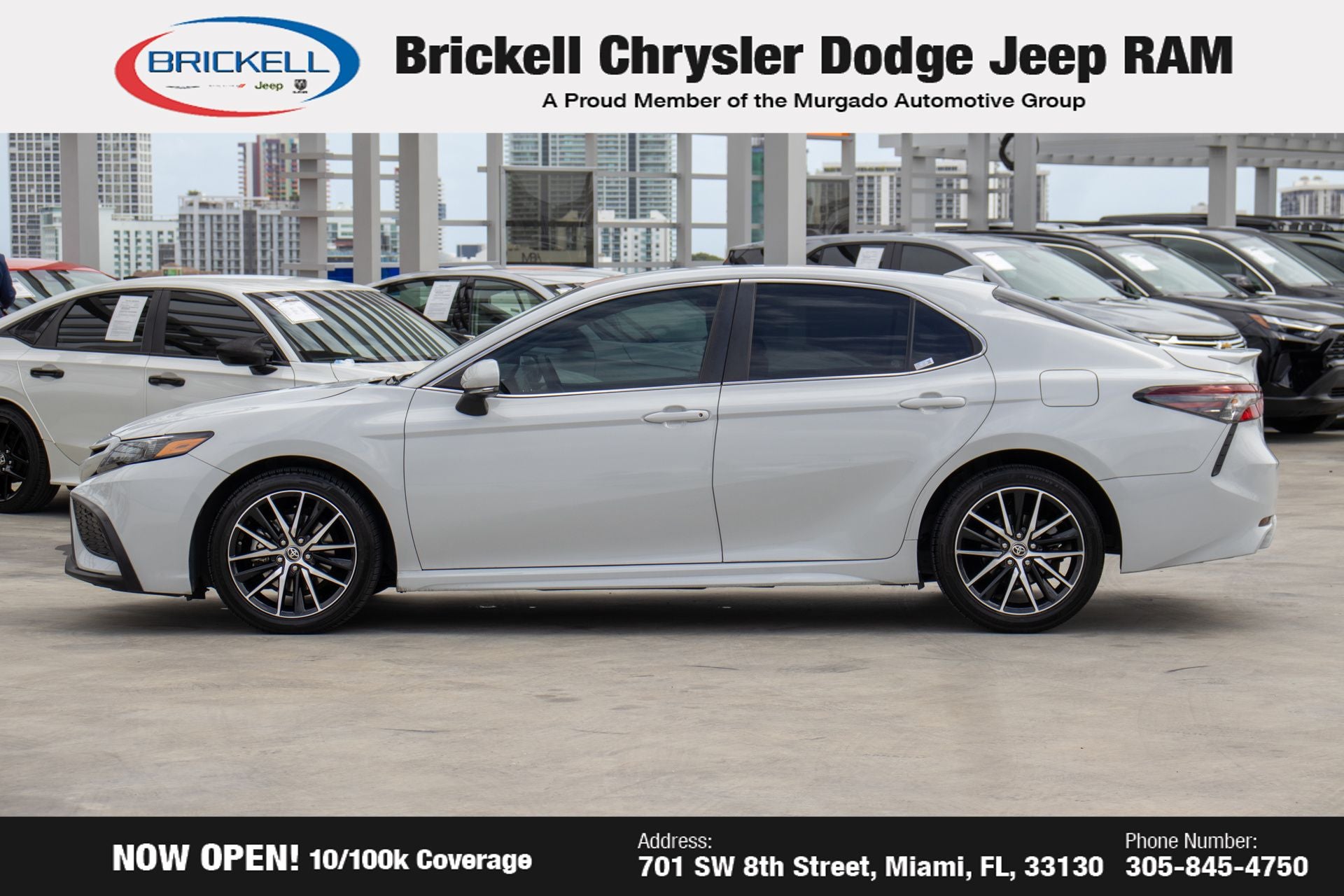 At Brickell CDJR, we make buying a pre-owned vehicle easy and stress-free. Every pre-owned vehicle is thoroughly inspected to ensure quality and reliability. For added confidence, we include a **10-year/100,000-mile powertrain warranty on all non-European brands** at no additional cost. Our dealership offers one of the largest selections of pre-owned inventory in the region, so you can find the right car, truck, or SUV for your needs. Our state-of-the-art service department, the largest in the country, is open seven days a week from 7 AM to 9 PM, ensuring your vehicle stays in top condition. Visit us at 701 SW 8th St, Miami, FL 33130, or call 305-777-2800 to learn more and schedule a test drive. The displayed price includes an incentive for financing with Brickell CDJR Finance Company. Price does not included our Perma-Plate .Outside financing and bank drafts are not accepted. All pre-owned vehicle exports are subject to an export fee. Taxes, title, registration, and dealer fees apply.