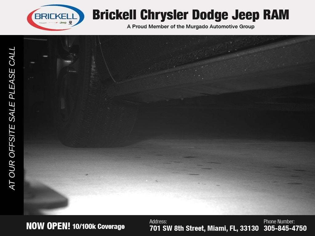 At Brickell CDJR, we make buying a pre-owned vehicle easy and stress-free. Every pre-owned vehicle is thoroughly inspected to ensure quality and reliability. For added confidence, we include a **10-year/100,000-mile powertrain warranty on all non-European brands** at no additional cost. Our dealership offers one of the largest selections of pre-owned inventory in the region, so you can find the right car, truck, or SUV for your needs. Our state-of-the-art service department, the largest in the country, is open seven days a week from 7 AM to 9 PM, ensuring your vehicle stays in top condition. Visit us at 701 SW 8th St, Miami, FL 33130, or call 305-777-2800 to learn more and schedule a test drive. The displayed price includes an incentive for financing with Brickell CDJR Finance Company. Price does not included our Perma-Plate .Outside financing and bank drafts are not accepted. All pre-owned vehicle exports are subject to an export fee. Taxes, title, registration, and dealer fees apply.