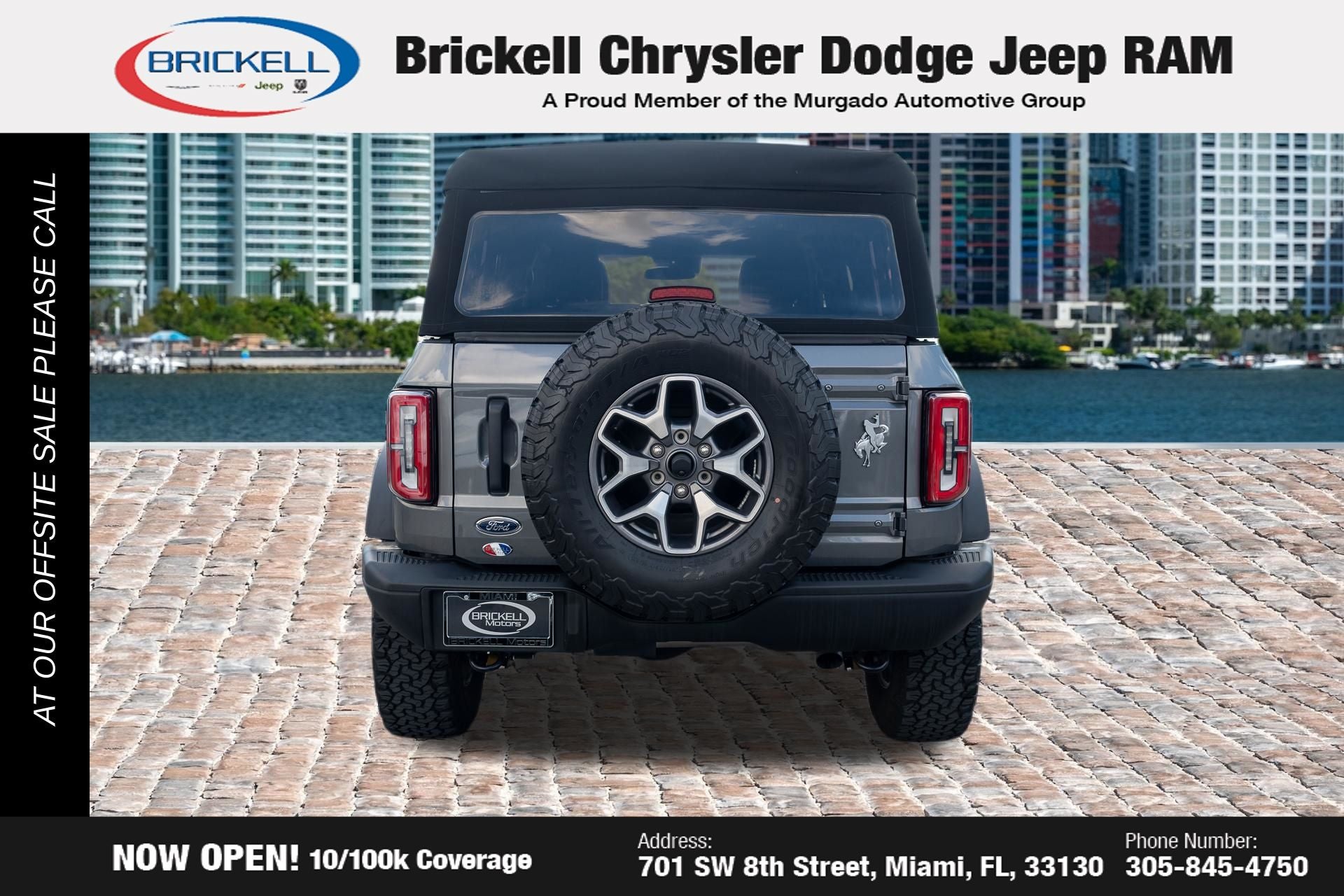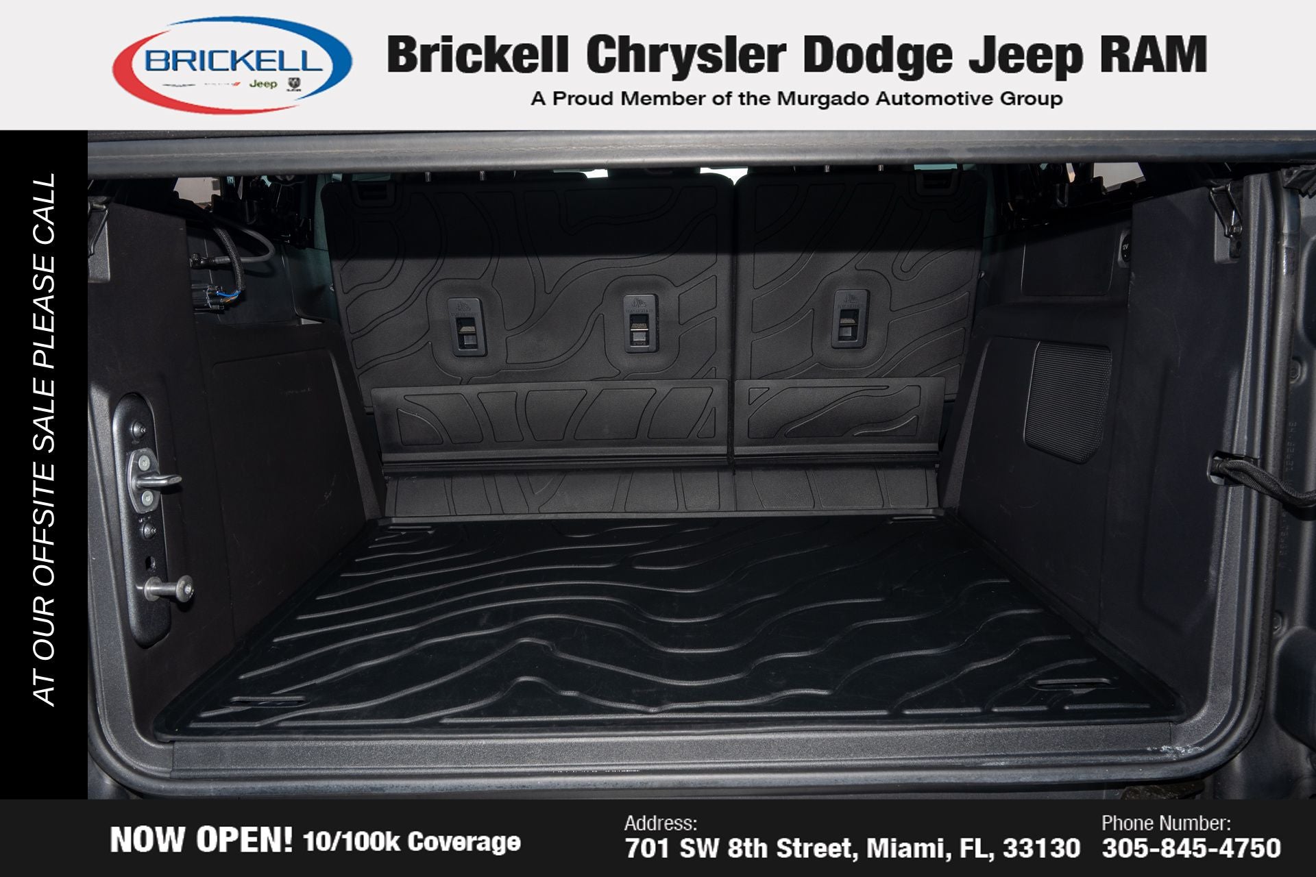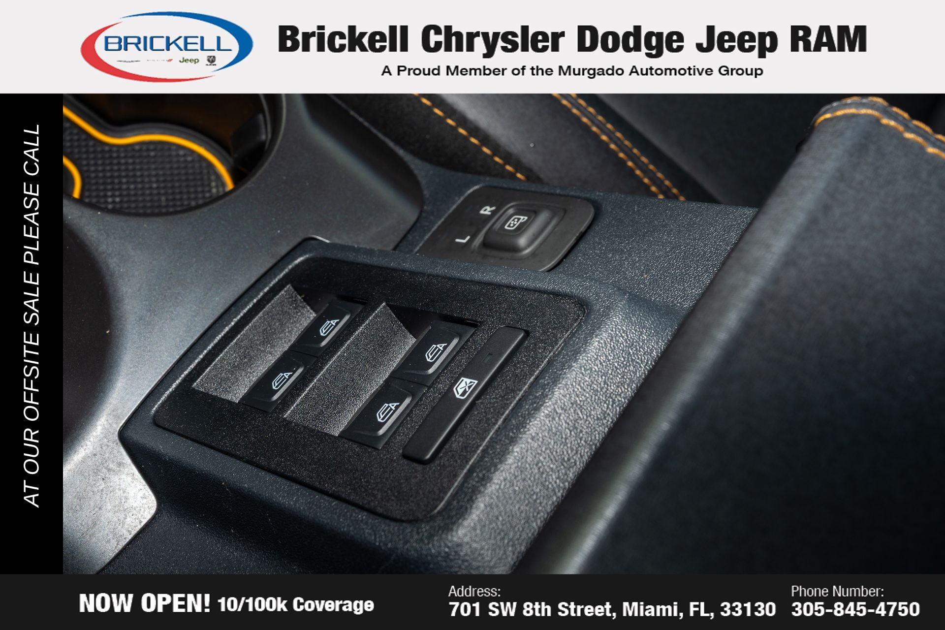 At Brickell CDJR, we make buying a pre-owned vehicle easy and stress-free. Every pre-owned vehicle is thoroughly inspected to ensure quality and reliability. For added confidence, we include a **10-year/100,000-mile powertrain warranty on all non-European brands** at no additional cost. Our dealership offers one of the largest selections of pre-owned inventory in the region, so you can find the right car, truck, or SUV for your needs. Our state-of-the-art service department, the largest in the country, is open seven days a week from 7 AM to 9 PM, ensuring your vehicle stays in top condition. Visit us at 701 SW 8th St, Miami, FL 33130, or call 305-777-2800 to learn more and schedule a test drive. The displayed price includes an incentive for financing with Brickell CDJR Finance Company. Price does not included our Perma-Plate .Outside financing and bank drafts are not accepted. All pre-owned vehicle exports are subject to an export fee. Taxes, title, registration, and dealer fees apply.