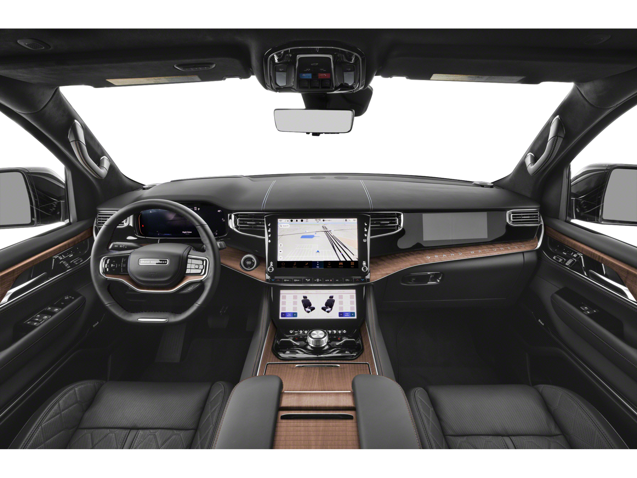 Apple Carplay/Android Auto, Bluetooth® Connectivity, Rear Seat Entertainment, 3.92 Rear Axle Ratio, 3rd row seats: bench, 4-Wheel Disc Brakes, ABS brakes, Adjustable pedals, Air Conditioning, Alloy wheels, AM/FM radio: SiriusXM with 360L, Amazon Fire TV Built-In, Anti-whiplash front head restraints, Apple CarPlay/Android Auto, Audio memory, Auto High-beam Headlights, Auto-dimming door mirrors, Auto-dimming Rear-View mirror, Auto-leveling suspension, Automatic temperature control, Black Interior Accents, Black Roof, Body Color Roof w/PXJ, Brake assist, Bumpers: body-color, Compass, Delay-off headlights, Driver door bin, Driver vanity mirror, Driver's Seat Mounted Armrest, Dual front impact airbags, Dual front side impact airbags, Electronic Stability Control, Emergency communication system: Wagoneer Connect, Four wheel independent suspension, Front anti-roll bar, Front Bucket Seats, Front Center Armrest w/Storage, Front dual zone A/C, Front fog lights, Front reading lights, Fully automatic headlights, Garage door transmitter, Genuine wood console insert, Genuine wood dashboard insert, Genuine wood door panel insert, Gloss Black Upper & Lower DLO Molding, HD Trailer Tow Package, Heads-Up Display, Heated door mirrors, Heated front seats, Heated rear seats, Heated steering wheel, Heavy-Duty Engine Cooling, Illuminated entry, Knee airbag, Leather steering wheel, Low tire pressure warning, Memory seat, Navigation System, Night vision lights, Normal Duty Suspension, Obsidian Appearance Package, Occupant sensing airbag, Outside temperature display, Overhead airbag, Overhead console, Panic alarm, Passenger door bin, Passenger seat mounted armrest, Passenger vanity mirror, Pedal memory, Piano Black Exterior Accents, Power adjustable front head restraints, Power door mirrors, Power driver seat, Power Liftgate, Power moonroof, Power passenger seat, Power steering, Power windows, Premium Leather Trimmed Bucket Seats, Quick Order Package 28T Obsidian, Radio data system, Radio: Uconnect 5 Nav w/12.0 Display, Rain sensing wipers, Rear air conditioning, Rear anti-roll bar, Rear dual zone A/C, Rear reading lights, Rear seat center armrest, Rear Seat Video Group 1, Rear window defroster, Rear window wiper, Reclining 3rd row seat, Remote keyless entry, Removable Rear Tow Hook, Roof rack, Seatback Video Screens, Security system, Speed control, Speed-sensing steering, Speed-Sensitive Wipers, Split folding rear seat, Steering wheel memory, Steering wheel mounted audio controls, Tachometer, Telescoping steering wheel, Tilt steering wheel, Traction control, Trailer Brake Control, Trailer Hitch Zoom, Trip computer, Turn signal indicator mirrors, Two Tone Paint Group, Variably intermittent wipers, Ventilated front seats, Ventilated rear seats, Video USB Port, Voltmeter, Wheels: 22 x 9.0 Premium 4 Aluminum, Wheels: 22 x 9.0 Tinted Polished w/Black Insert. 14/20 City/Highway MPG