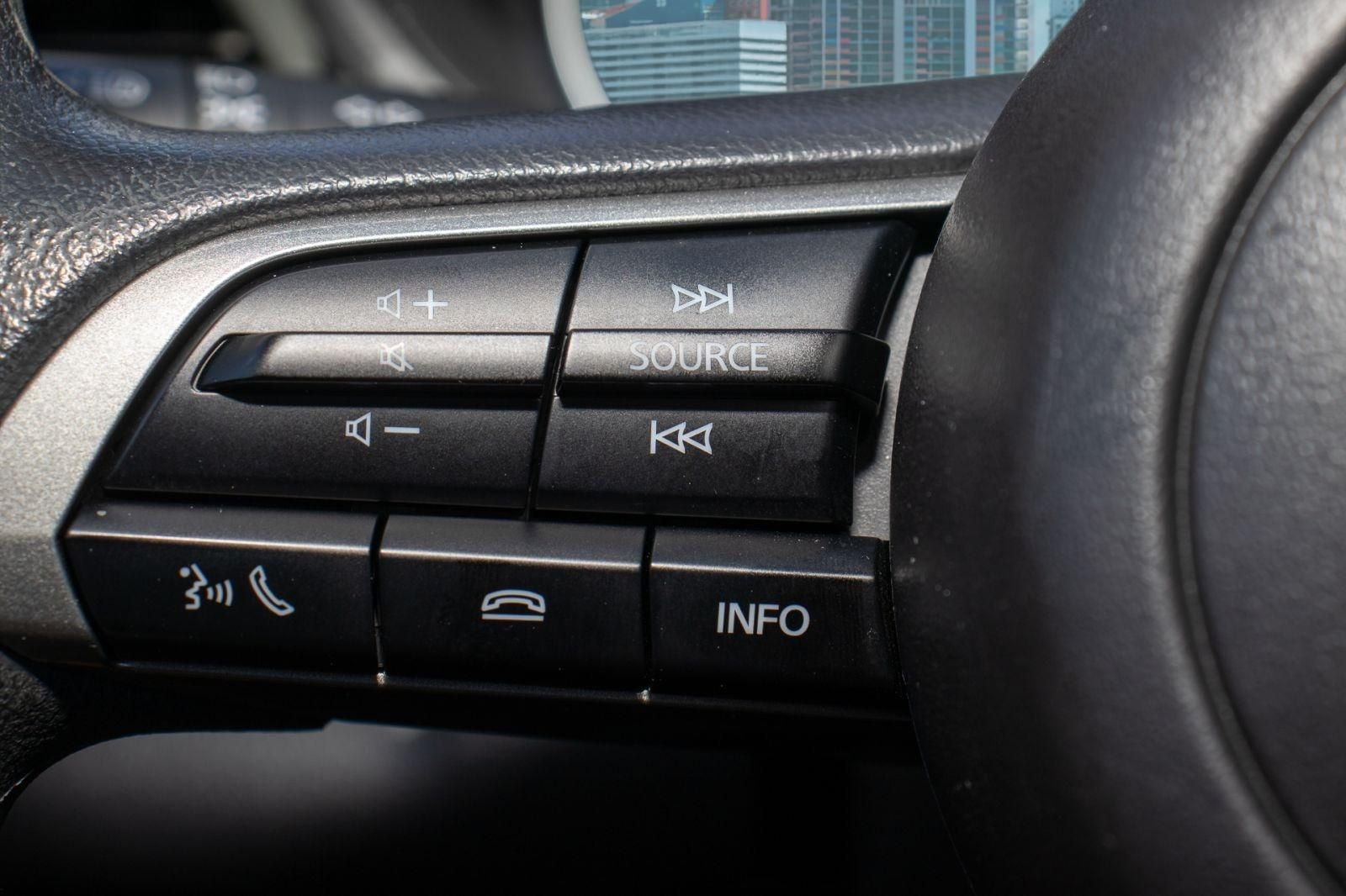 - Radio: AM/FM Audio System -inc: 6-speakers w/Mazda Harmonic Acoustics, 8.8" full-color center display, Apple CarPlay/Android Auto integration (wired), Bluetooth® hands-free phone and audio capability, USB Type-C audio inputs (2 ports) and steering wheel-mounted audio controls