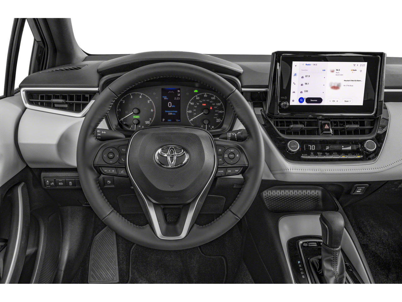 Corolla Hybrid SE, 4D Sedan, 1.8L DOHC 16V VVT, CVT, FWD, Underground, Black w/SofTex Seat Trim, 4-Wheel Disc Brakes, 6 Speakers, ABS brakes, Air Conditioning, AM/FM radio: SiriusXM, Auto High-beam Headlights, Automatic temperature control, Brake assist, Bumpers: body-color, Delay-off headlights, Driver door bin, Driver vanity mirror, Dual front impact airbags, Dual front side impact airbags, Electronic Stability Control, Emergency communication system: Safety Connect (up to 10-year trial subscription), Exterior Parking Camera Rear, Four wheel independent suspension, Front anti-roll bar, Front Bucket Seats, Front Center Armrest, Front reading lights, Fully automatic headlights, Illuminated entry, Knee airbag, Low tire pressure warning, Occupant sensing airbag, Outside temperature display, Overhead airbag, Panic alarm, Passenger door bin, Passenger vanity mirror, Power door mirrors, Power steering, Power windows, Radio data system, Radio: 8 Toyota Audio Multimedia, Rear anti-roll bar, Rear seat center armrest, Rear side impact airbag, Rear window defroster, Remote keyless entry, Speed control, Split folding rear seat, Steering wheel mounted audio controls, Tachometer, Telescoping steering wheel, Tilt steering wheel, Traction control, Trip computer, Variably intermittent wipers, Corolla Hybrid SE, 4D Sedan, 1.8L DOHC 16V VVT, CVT, FWD, Underground, Black w/SofTex Seat Trim.