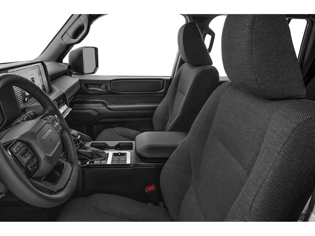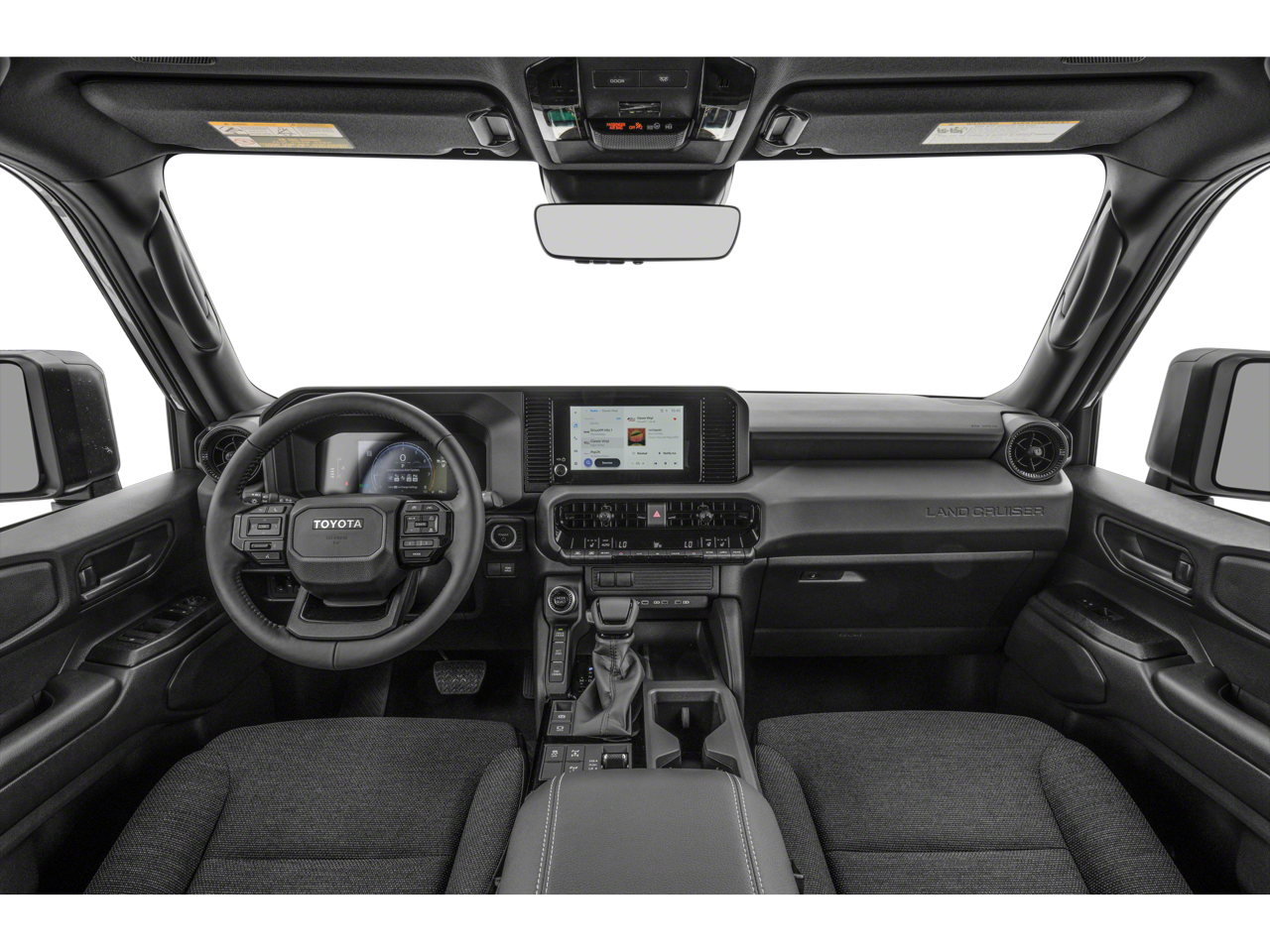 Inside, the Land Cruiser offers a spacious and well-appointed cabin, with comfortable front bucket seats, a split-folding rear seat, and a leather-wrapped steering wheel and shift knob. Convenience features like the auto-dimming rearview mirror, HomeLink garage door opener, and Apple CarPlay/Android Auto integration make every journey more enjoyable.