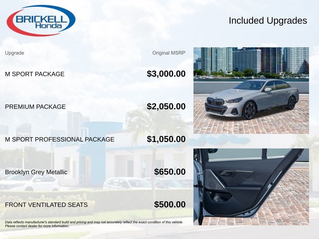 530i, 4D Sedan, 2.0L 4-Cylinder, 8-Speed Automatic, RWD, Brooklyn Grey Metallic, Black Premium Synthetic, 12 Speakers, 4-Wheel Disc Brakes, ABS brakes, Air Conditioning, Alloy wheels, AM/FM radio: SiriusXM, Apple CarPlay & Android Auto Compatibility, Auto tilt-away steering wheel, Auto-dimming door mirrors, Auto-dimming Rear-View mirror, Automatic temperature control, BMW Assist eCall, BMW Curved Display w/HUD, BMW Iconic Glow Kidney Grille, BMW TeleServices, Brake assist, Bumpers: body-color, Connected Package Pro, ConnectedDrive Services, Delay-off headlights, Driver door bin, Driver vanity mirror, Dual front impact airbags, Dual front side impact airbags, Electronic Stability Control, Emergency communication system: BMW Assist eCall, Extended Shadowline Trim, Exterior Parking Camera Rear, Four wheel independent suspension, Front anti-roll bar, Front Bucket Seats, Front Center Armrest, Front dual zone A/C, Front reading lights, Front Ventilated Seats, Full LED Lights w/Cornering Lights, Fully automatic headlights, Garage door transmitter, Genuine wood dashboard insert, Genuine wood door panel insert, harman/kardon® Logic 7® Digital Surround, harman/kardon® Speakers, Head restraints memory, Heated door mirrors, Heated Front Seats, Heated front seats, Heated Steering Wheel, Illuminated entry, Interior Camera, Leather steering wheel, Low tire pressure warning, Lumbar Support, M Shadowline Lights, M Sport Brakes w/Blue Calipers, M Sport Brakes w/Red Calipers, M Sport Content, M Sport Exterior Elements, M Sport Interior Elements, M Sport Package, M Sport Package Pro, M Sport Pkg, M Sport Pro Contents, M Sport Professional Package, M Sport Suspension, M Steering Wheel, Memory seat, Natural Interaction, Navigation, Navigation System, Occupant sensing airbag, Outside temperature display, Overhead airbag, Panic alarm, Parking Assistant Plus, Passenger door bin, Passenger vanity mirror, Perforated & Quilted Veganza Upholstery, Personal eSIM 5G, Power adjustable front head restraints, Power door mirrors, Power driver seat, Power Front Seats, Power moonroof, Power passenger seat, Power steering, Power windows, Premium Content 1, Premium Package, Radio data system, Radio: AM/FM Audio System, Rain sensing wipers, Rear anti-roll bar, Rear reading lights, Rear seat center armrest, Rear Spoiler, Rear window defroster, Remote Engine Start, Remote keyless entry, Security system, Shadowline Exterior Trim, SiriusXM Satellite Radio w/1 Year Subscription, Speed control, Speed-sensing steering, Speed-Sensitive Wipers, Split folding rear seat, Sport Seats, Steering wheel memory, Steering wheel mounted audio controls, Tachometer, Telescoping steering wheel, Tilt steering wheel, Traction control, Trip computer, Turn signal indicator mirrors, Variably intermittent wipers, Wheels: 19 x 8.5 M Dual-Spoke Bicolor Black, Wheels: 19 x 8.5 Triplex-Spoke Silver, Wireless Device Charging, 530i, 4D Sedan, 2.0L 4-Cylinder, 8-Speed Automatic, RWD, Brooklyn Grey Metallic, Black Premium Synthetic.