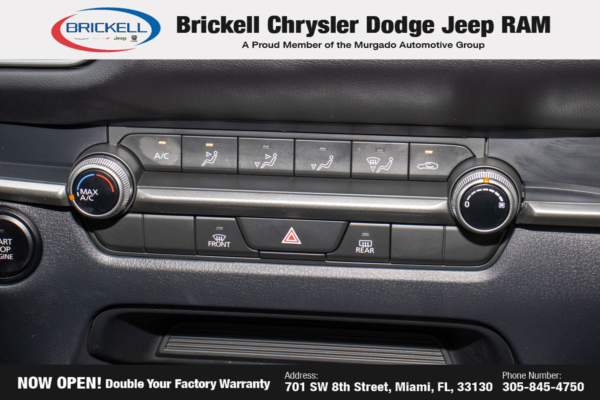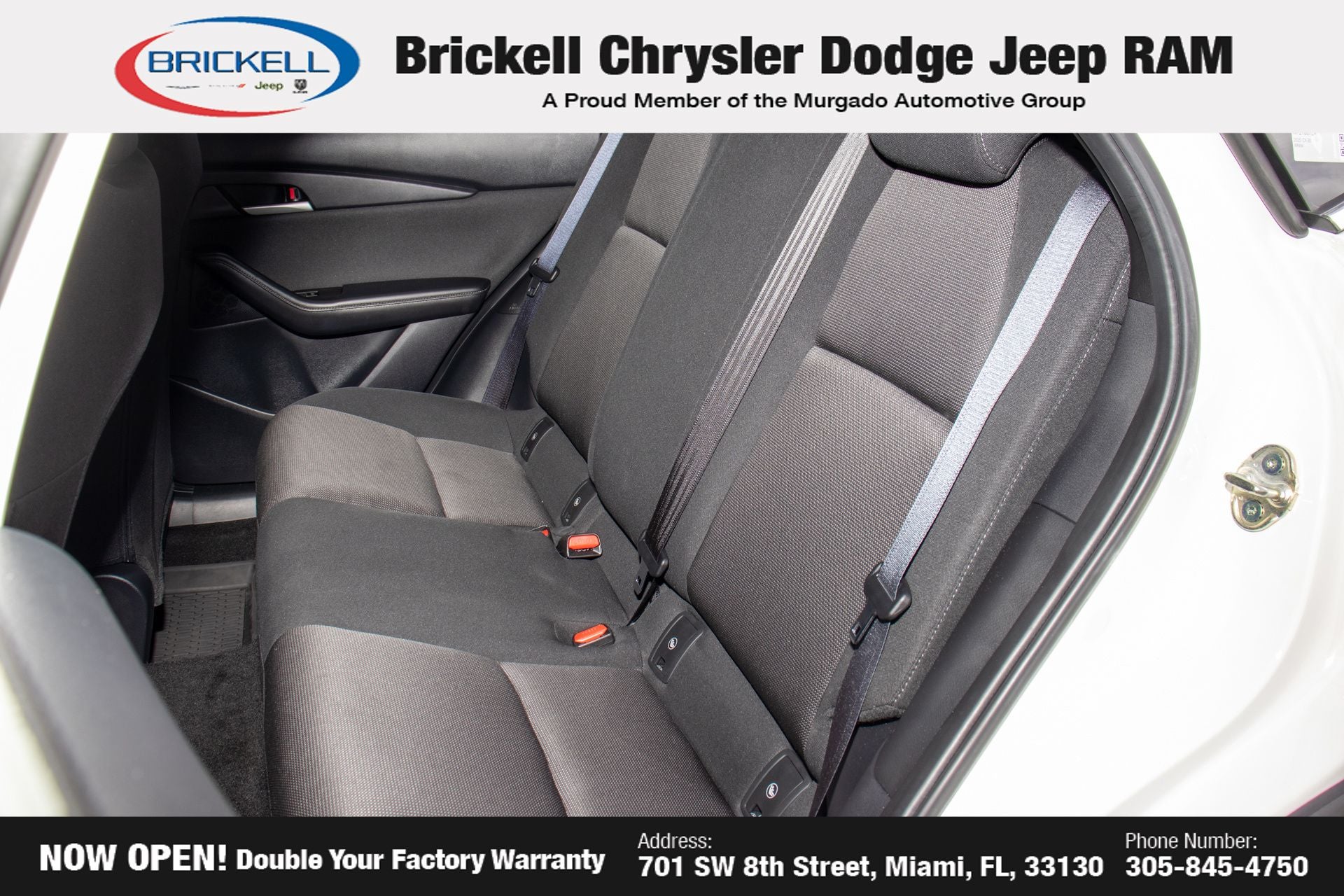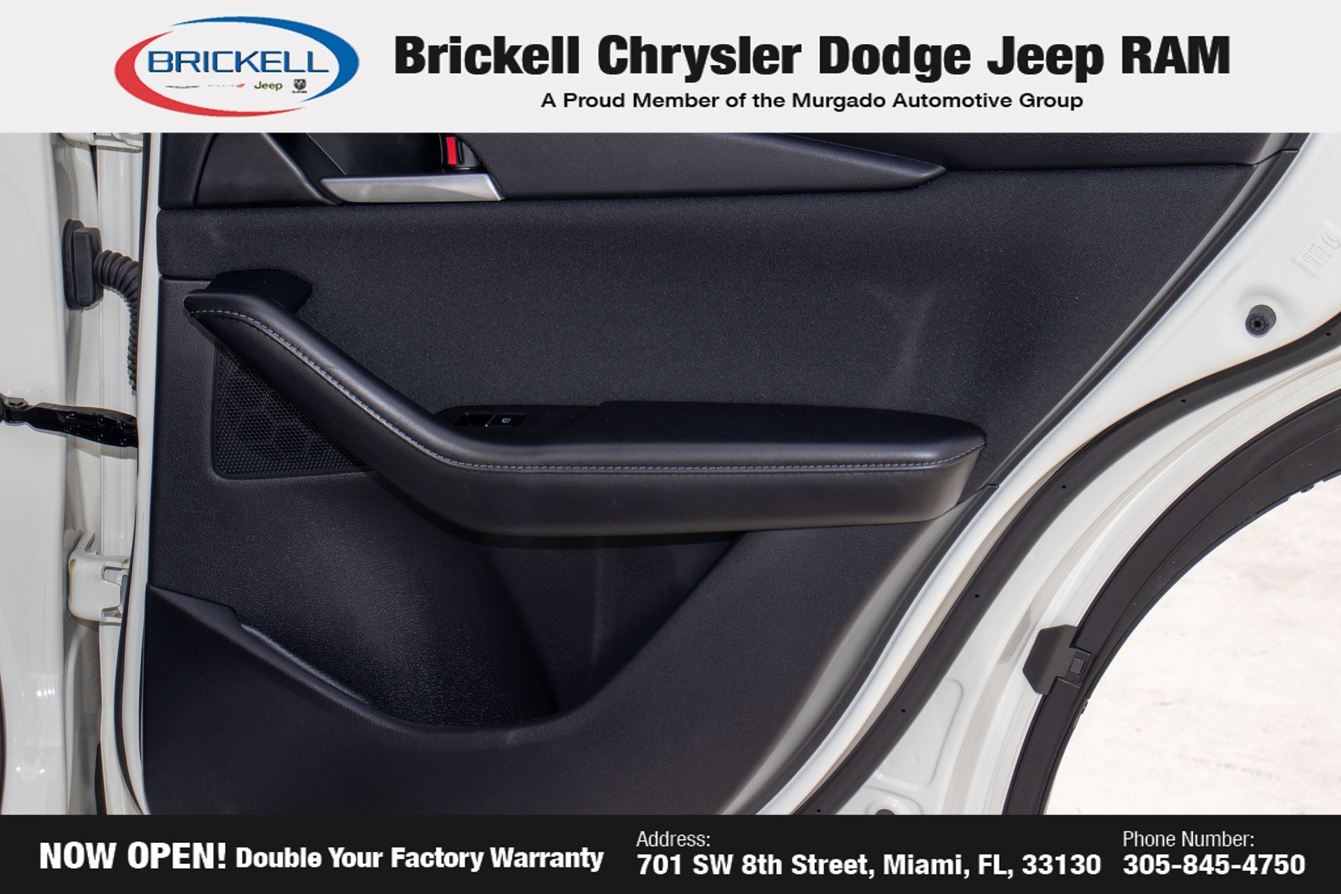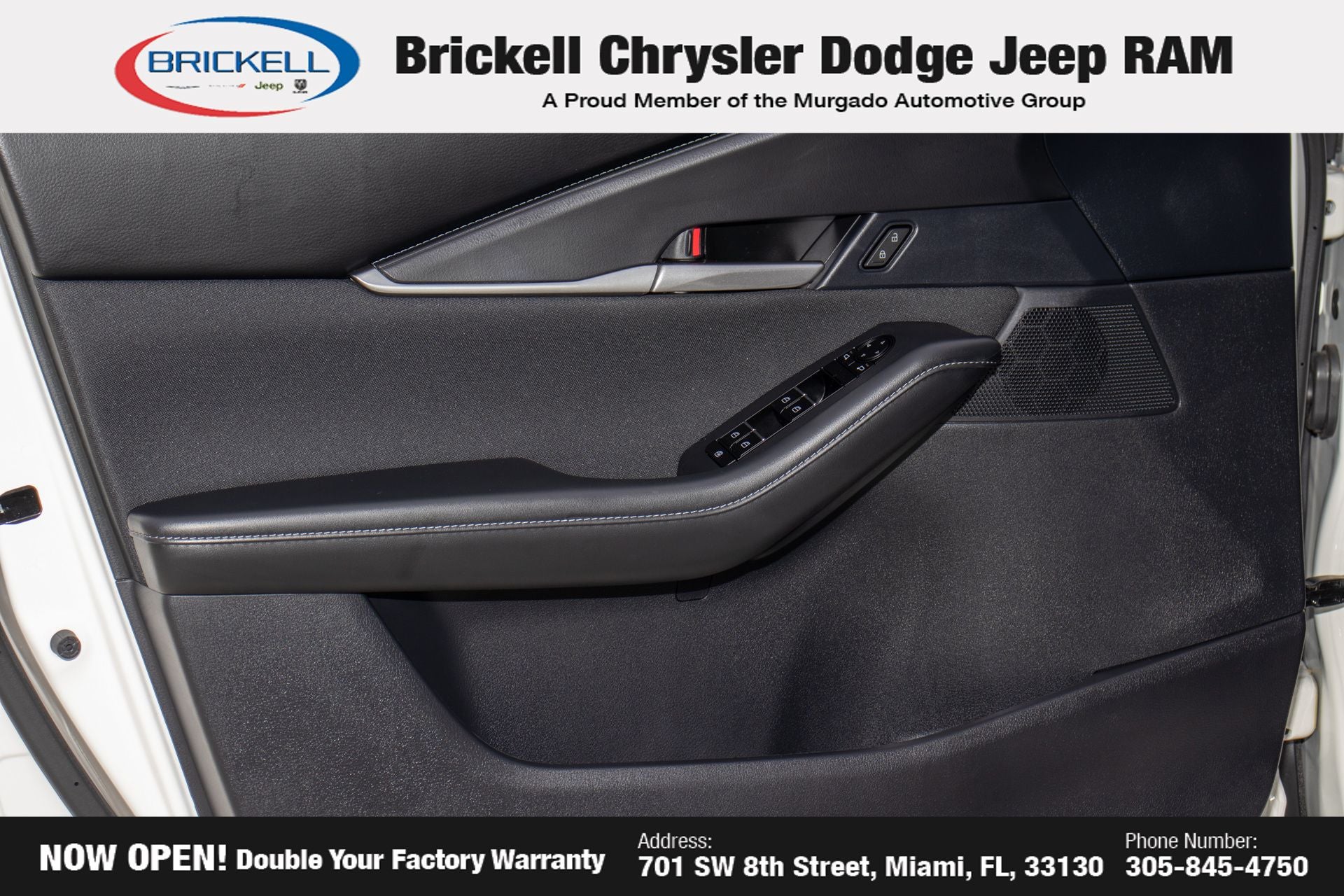 At Brickell CDJR, we make buying a pre-owned vehicle easy and stress-free. Every pre-owned vehicle is thoroughly inspected to ensure quality and reliability. For added confidence, we include a **10-year/100,000-mile powertrain warranty on all non-European brands** at no additional cost. Our dealership offers one of the largest selections of pre-owned inventory in the region, so you can find the right car, truck, or SUV for your needs. Our state-of-the-art service department, the largest in the country, is open seven days a week from 7 AM to 9 PM, ensuring your vehicle stays in top condition. Visit us at 701 SW 8th St, Miami, FL 33130, or call 305-777-2800 to learn more and schedule a test drive. The displayed price includes an incentive for financing with Brickell CDJR Finance Company. Price does not included our Perma-Plate .Outside financing and bank drafts are not accepted. All pre-owned vehicle exports are subject to an export fee. Taxes, title, registration, and dealer fees apply.