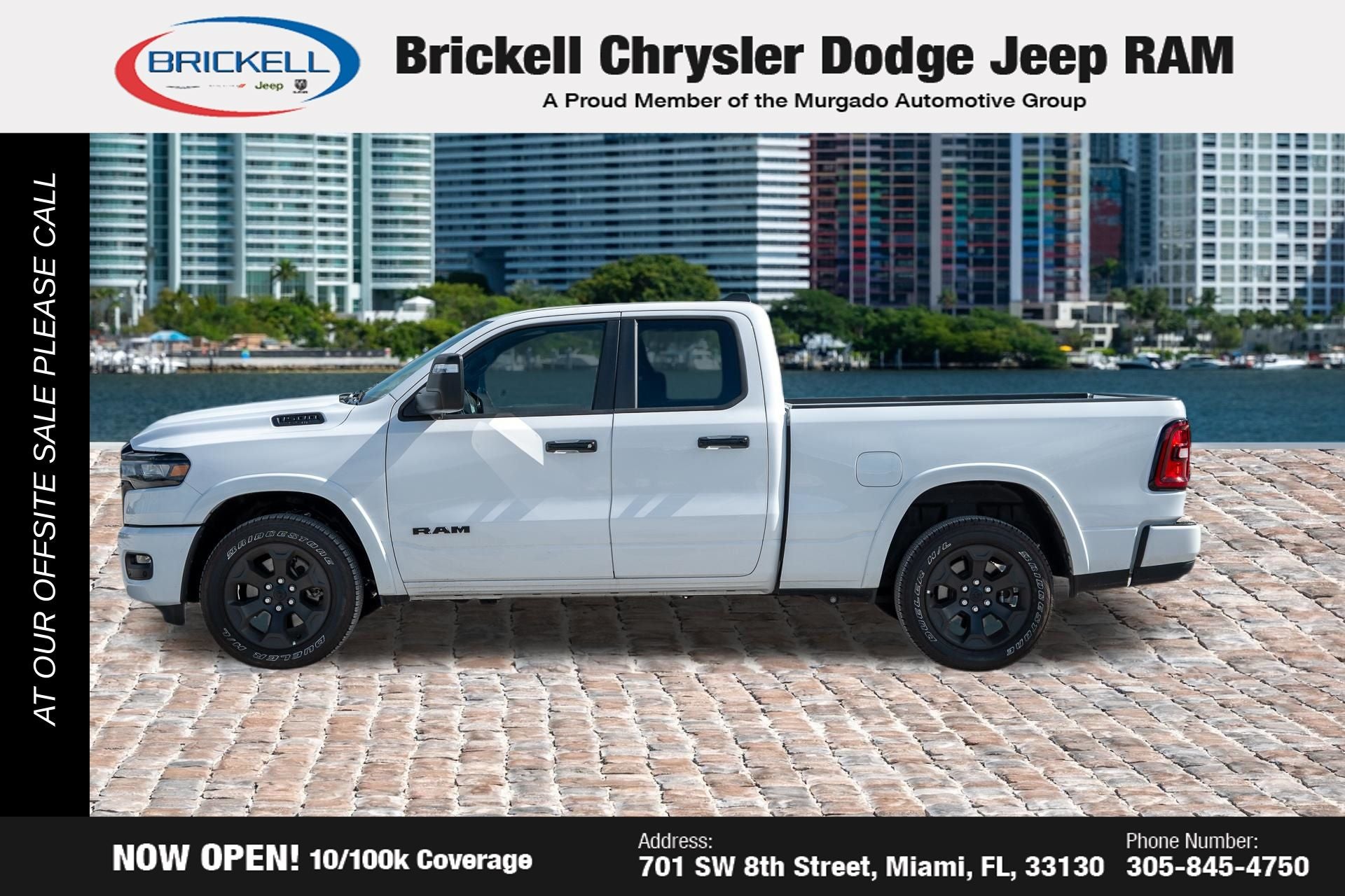 Bright White Clearcoat 2025 Ram 1500 Big Horn/Lone Star RWD 8-Speed Automatic 3.0L I6 1500 Big Horn/Lone Star, 4D Quad Cab, 3.0L I6, 8-Speed Automatic, RWD, Bright White Clearcoat, Black Cloth.
