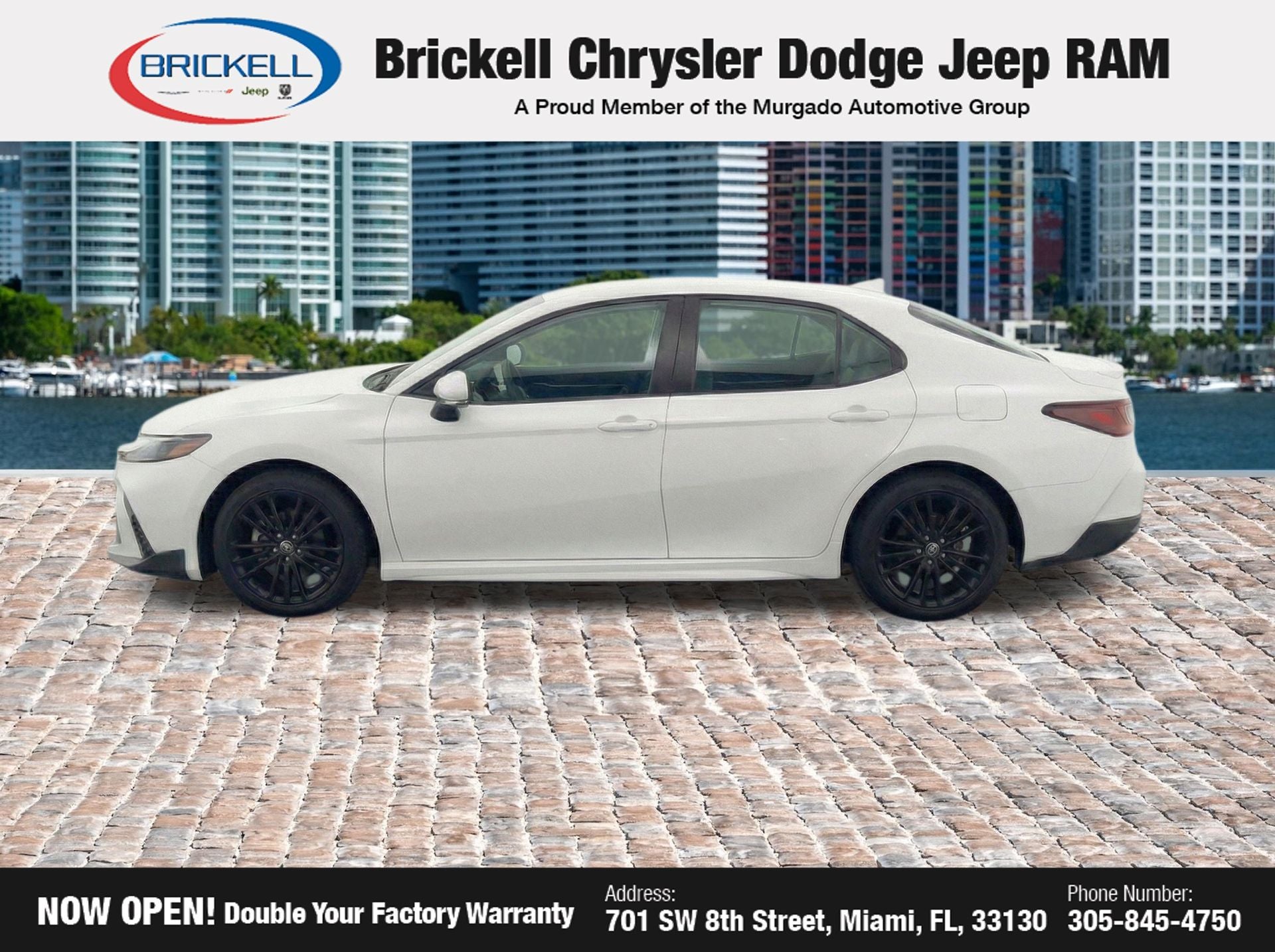 At Brickell CDJR, we make buying a pre-owned vehicle easy and stress-free. Every pre-owned vehicle is thoroughly inspected to ensure quality and reliability. For added confidence, we include a **10-year/100,000-mile powertrain warranty on all non-European brands** at no additional cost. Our dealership offers one of the largest selections of pre-owned inventory in the region, so you can find the right car, truck, or SUV for your needs. Our state-of-the-art service department, the largest in the country, is open seven days a week from 7 AM to 9 PM, ensuring your vehicle stays in top condition. Visit us at 701 SW 8th St, Miami, FL 33130, or call 305-777-2800 to learn more and schedule a test drive. The displayed price includes an incentive for financing with Brickell CDJR Finance Company. Price does not included our Perma-Plate .Outside financing and bank drafts are not accepted. All pre-owned vehicle exports are subject to an export fee. Taxes, title, registration, and dealer fees apply.